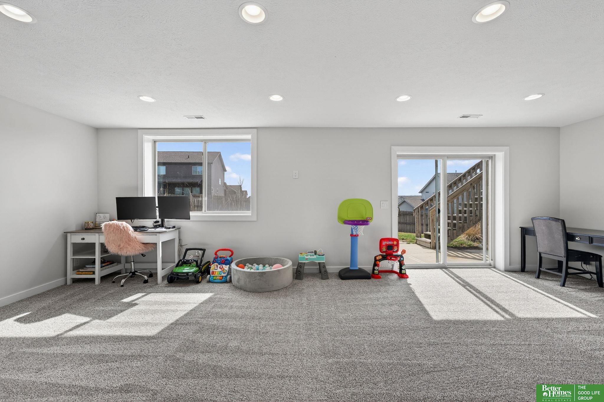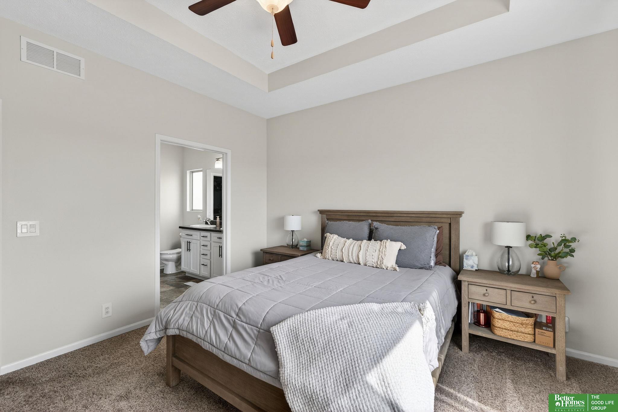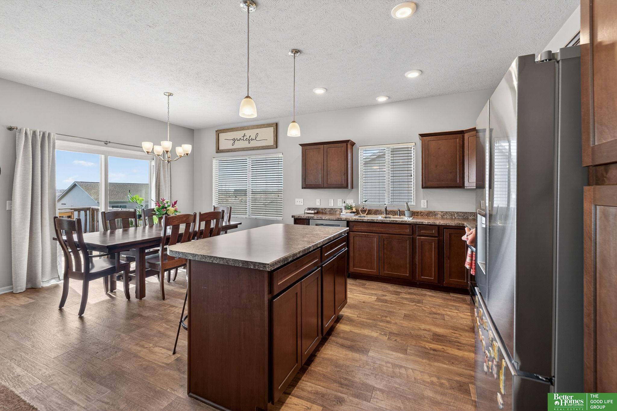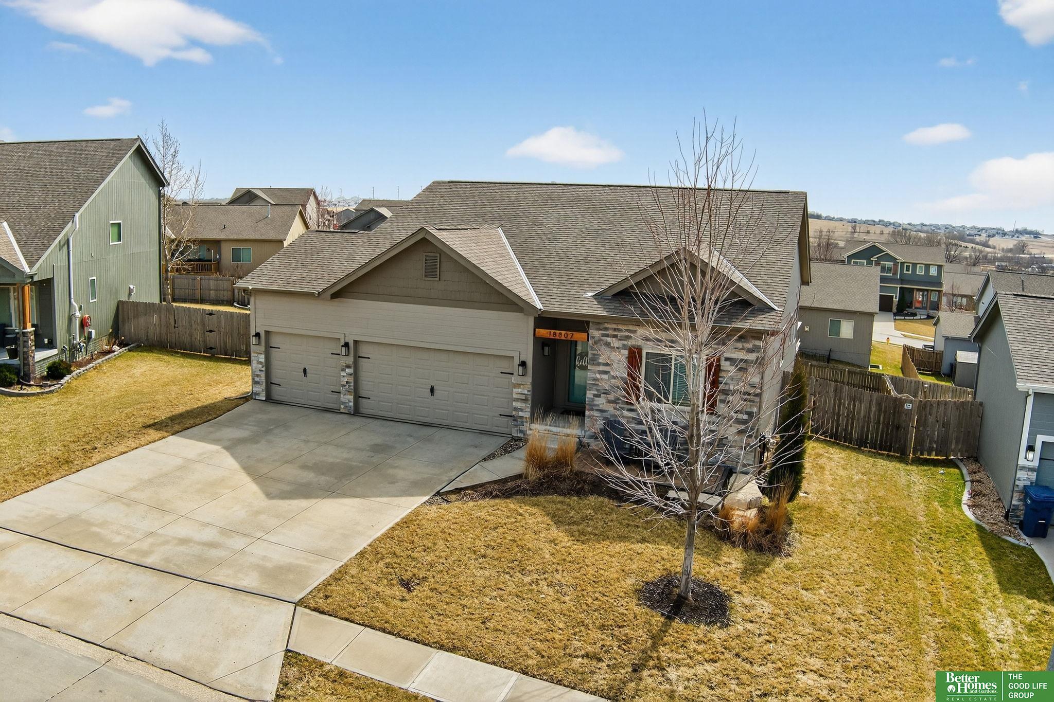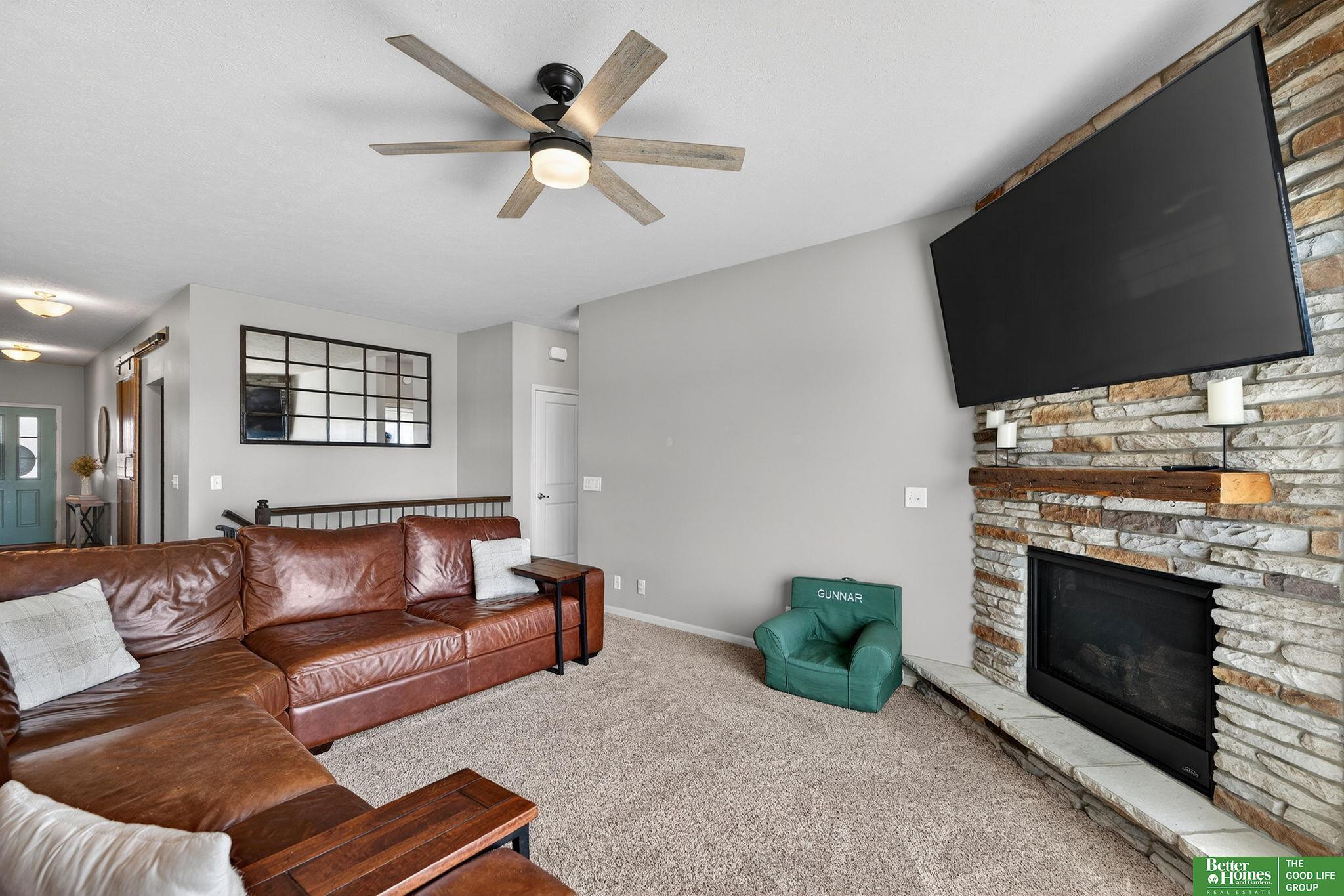 Step into modern farmhouse elegance right in the heart of the Gretna School District! This stunning ranch in Whitetail Creek is a dream come true, featuring an inviting open-concept great room with a breathtaking floor-to-ceiling stone fireplace and rustic barn-door accent. The spacious kitchen shines with stylish LVP flooring, while the primary suite boasts a tray ceiling, a roomy walk-in closet, and double vanity ensuite. Outside, revel in a sprawling, landscaped yard and firepit, fully enclosed by a privacy fence—perfect for gatherings or quiet evenings. Need more room? The walkout lower level offers a fourth bedroom, bathroom, and cozy living space. Enjoy a prime location near scenic trails, parks, and easy access to I-80! Don't miss your chance to make this charming retreat your own! AMA