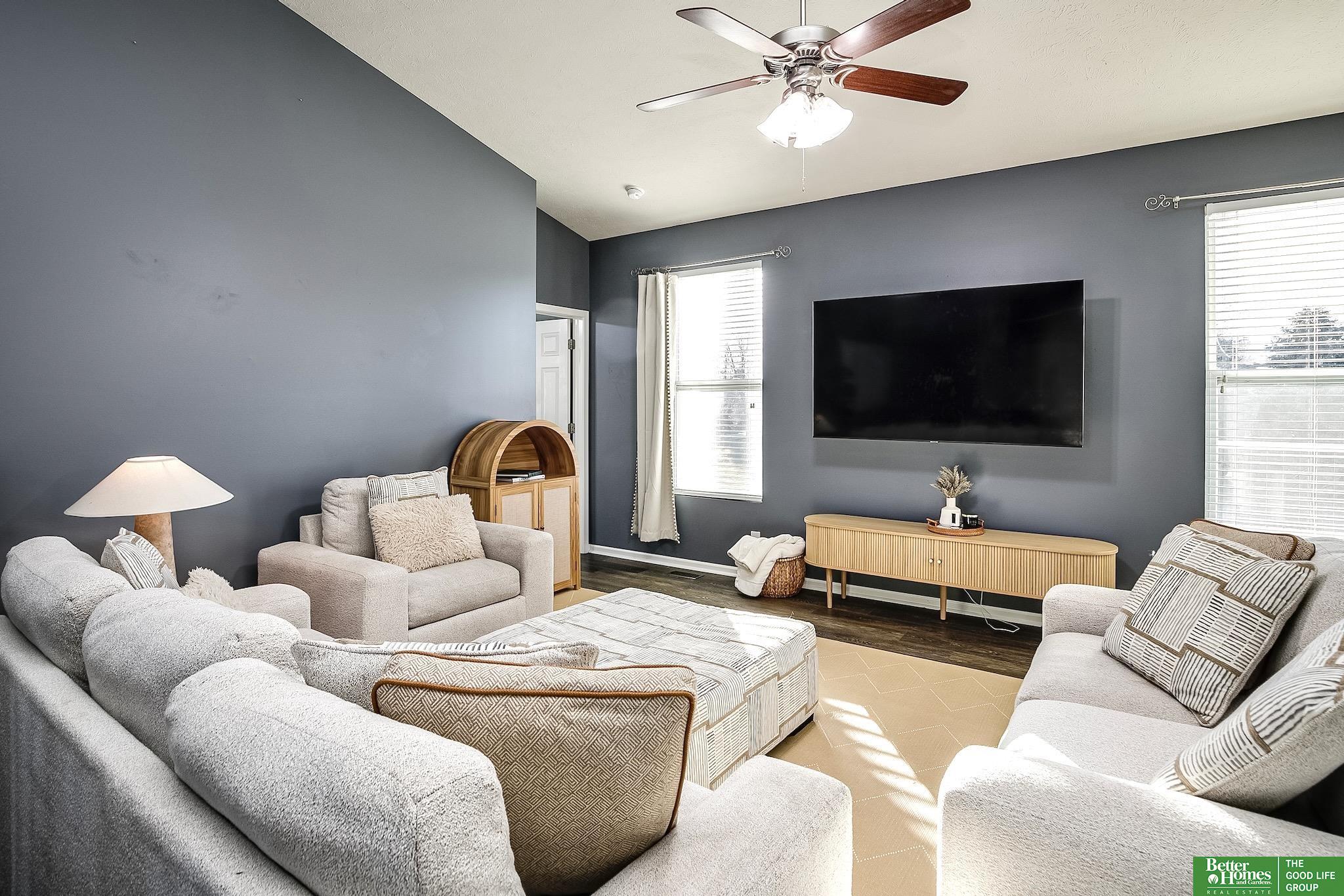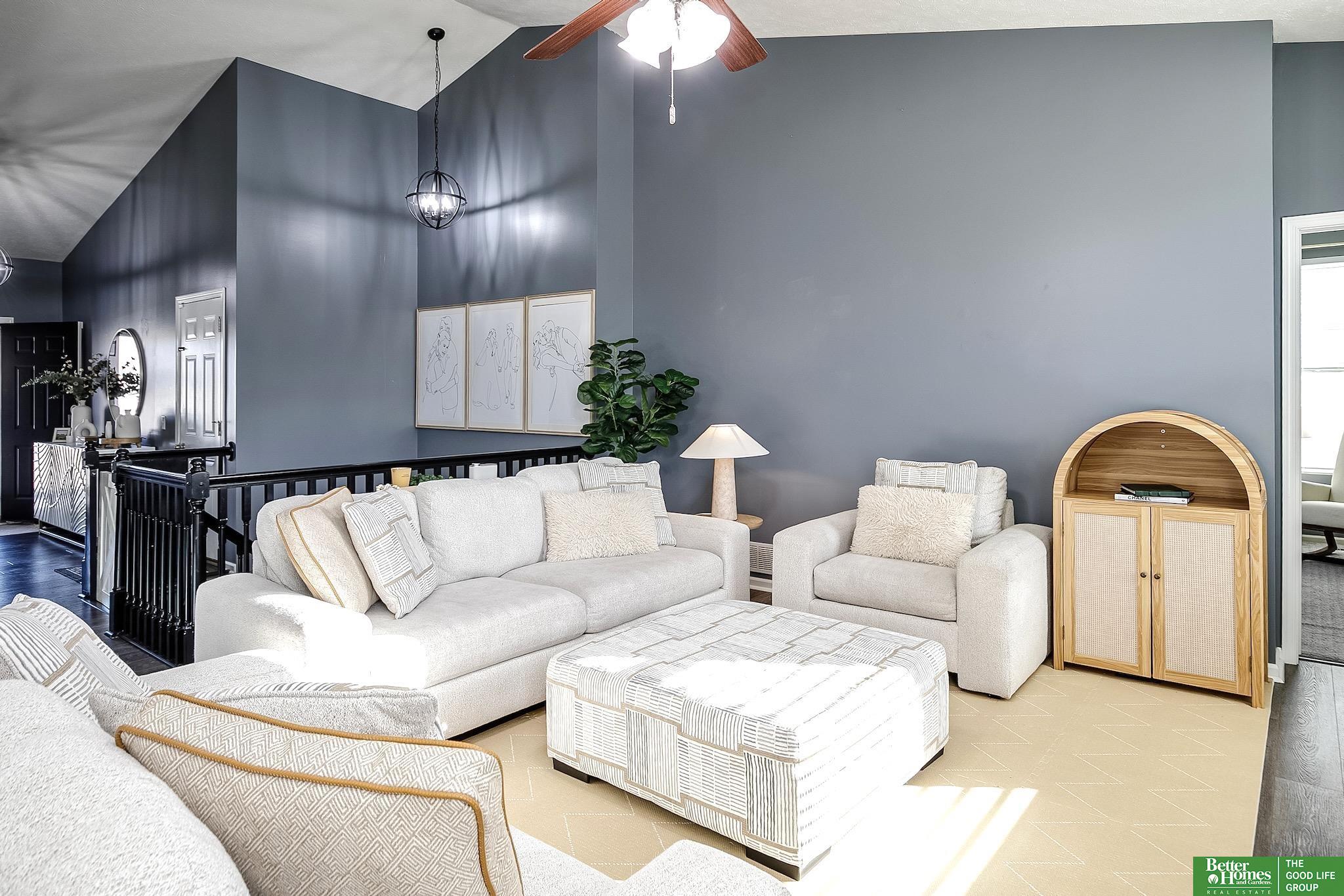 Set in the Oakmont neighborhood in Millard Schools, this 3-bed, 3-bath ranch offers a thoughtful split-bedroom layout & open floor plan ideal for today's living. A spacious entry with vaulted ceilings flows into the bright living room, creating an inviting first impression. The kitchen, both functional & stylish, features large island, ample cabinetry, quartz counters, gas range, & black SS appliances, opening to the dining area with exterior access to composite deck. The primary suite includes dual sinks, tiled floors & shower, & walk-in closet. Two additional bedrooms share a full bath with tile flooring & the main-floor laundry conveniently nearby. The finished lower level offers a large family room with daylight windows, spacious non-conforming 4th bedroom with walk-in closet, 3/4 bath, & an oversized storage room. An attached 2-car garage, fully fenced yard, and abundant natural light throughout add to the appeal. Enjoy close proximity to a neighborhood park and White Hawk Lake.
