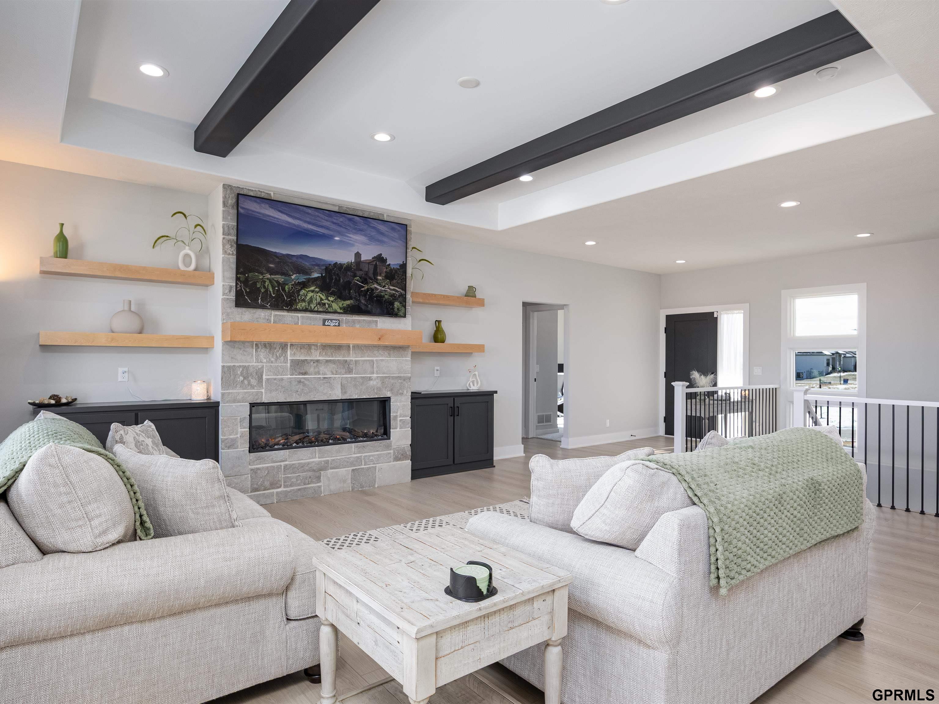 Contract Pending w/ buyer home sale contingency needing removed. Accepting backup offers. This level of finish, space and tax advantages rarely available. Stunning walkout ranch in Gretna’s highly sought-after Aspen Creek community. Pre-inspected & offering the feel of brand-new without extra costs. Fence already done, window treatments installed, wide plank flooring throughout the main level, and a large fully fenced backyard! Walkable to elementary & junior high. Assigned to Gretna East. Gorgeous kitchen with a hidden walk-in pantry, custom built-in cabinetry and floating shelves framing the fireplace, and striking wood ceiling beam details that elevate the entire space. The primary suite is spacious and with a massive walk-in closet. Covered composite deck, 2 bedrooms in basement & a game room.