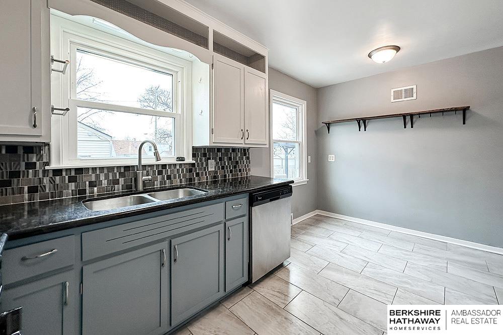 Charming & Well-Maintained 1.5 Story Home in the Highly Desirable Aksarben Area! This home offers a perfect blend of timeless character w/ modern updates featuring original hardwood floors in the living, dining & bedrooms w/ modern updates in the kitchen & bathrooms. The kitchen boasts tile flooring, stainless steel appliances (gas range), granite counter tops, tile backsplash & white (upper) & blue (lower) cabinets. The main floor bath includes tile flooring & tiled shower/tub surround. The spacious primary bedroom on the 2nd level offers a private updated 3/4 bath & 2 closets. Finished lower level provides additional living space w/ family room, 1/2 bath, generous laundry & storage areas. Enjoy the convenience of an oversized detached 2 car garage w/ loft storage. Updates include roof (2023), HVAC (2023), driveway (2023), solar panels (2021), electrical panel (2021) & newer windows throughout home (since 2019). Quick access to the Med Center, Aksarben Village, UNO & Elmwood Park. AMA