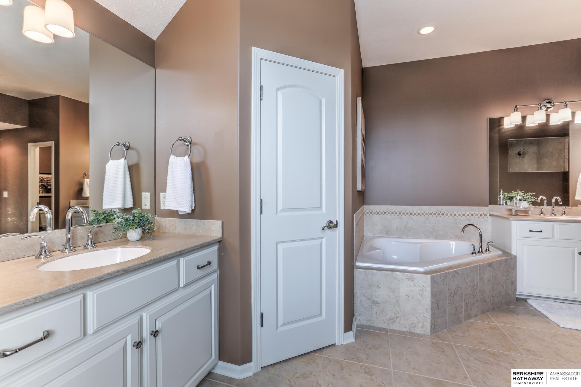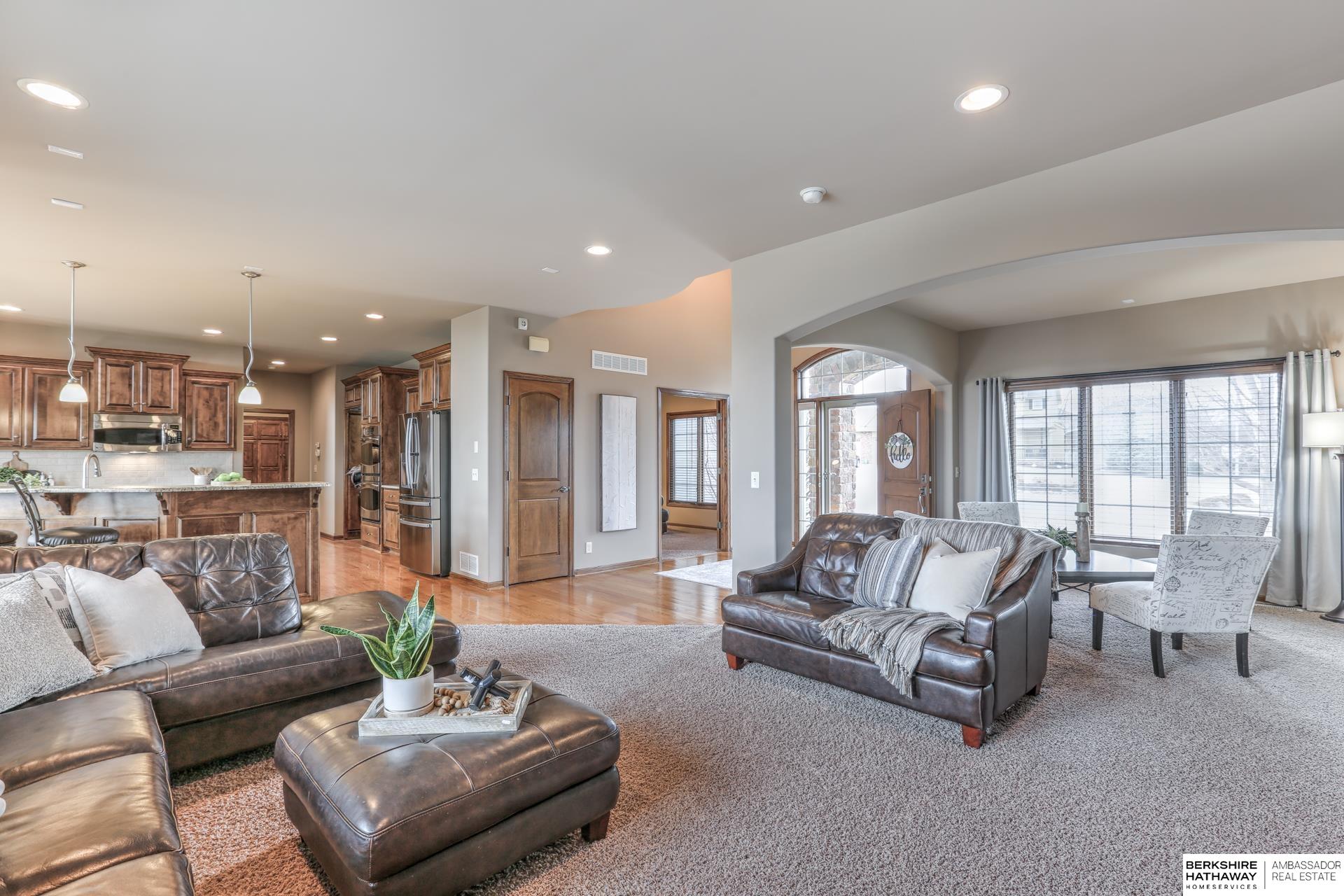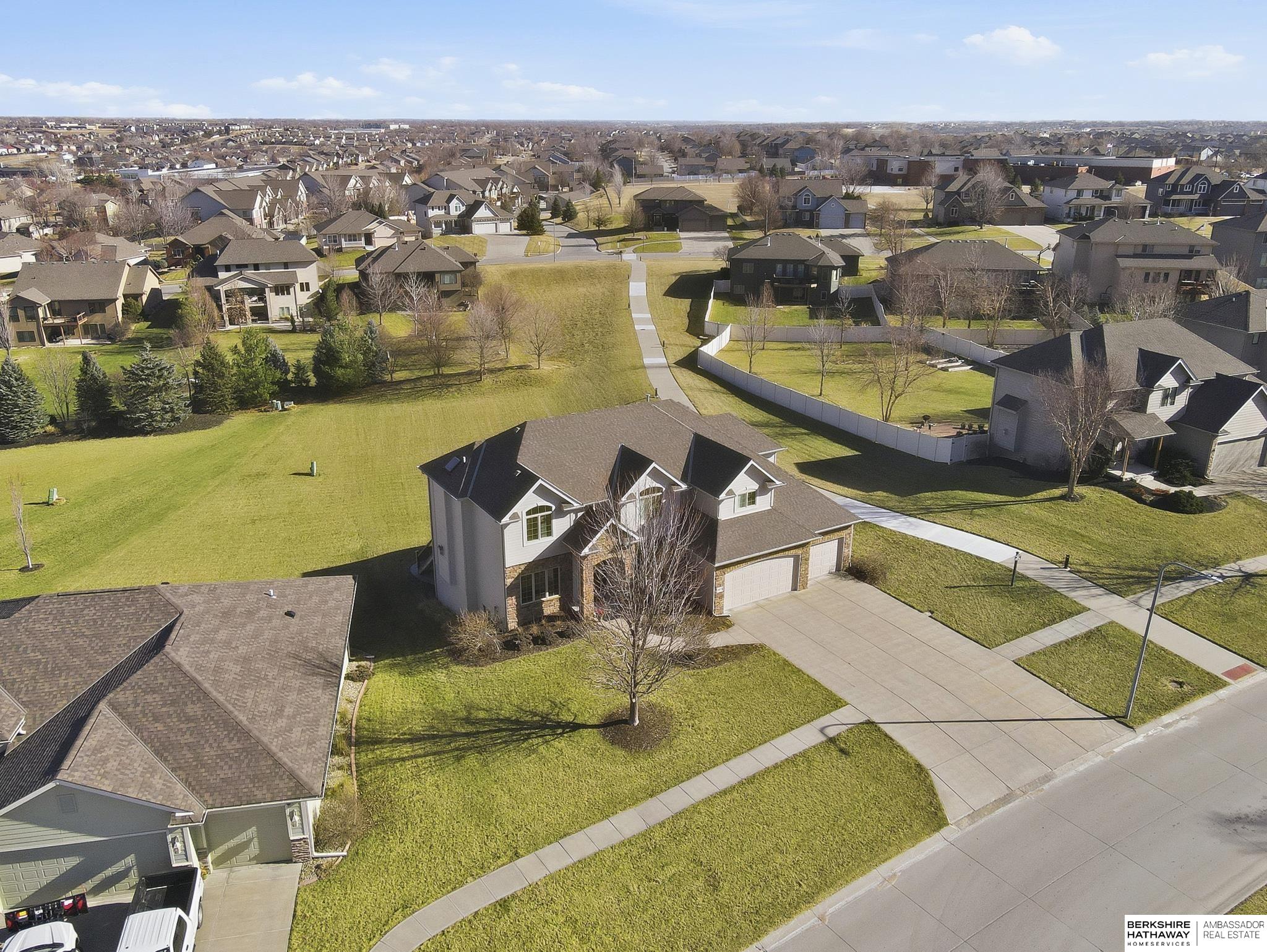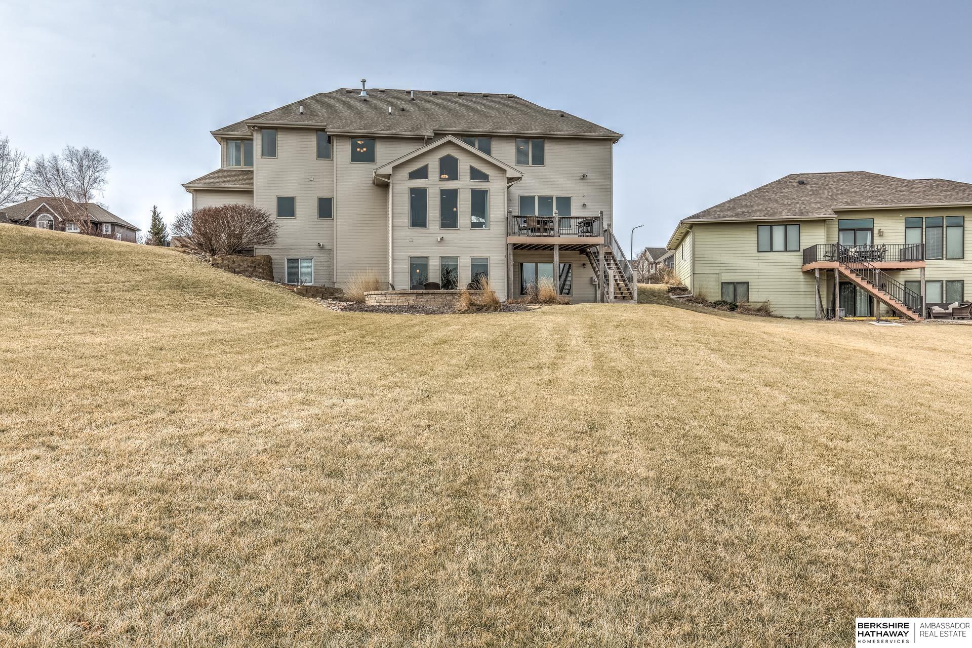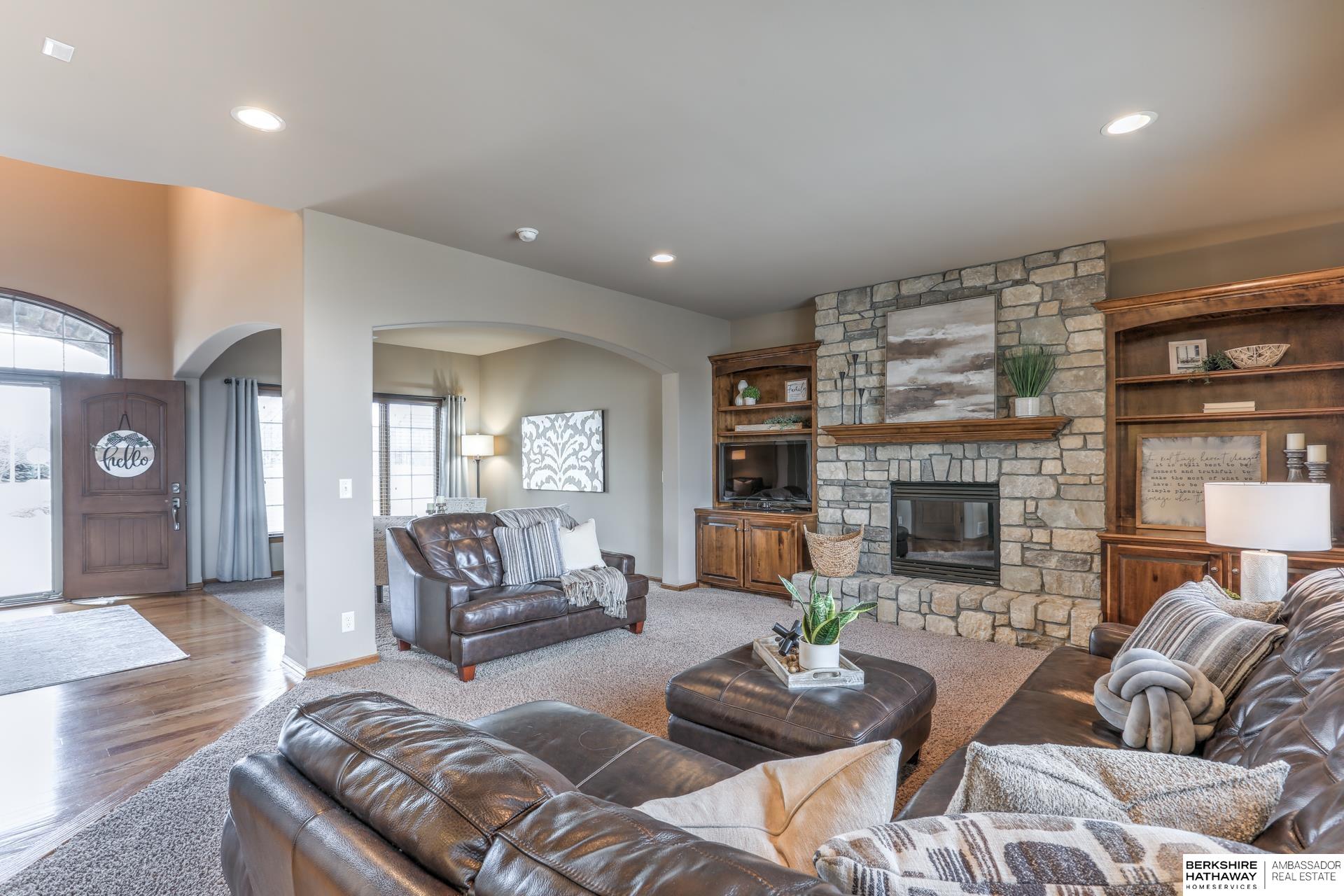 Pending. Millard/Gretna Schools! A must see extremely well maintained one-owner 5/5/4 custom Bellbrook Beauty on .45 ac high & sightly prof. landscaped walkout lot. Stunning 2 sty. entry & expansive main floor incl. office, formal dr, beautiful floor to ceiling fireplace, solid core doors, lockers, drop zone & more. Spacious kit. w/ gorgeous hardwoods, ceramic, stainless, 2x ovens, cooktop, walk-in pantry & island seating for 6. Hidden staircase to 2nd floor boasting painted woodwork & cabs. All brs. w/walk-in closets & direct bth access. Primary suite to die for-sitting room, huge closet, separated sinks, vanity, 2x head walk-in shower, whirlpool & storage galore. Light & bright lower level finished by builder-family room, exercise area, 5th bed, 3/4 bath & stunning wet bar. East facing back ensures shady summer cookouts & amazing views of Omaha fireworks. Flat West facing driveway will always melt in winter. Bellbrook has 2 pools, 3 parks, gym & numerous trails!