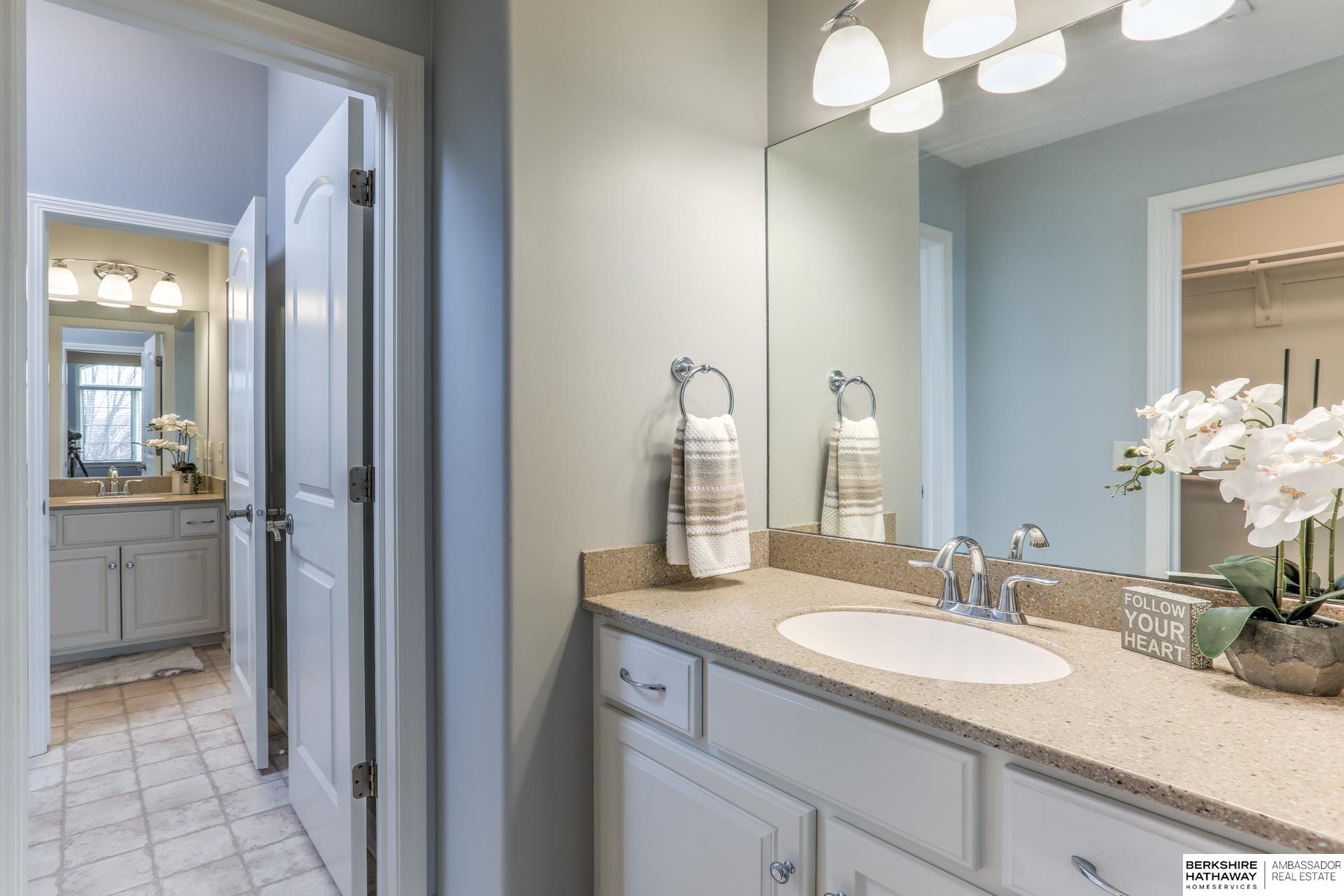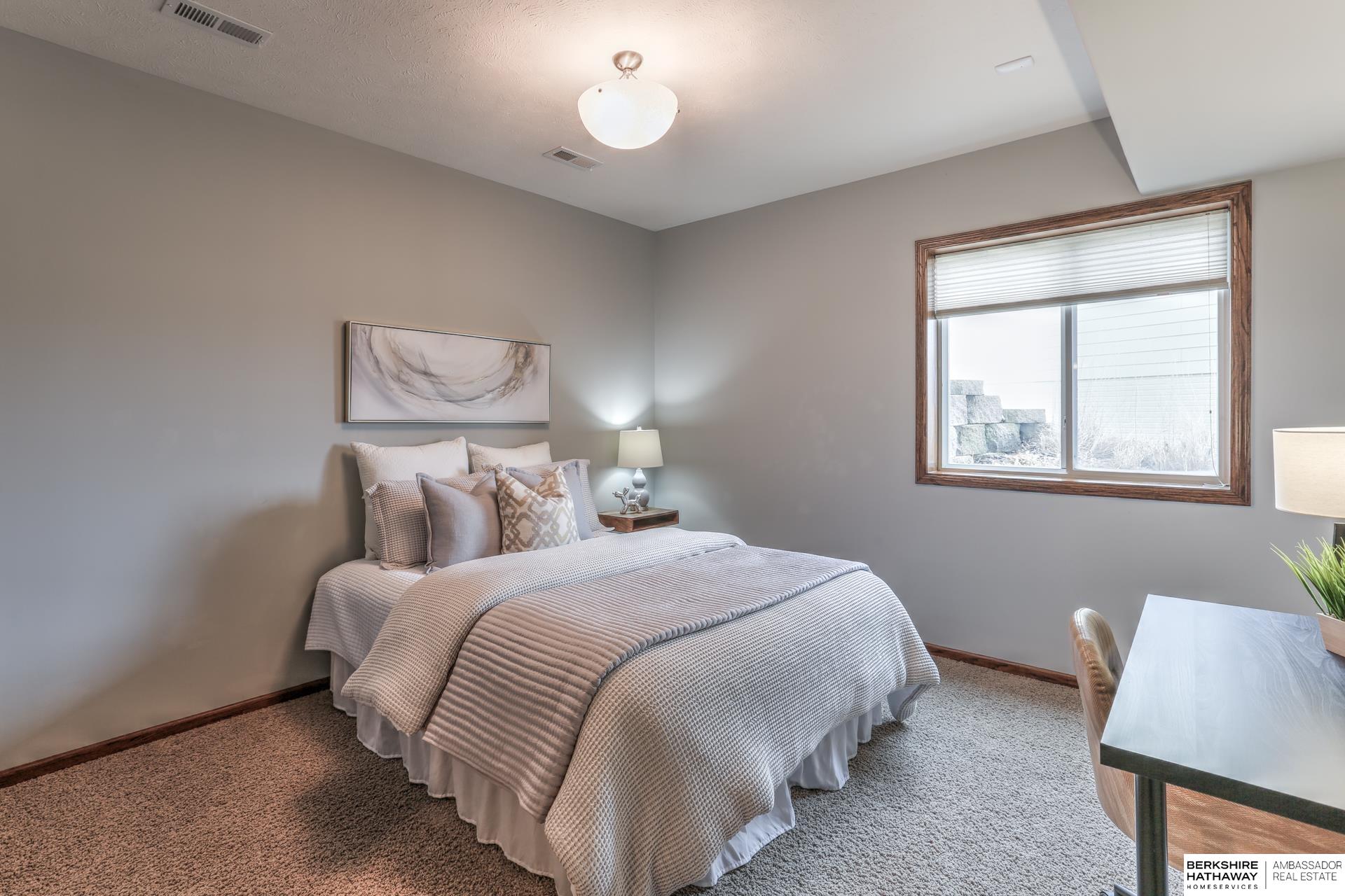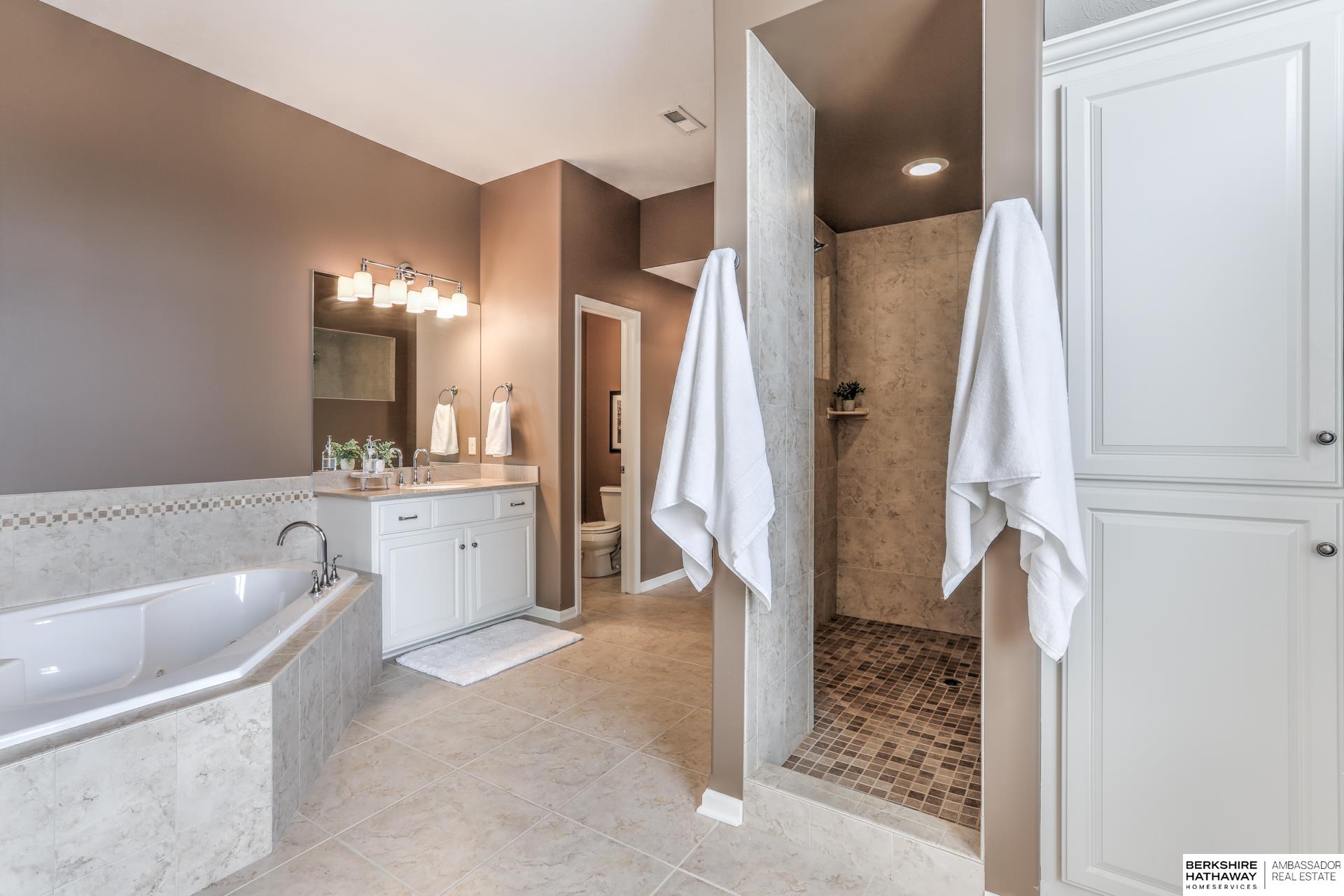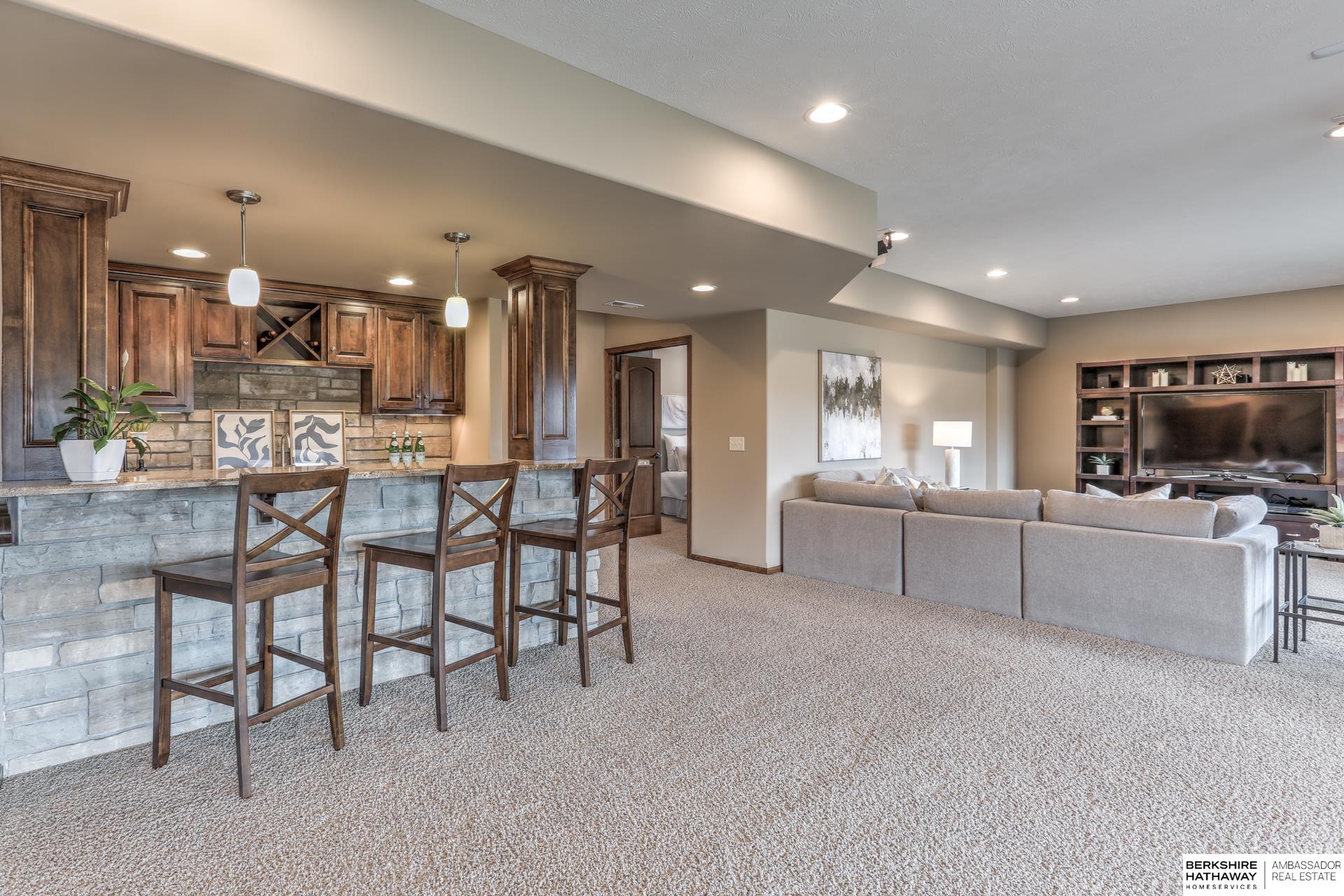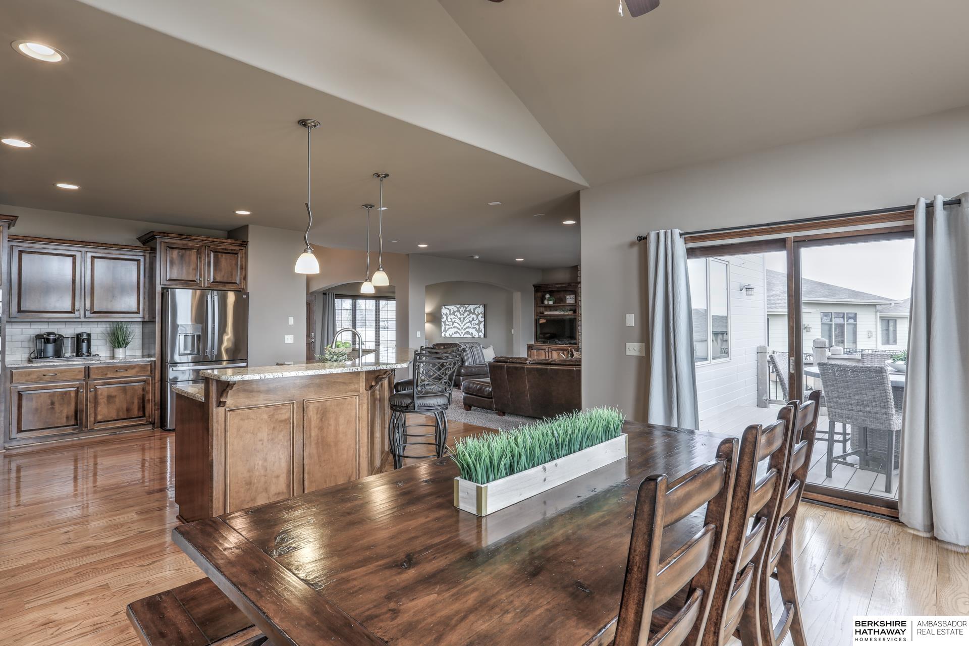 Pending. Millard/Gretna Schools! A must see extremely well maintained one-owner 5/5/4 custom Bellbrook Beauty on .45 ac high & sightly prof. landscaped walkout lot. Stunning 2 sty. entry & expansive main floor incl. office, formal dr, beautiful floor to ceiling fireplace, solid core doors, lockers, drop zone & more. Spacious kit. w/ gorgeous hardwoods, ceramic, stainless, 2x ovens, cooktop, walk-in pantry & island seating for 6. Hidden staircase to 2nd floor boasting painted woodwork & cabs. All brs. w/walk-in closets & direct bth access. Primary suite to die for-sitting room, huge closet, separated sinks, vanity, 2x head walk-in shower, whirlpool & storage galore. Light & bright lower level finished by builder-family room, exercise area, 5th bed, 3/4 bath & stunning wet bar. East facing back ensures shady summer cookouts & amazing views of Omaha fireworks. Flat West facing driveway will always melt in winter. Bellbrook has 2 pools, 3 parks, gym & numerous trails!