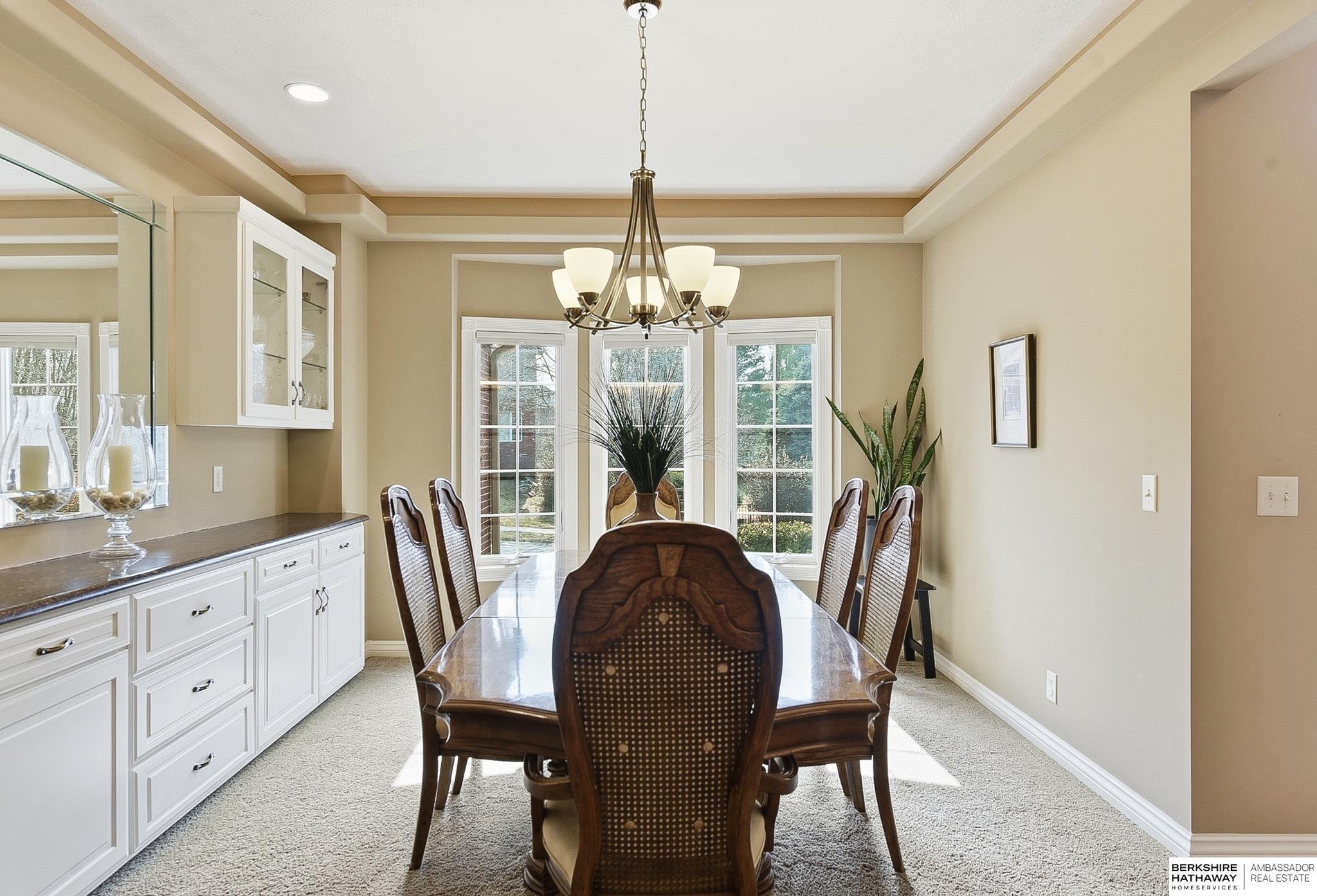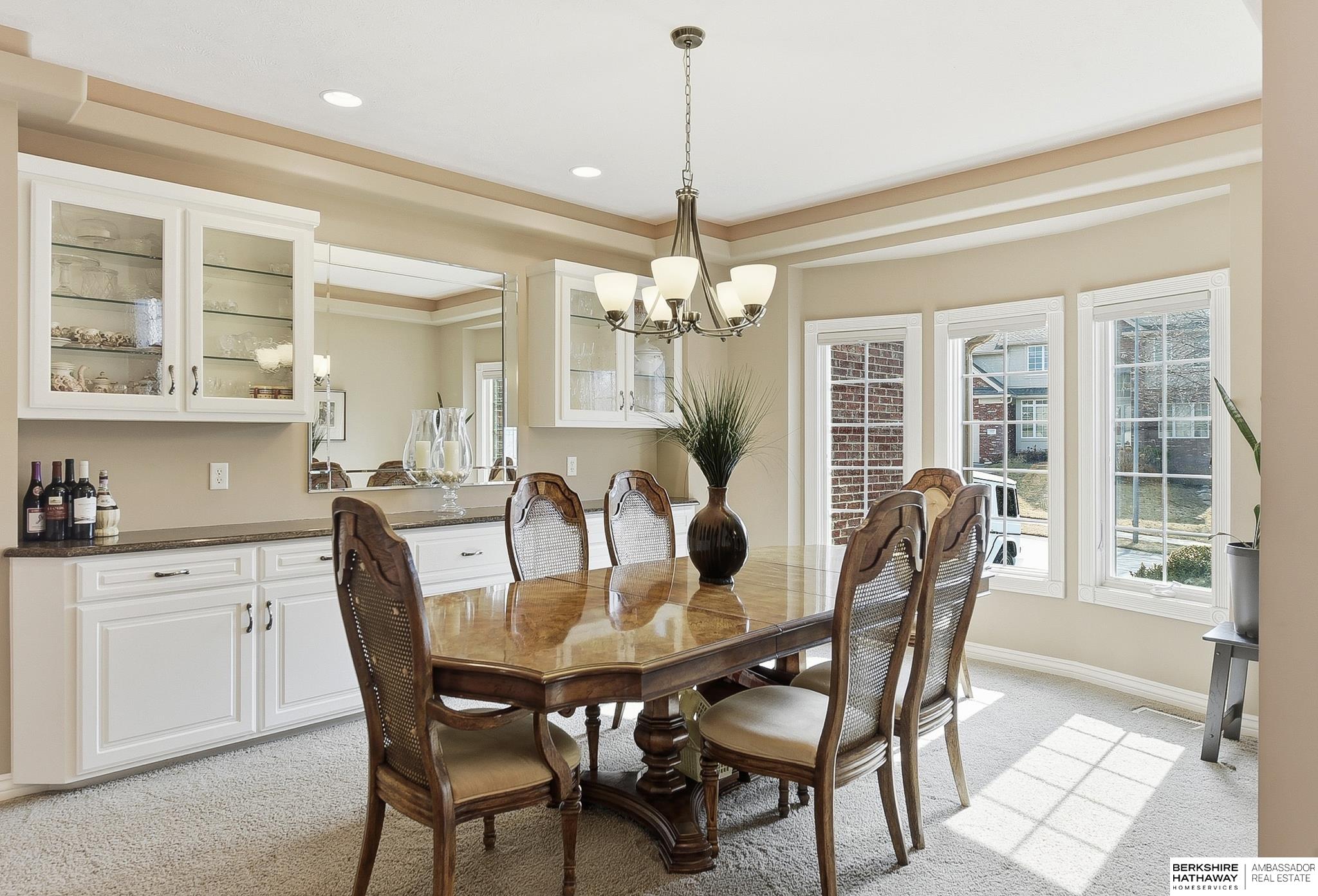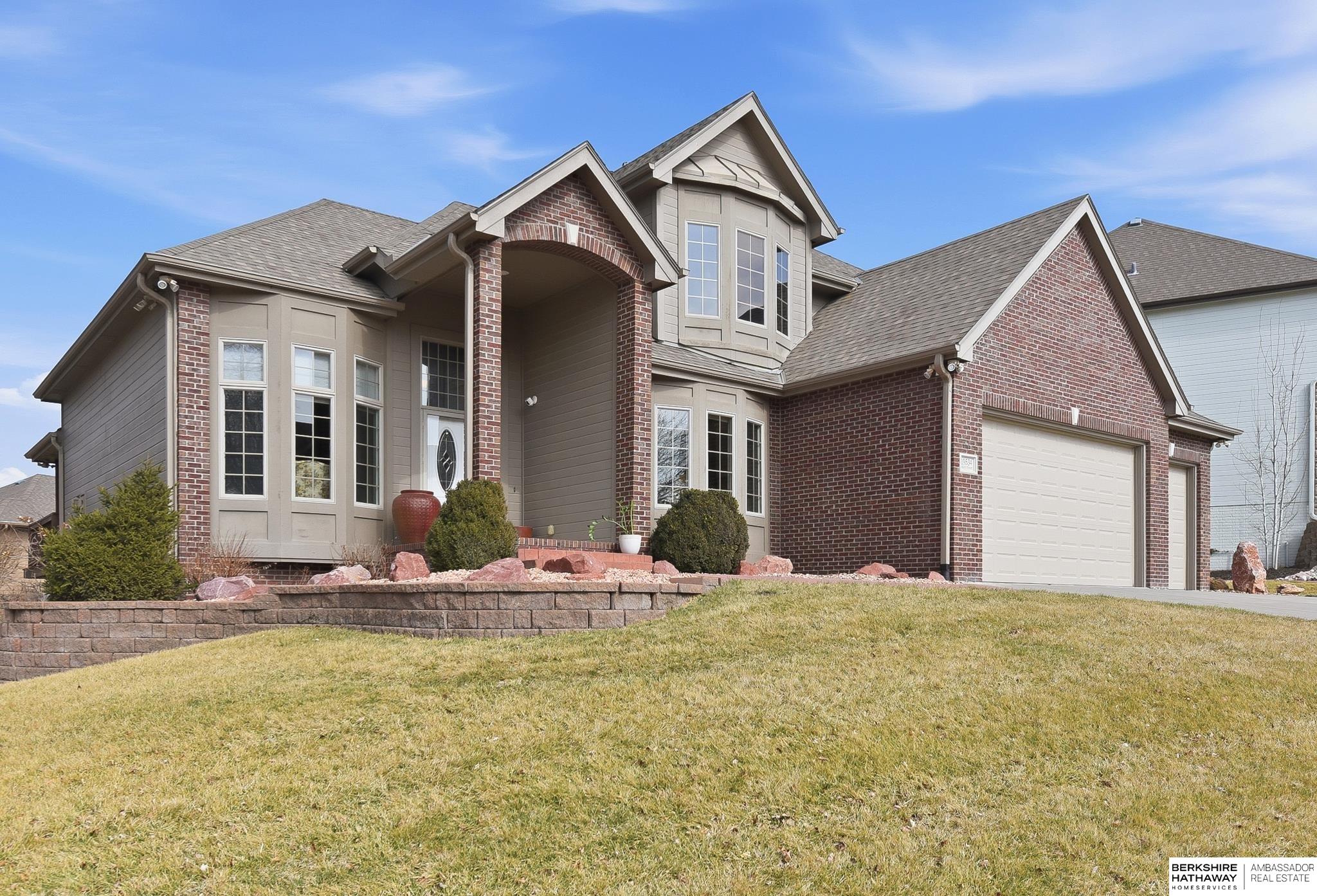 Stately 1.5-story home in sought-after Fire Ridge Estates, features neighborhood, pool, tennis, club house and gym, all within walking distance! Conveniently located near the Dodge corridor. This spacious 5-bedroom, 6-bath, 3-car garage home sits on a prime corner lot and offers a grand entry and an expansive main-floor primary suite. The 2 story great-room travels into the kitchen and covered outdoor deck. Upstairs features 3 bedrooms, all with en-suite bathrooms. The finished lower level hosts an additional living room, wet-bar, game/poker area, bedroom, and bathroom, plus abundant storage and potential to add even more finished square footage. A rare opportunity in an unbeatable neighborhood & location!