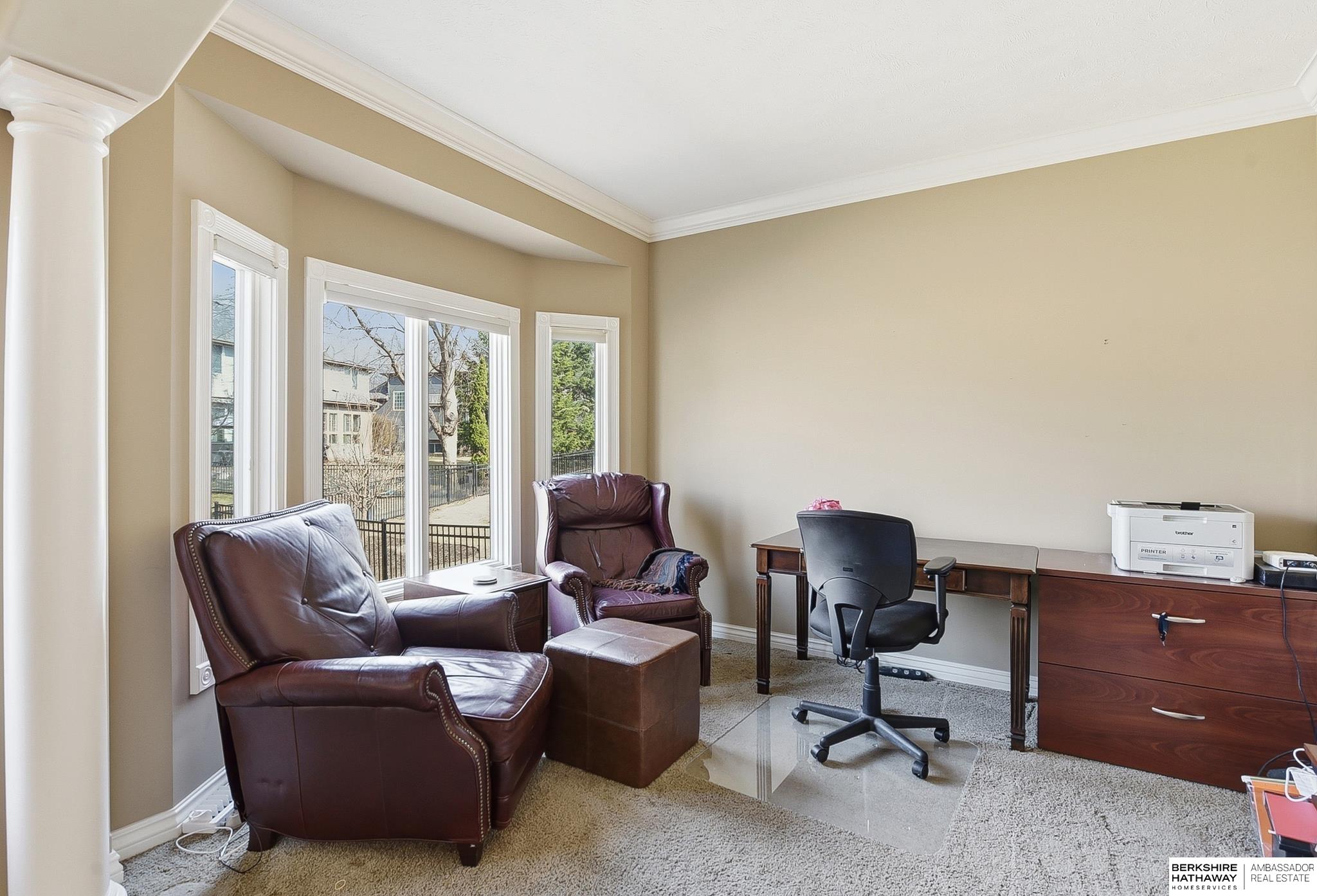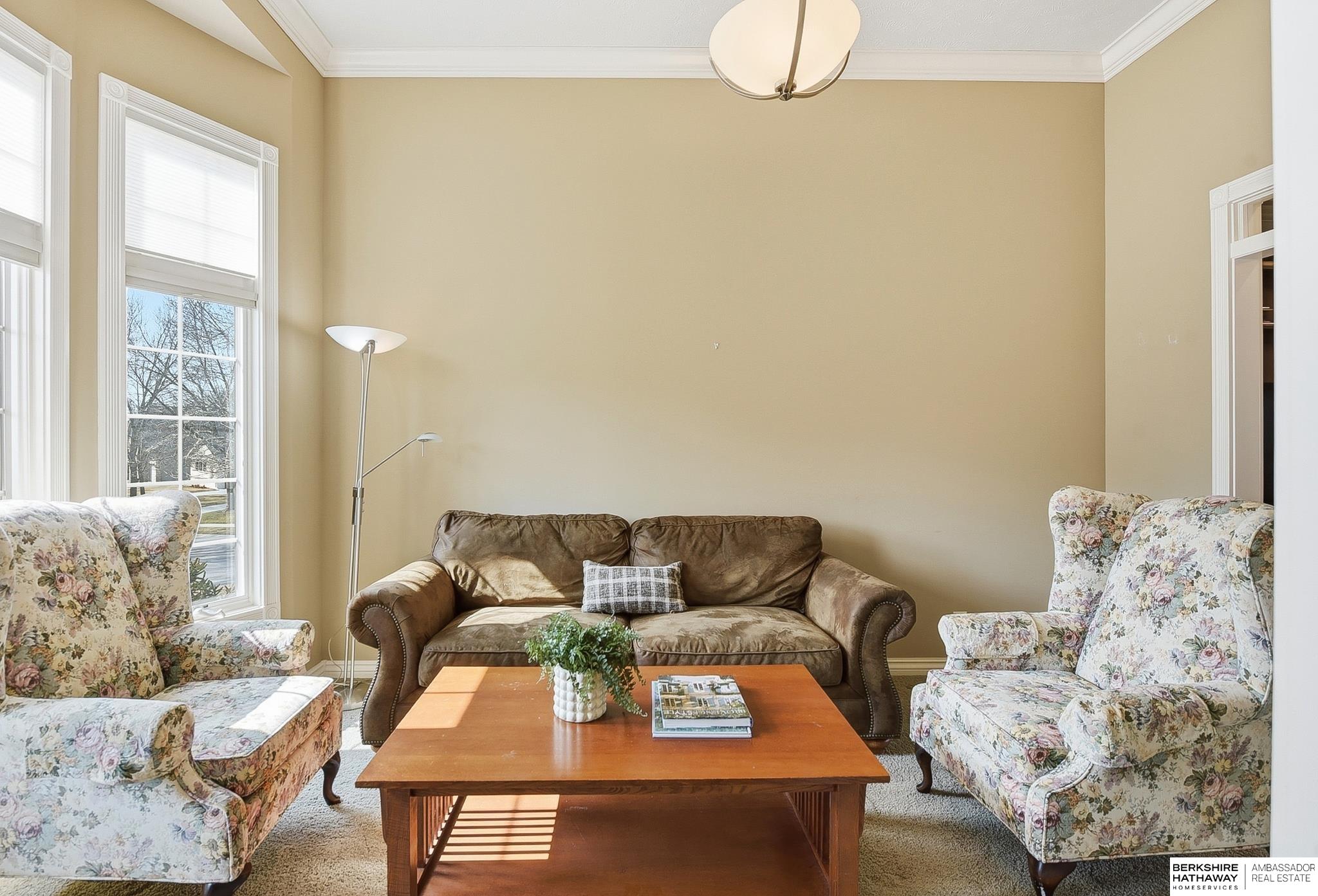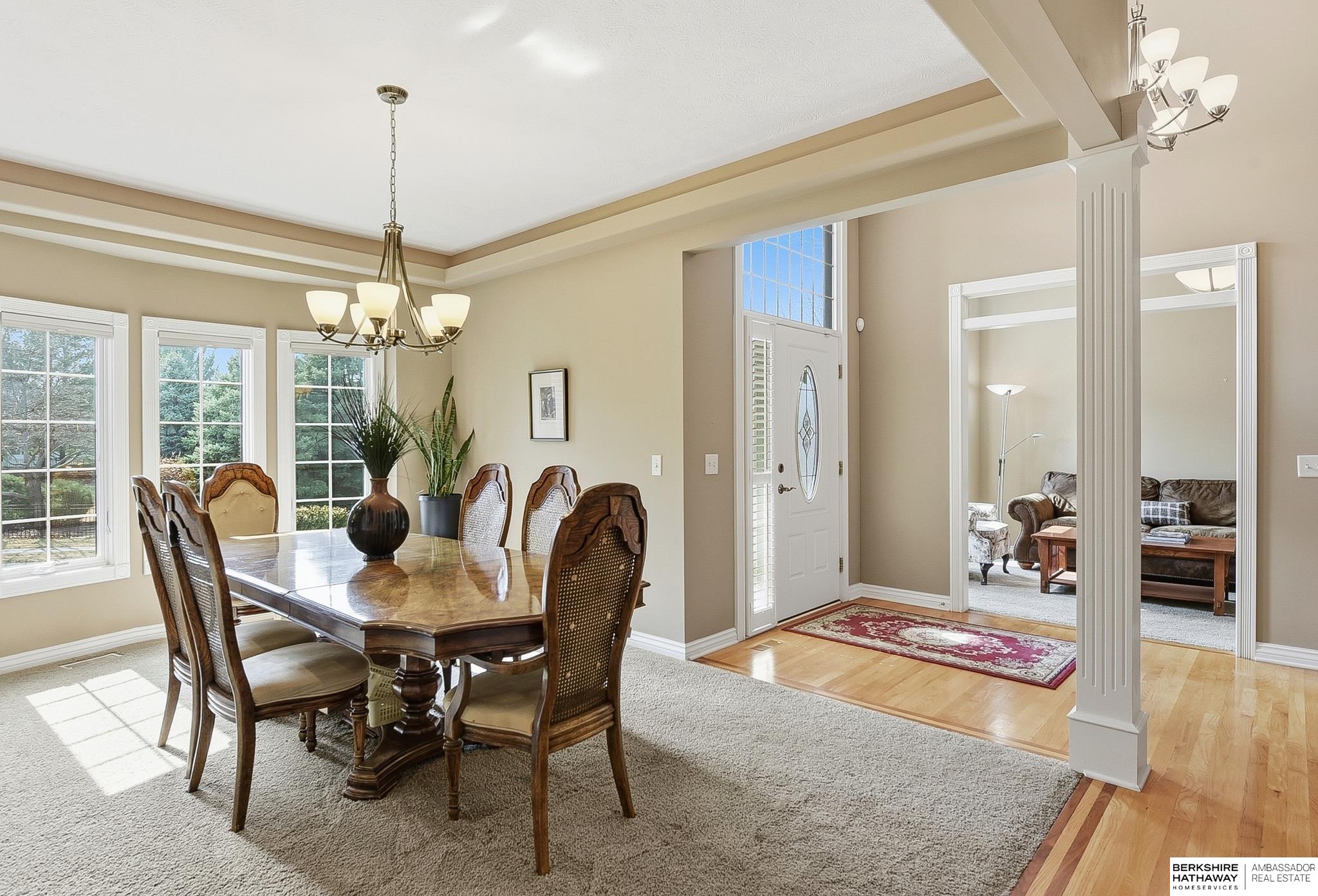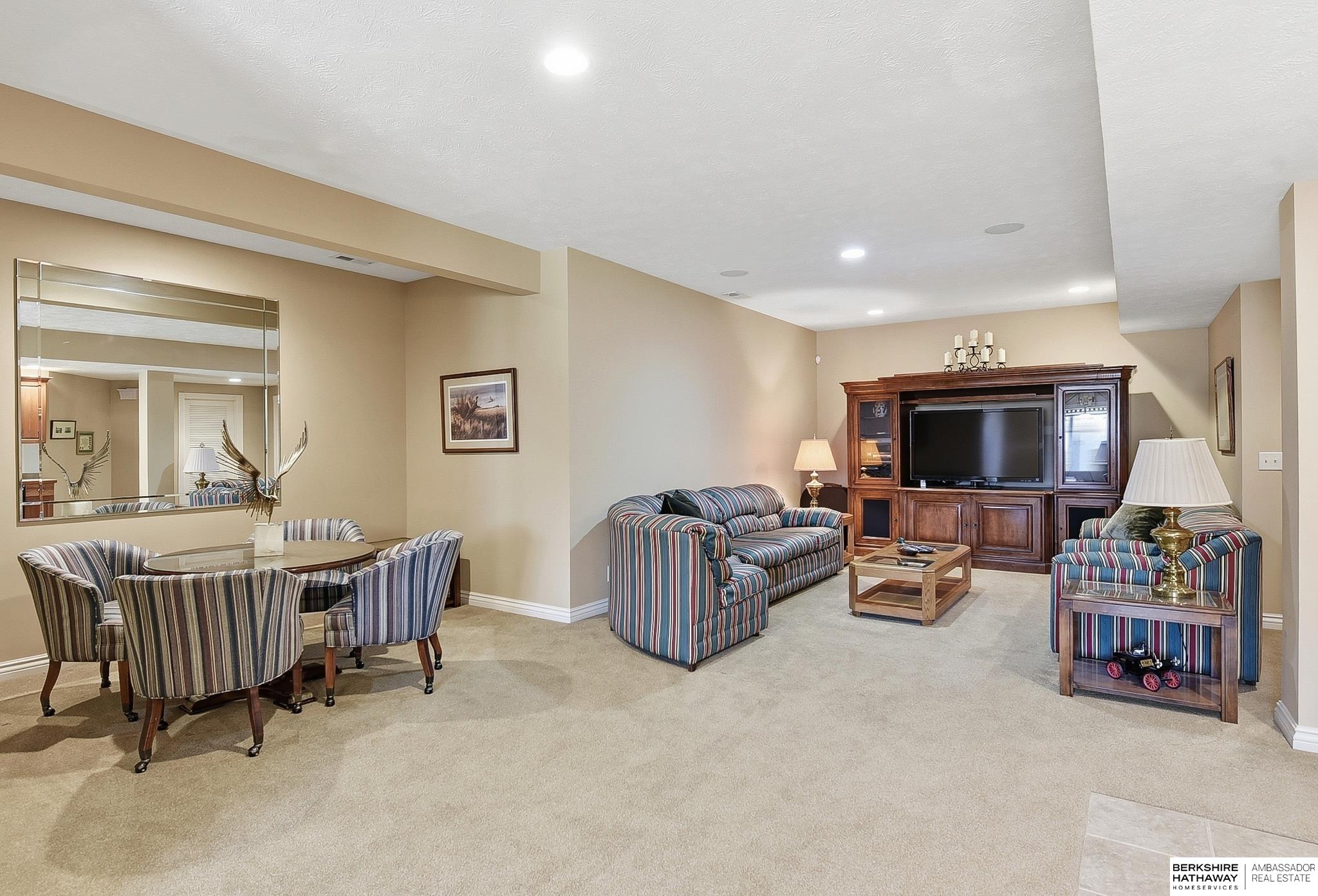 Stately 1.5-story home in sought-after Fire Ridge Estates, features neighborhood, pool, tennis, club house and gym, all within walking distance! Conveniently located near the Dodge corridor. This spacious 5-bedroom, 6-bath, 3-car garage home sits on a prime corner lot and offers a grand entry and an expansive main-floor primary suite. The 2 story great-room travels into the kitchen and covered outdoor deck. Upstairs features 3 bedrooms, all with en-suite bathrooms. The finished lower level hosts an additional living room, wet-bar, game/poker area, bedroom, and bathroom, plus abundant storage and potential to add even more finished square footage. A rare opportunity in an unbeatable neighborhood & location!