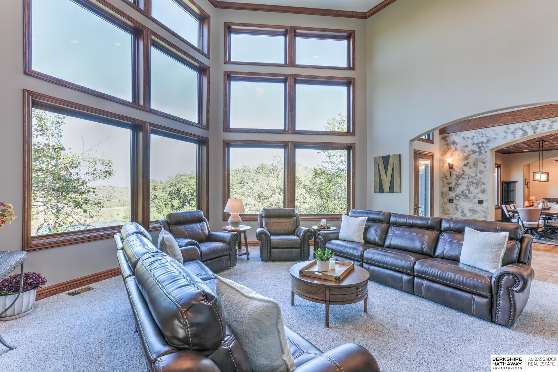 A truly remarkable property tucked inside a gated community on 5.71 acres & surrounded by mature trees,stocked ponds & breathtaking water views,including the Platte River,creating an unmatched backdrop. Everyday serenity continues through the main floor w/ cathedral ceilings,striking 20’ stone FP & floor-to-ceiling windows that frame the scenery from every angle. A gourmet kitchen w/ tiled ceilings,premium appliances & walk-in pantry; primary suite w/ sitting area,fireplace,spa-inspired bath & spacious walk-in closet; additional bedrooms w/ private en-suites & an elevator that services all levels for ultimate convenience. The walkout lower level is designed for hosting w/ its grand rec area & wet bar. Professionally landscaped grounds w/ boulder walls,landscape lighting,heated 3 car attached & heated 2 car detached garages. Explore ATV & hiking trails,unwind on the expansive deck or patio,gather around the fire pit or simply soak in the peaceful surroundings.Your own private sanctuary!