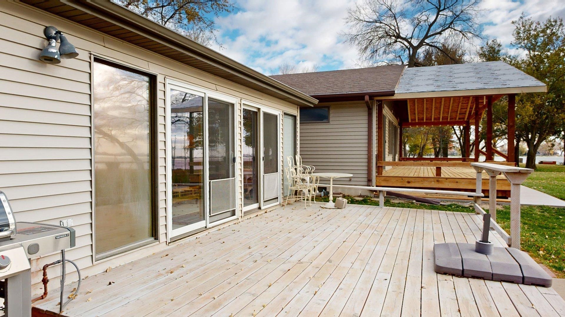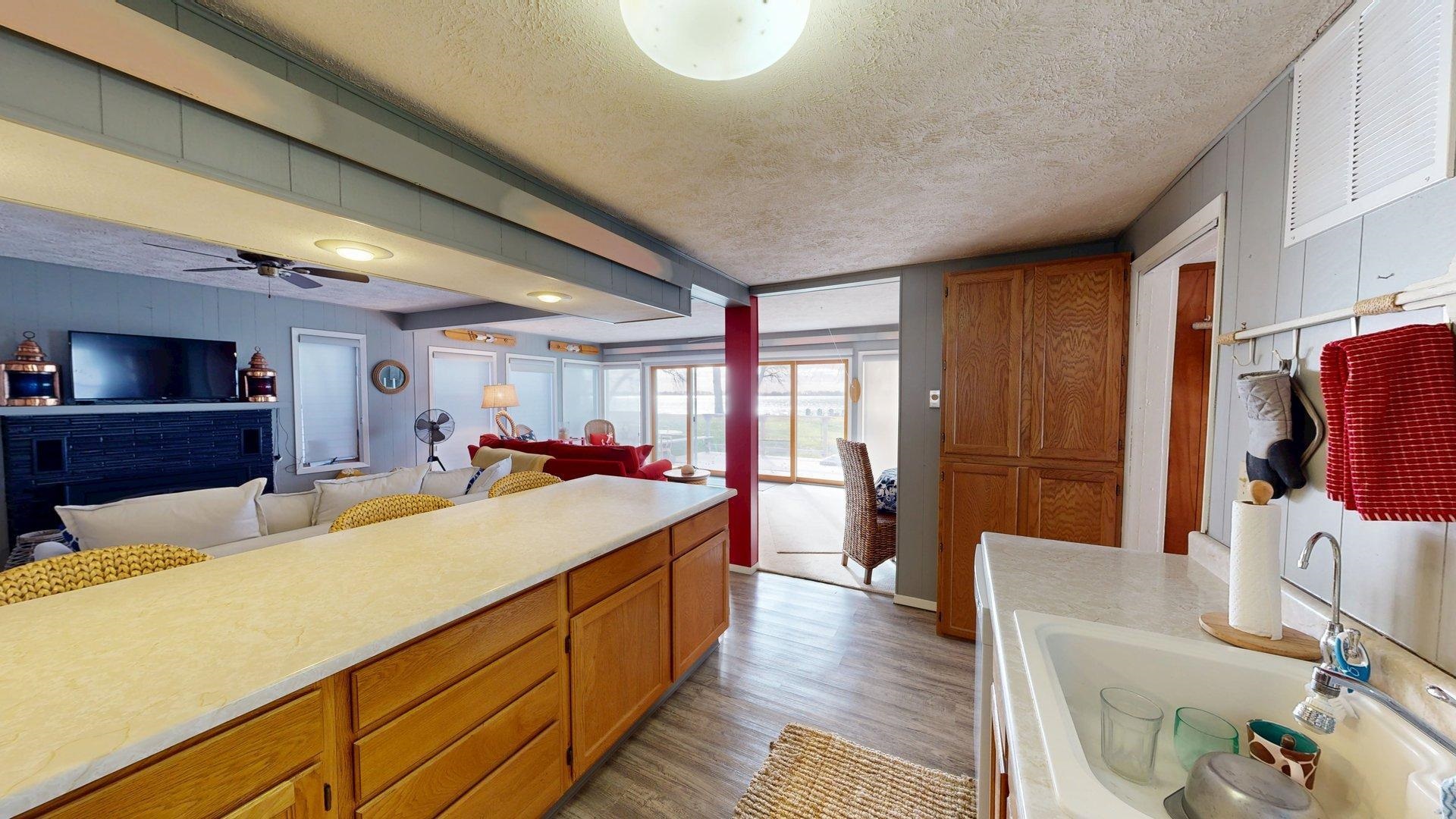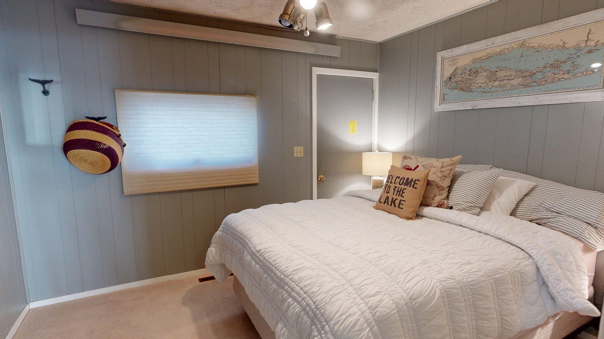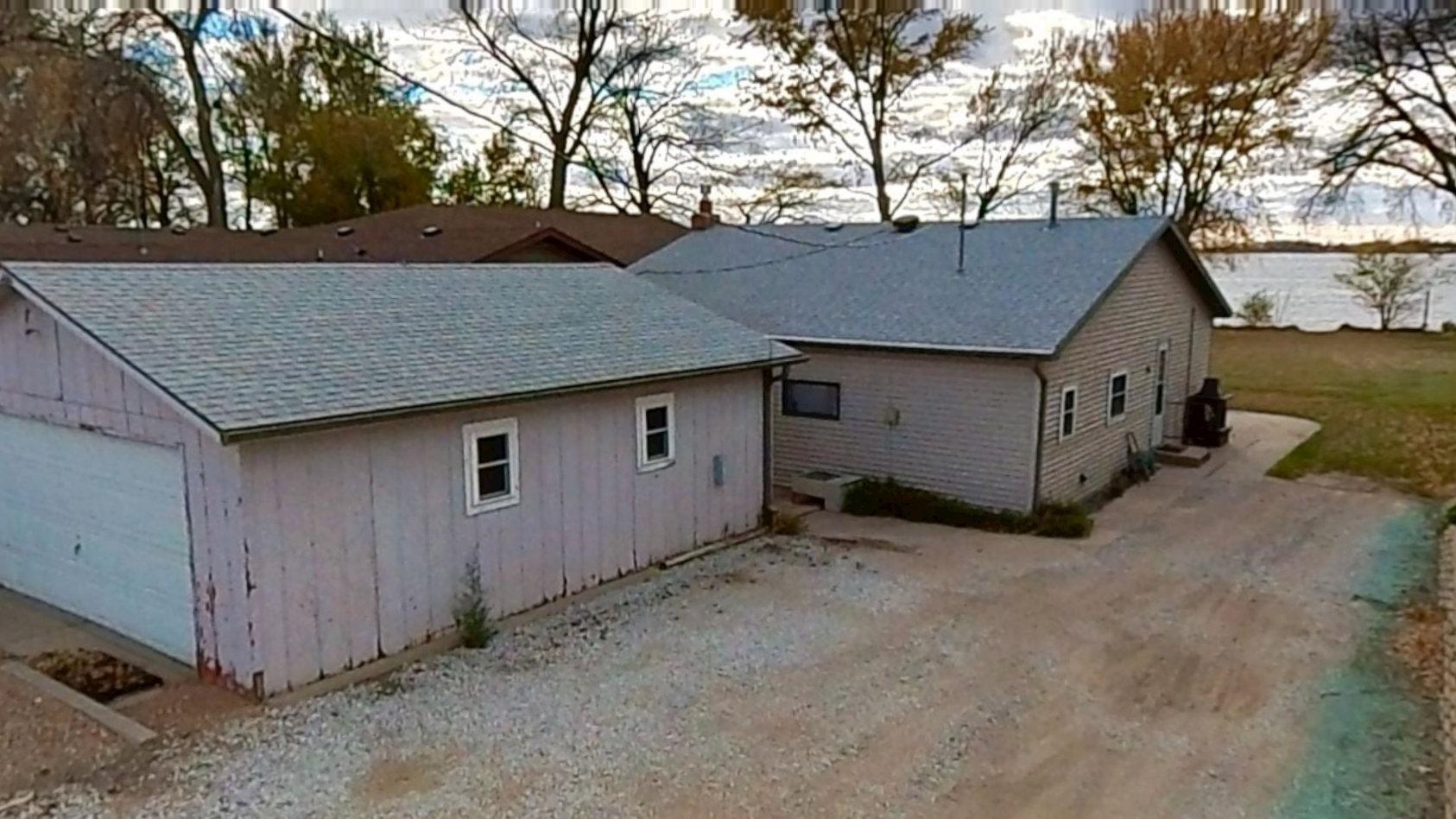 Enjoy lake life in this charming 2-bedroom, 1-bath cabin perfectly positioned at Johnson Lake. Inside, the open-concept living space features a cozy fireplace and a wall of lakeside windows with sliding doors that open directly to the deck, creating seamless indoor-to-outdoor living. The kitchen offers a large eat-in bar. Laundry is conveniently located in the bathroom for easy everyday living. Outside, you’ll appreciate the ground-level deck for relaxing and entertaining, underground sprinklers for easy lawn care, and a hard-to-find oversized lot that provides extra room to enjoy for entertaining or activities. The property also includes a two-stall detached garage. Behind the cabin, additional space offers convenient extra parking for guests, lake toys, or overflow vehicles. The property also includes a dock and ShoreStation for your boat as well as a jet ski. A rare opportunity to own a spacious lake property with room to grow, play, and make lasting memories at Johnson Lake.