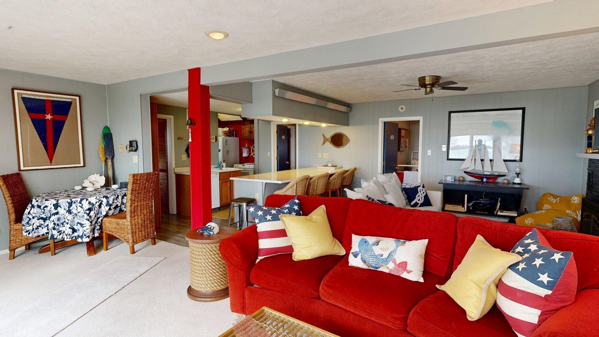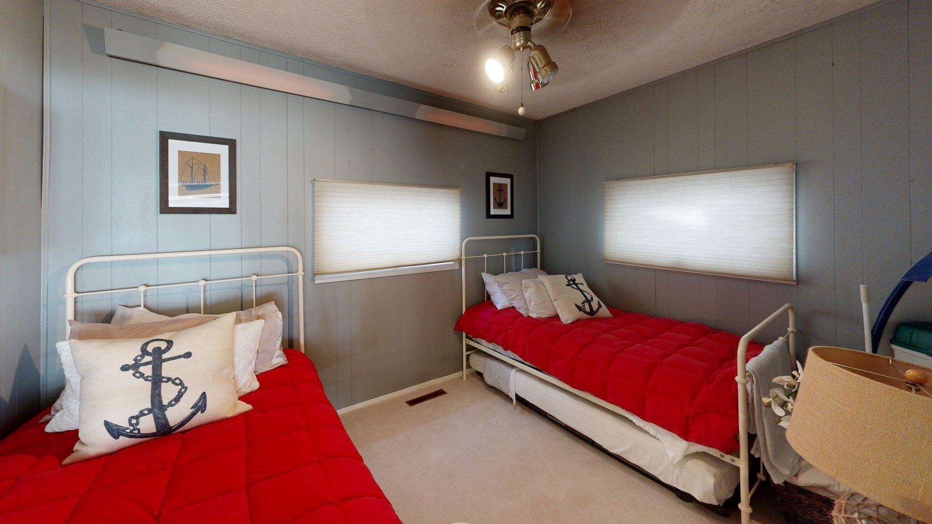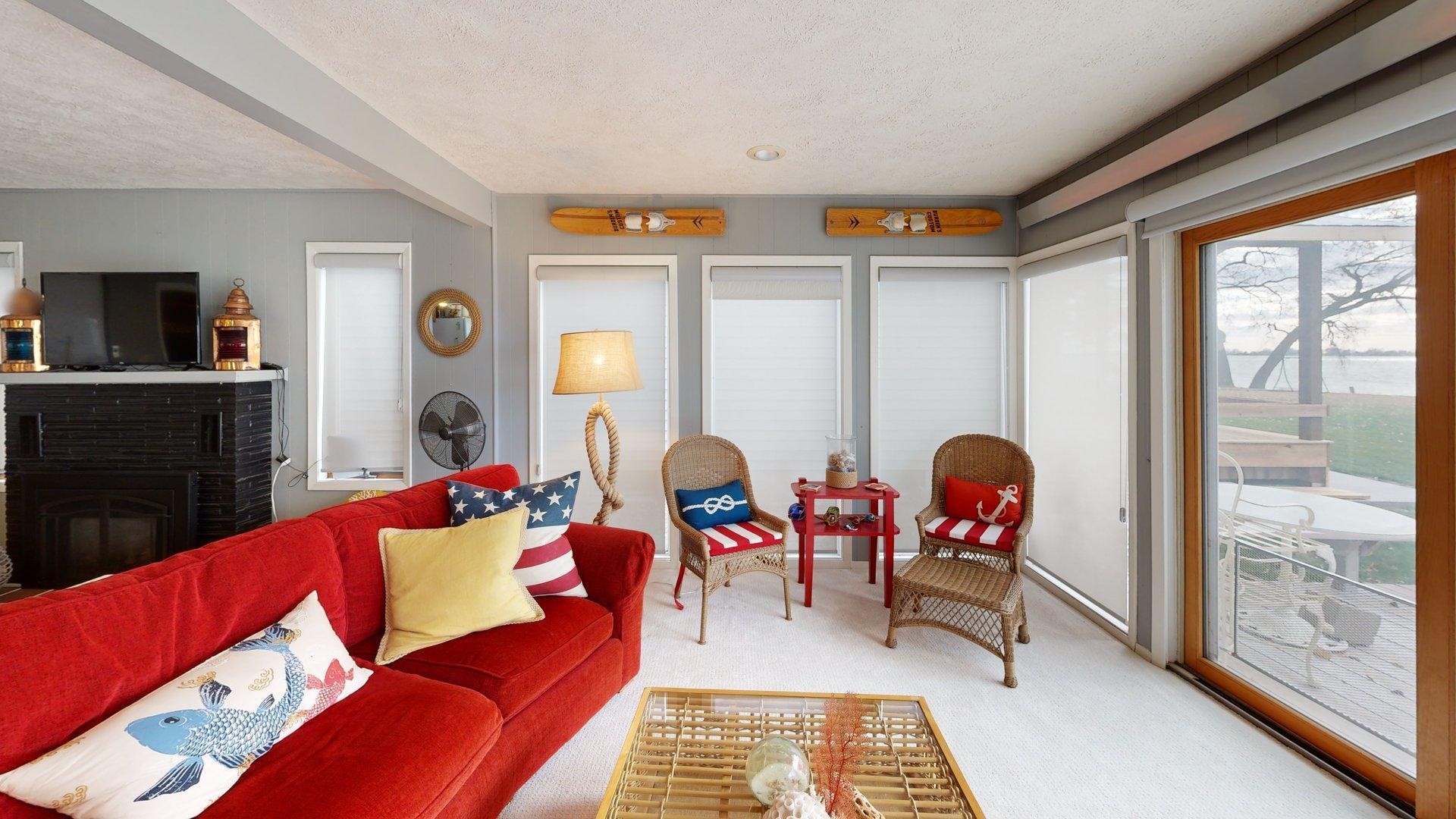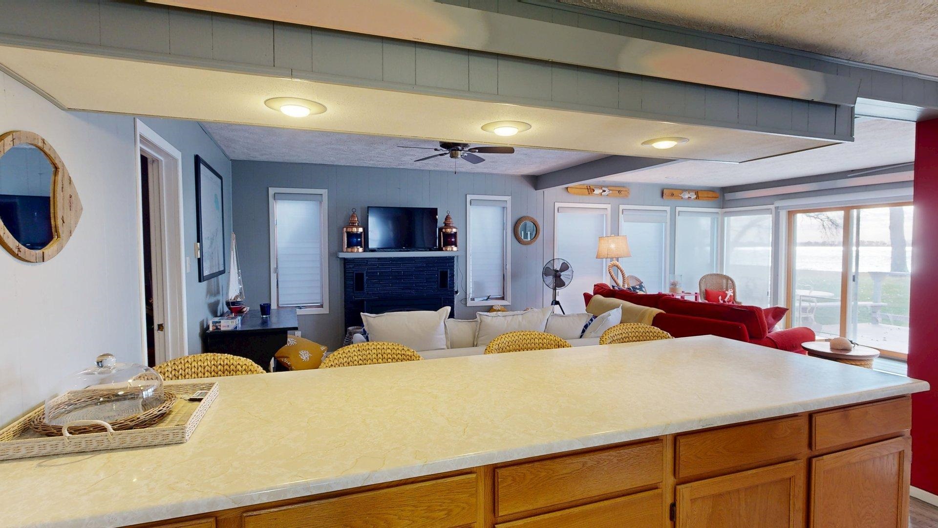 Enjoy lake life in this charming 2-bedroom, 1-bath cabin perfectly positioned at Johnson Lake. Inside, the open-concept living space features a cozy fireplace and a wall of lakeside windows with sliding doors that open directly to the deck, creating seamless indoor-to-outdoor living. The kitchen offers a large eat-in bar. Laundry is conveniently located in the bathroom for easy everyday living. Outside, you’ll appreciate the ground-level deck for relaxing and entertaining, underground sprinklers for easy lawn care, and a hard-to-find oversized lot that provides extra room to enjoy for entertaining or activities. The property also includes a two-stall detached garage. Behind the cabin, additional space offers convenient extra parking for guests, lake toys, or overflow vehicles. The property also includes a dock and ShoreStation for your boat as well as a jet ski. A rare opportunity to own a spacious lake property with room to grow, play, and make lasting memories at Johnson Lake.