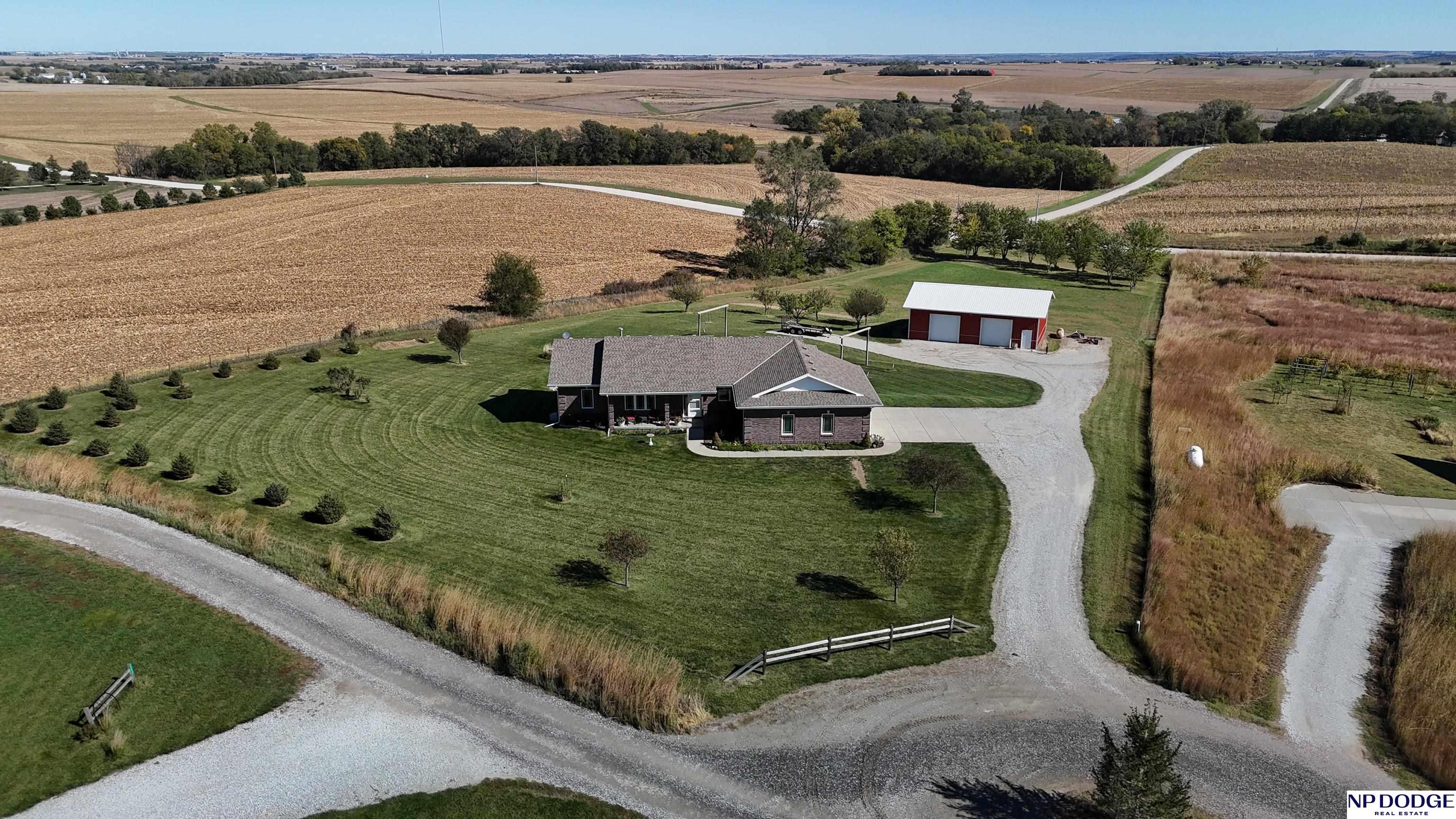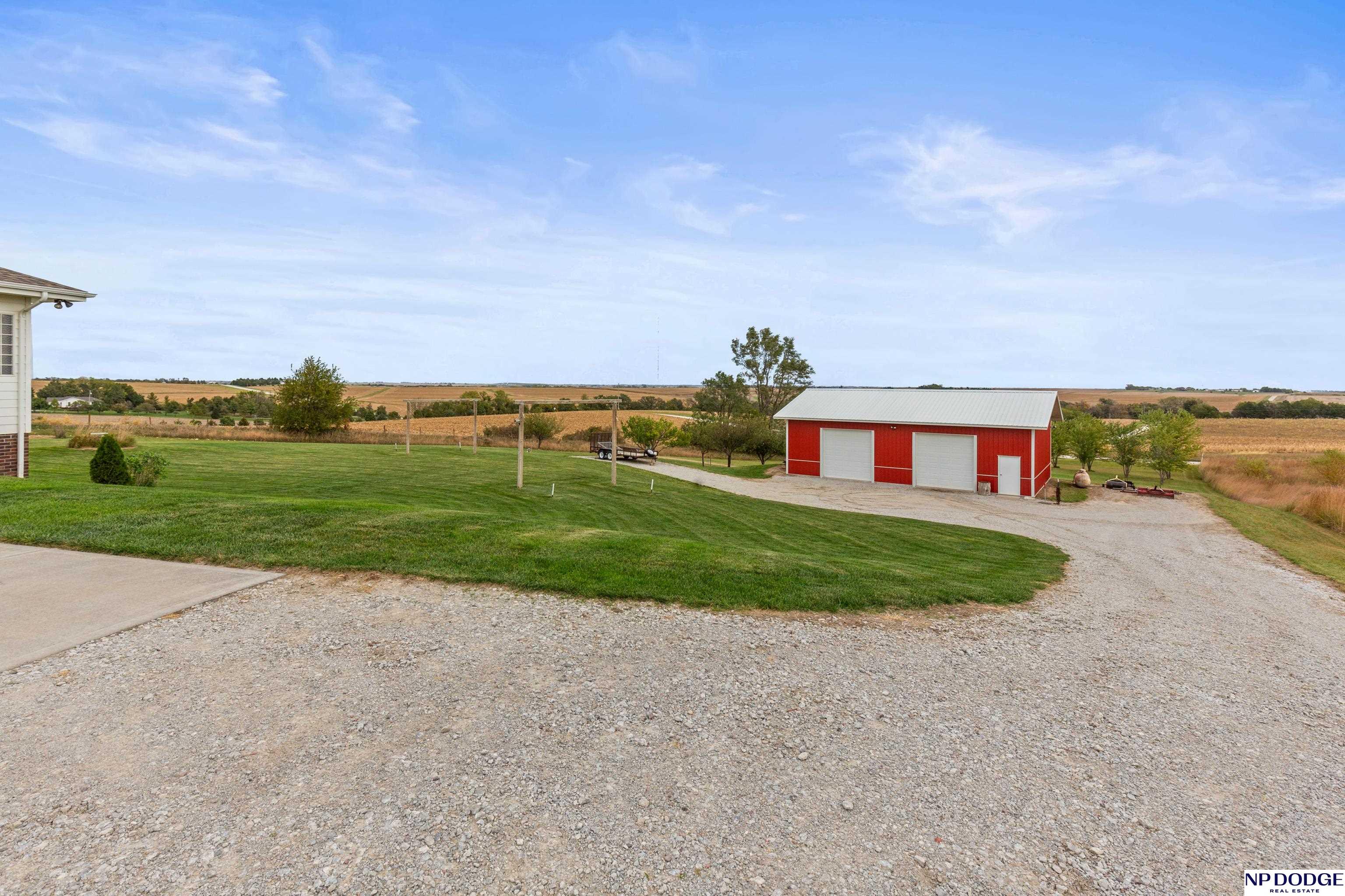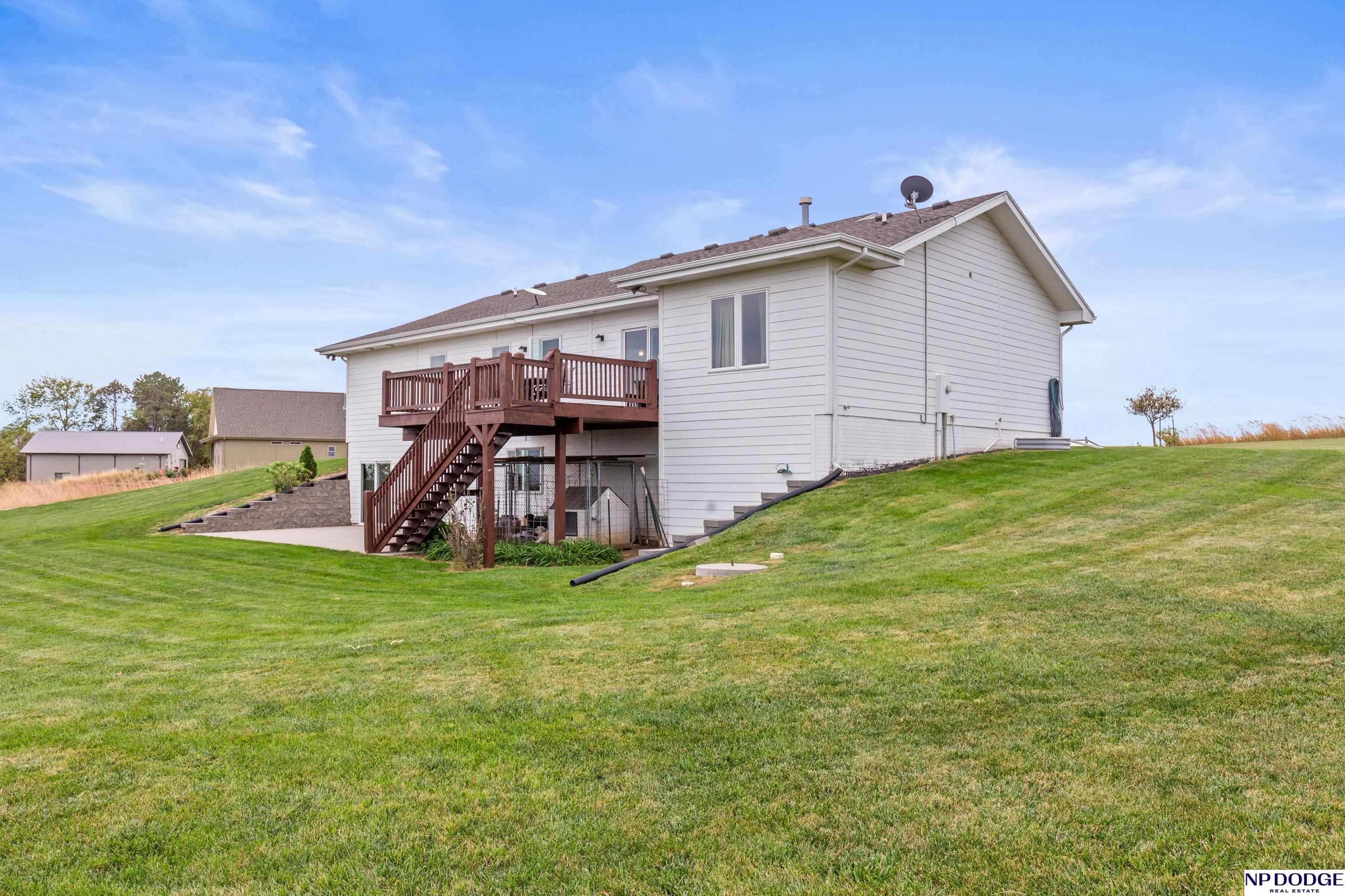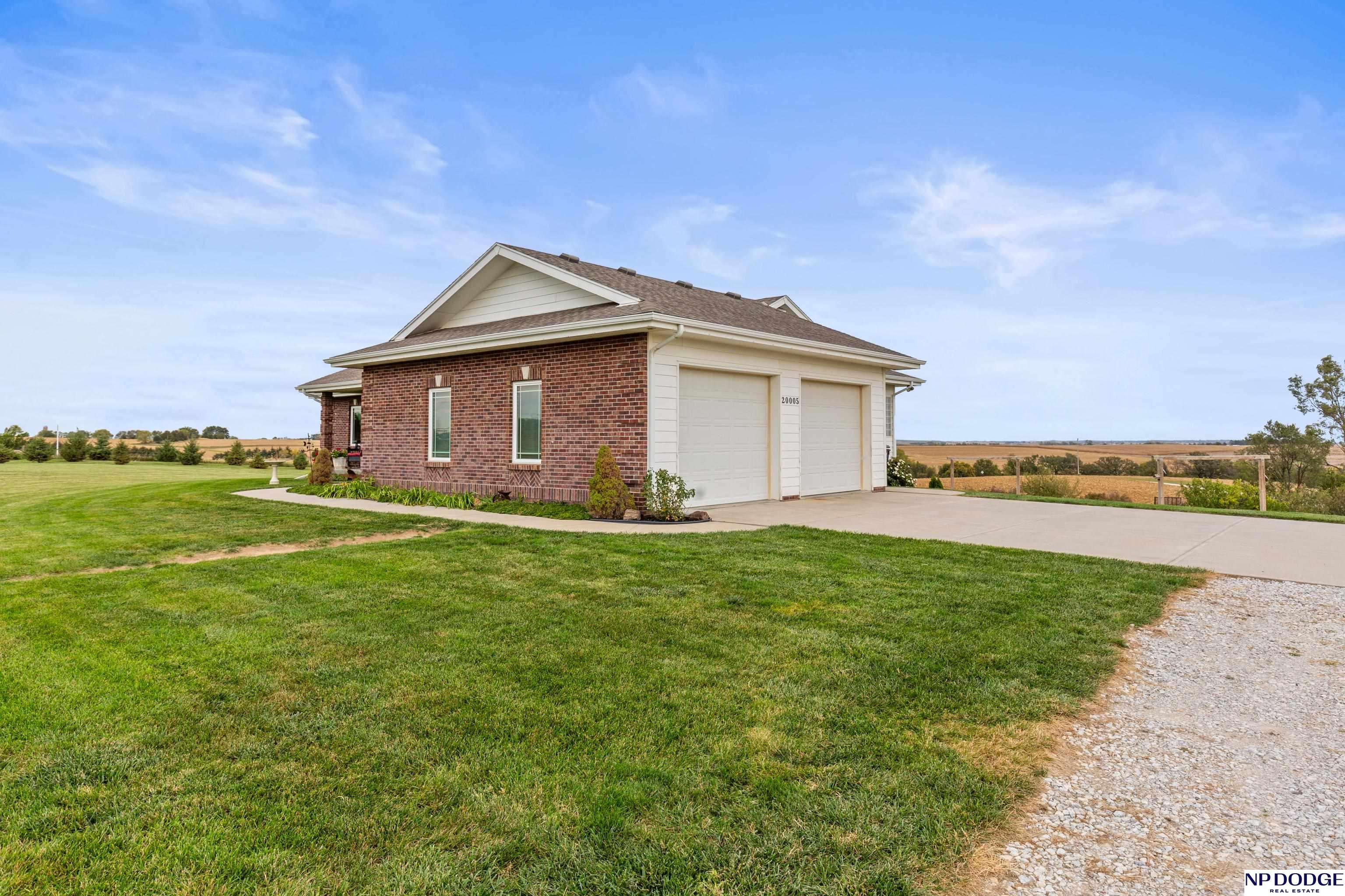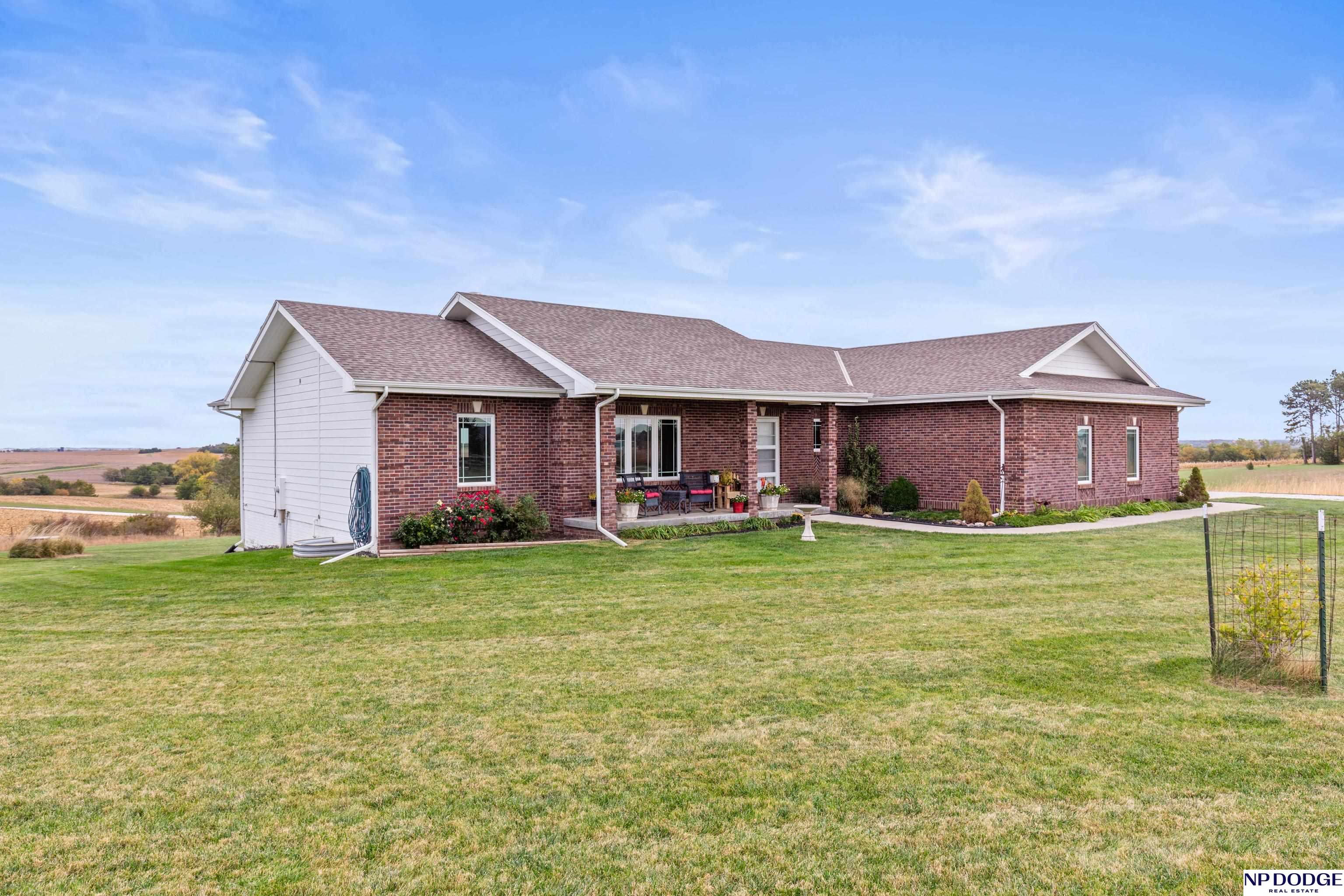 Your dream retreat awaits on 3.02 acres just 20 minutes from Omaha! Enjoy the beauty of country living without sacrificing comfort or style. The heart of the home is an inviting kitchen and living area with an open layout ideal for entertaining or everyday living. The kitchen features granite counters, a center island, pantry, and gorgeous views. The serene primary suite offers a spa-inspired bath with a zero-entry tile shower, soaking tub, dual-sink vanity, and walk-in closet. Two additional bedrooms share a beautifully finished full bath. The walkout lower level is ready to finish and expand your living space. Enjoy sweeping views, a tranquil setting, and an impressive 30x40 heated outbuilding with a concrete pad—perfect for hobbies or storage. Energy-efficient geothermal heating and cooling provide year-round comfort and savings, plus a LOW .98 mill levy. A perfect blend of sophistication and space—where every day feels like a getaway.