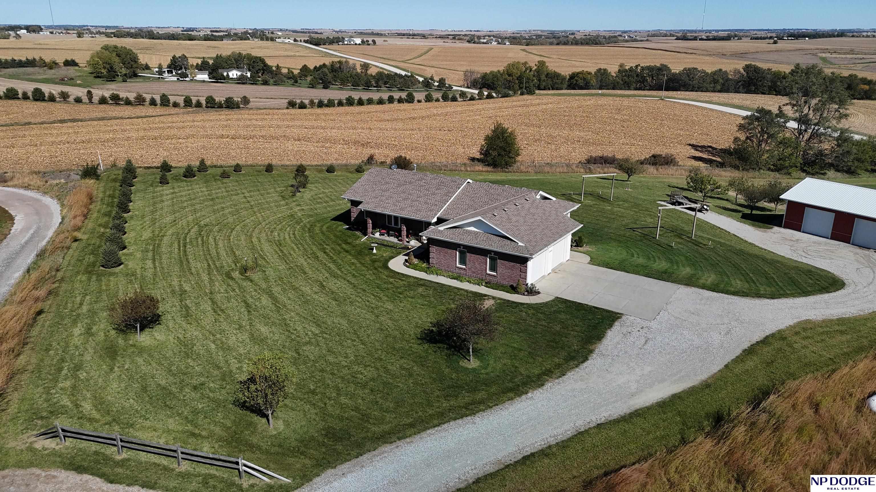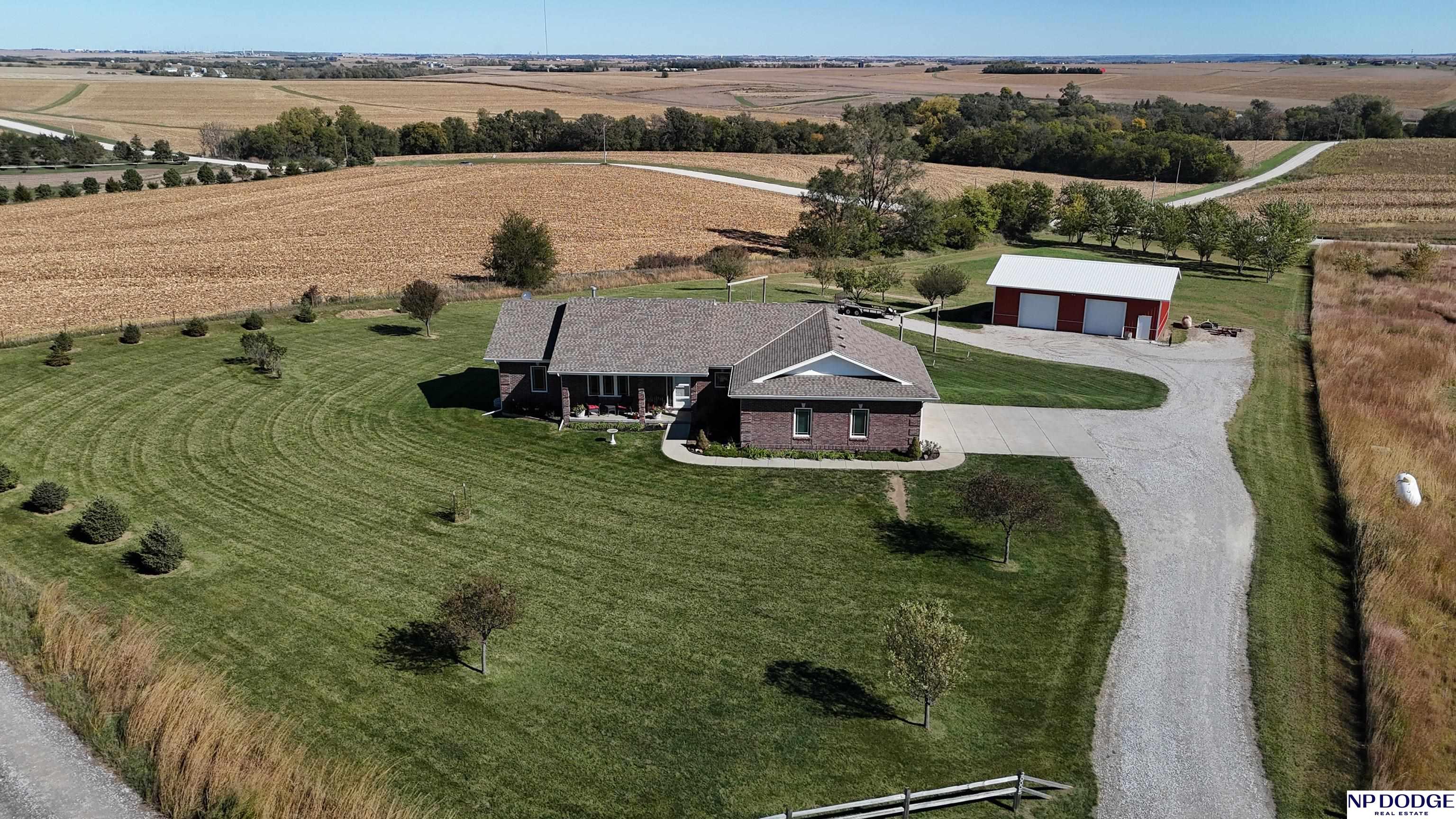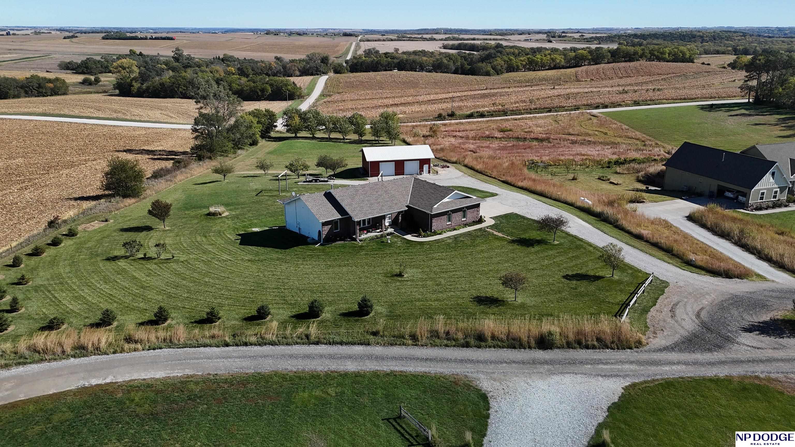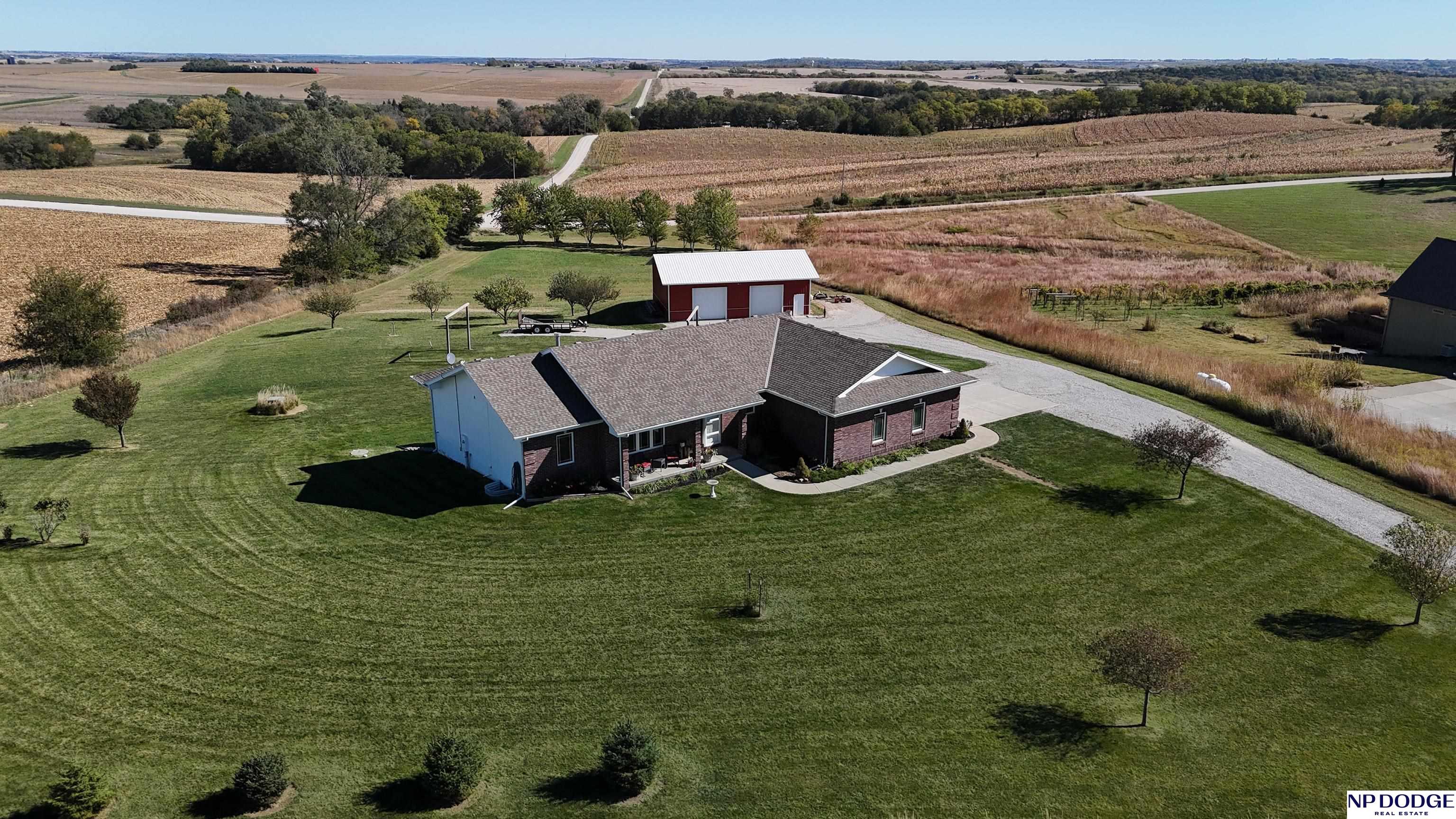 Your dream retreat awaits on 3.02 acres just 20 minutes from Omaha! Enjoy the beauty of country living without sacrificing comfort or style. The heart of the home is an inviting kitchen and living area with an open layout ideal for entertaining or everyday living. The kitchen features granite counters, a center island, pantry, and gorgeous views. The serene primary suite offers a spa-inspired bath with a zero-entry tile shower, soaking tub, dual-sink vanity, and walk-in closet. Two additional bedrooms share a beautifully finished full bath. The walkout lower level is ready to finish and expand your living space. Enjoy sweeping views, a tranquil setting, and an impressive 30x40 heated outbuilding with a concrete pad—perfect for hobbies or storage. Energy-efficient geothermal heating and cooling provide year-round comfort and savings, plus a LOW .98 mill levy. A perfect blend of sophistication and space—where every day feels like a getaway.