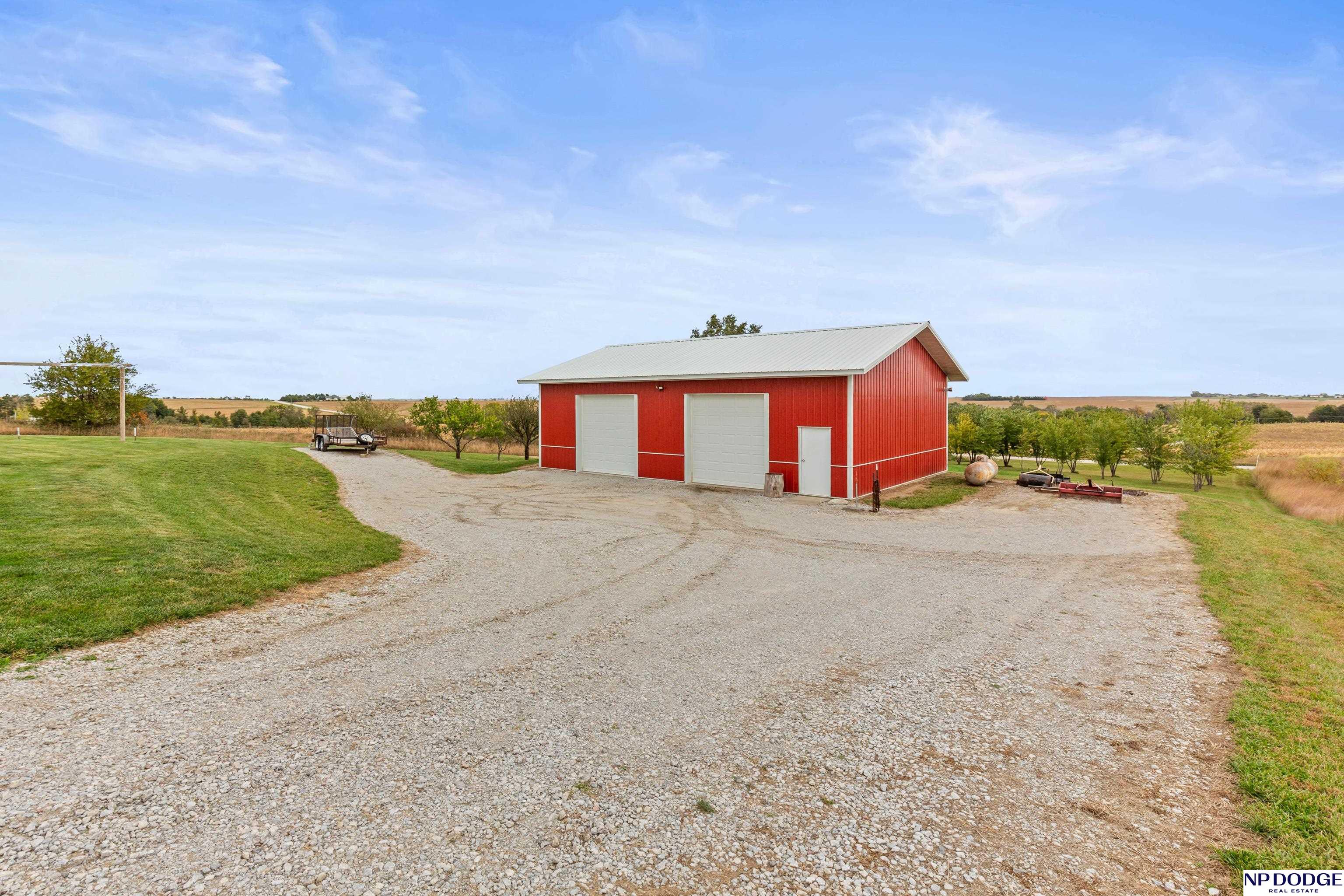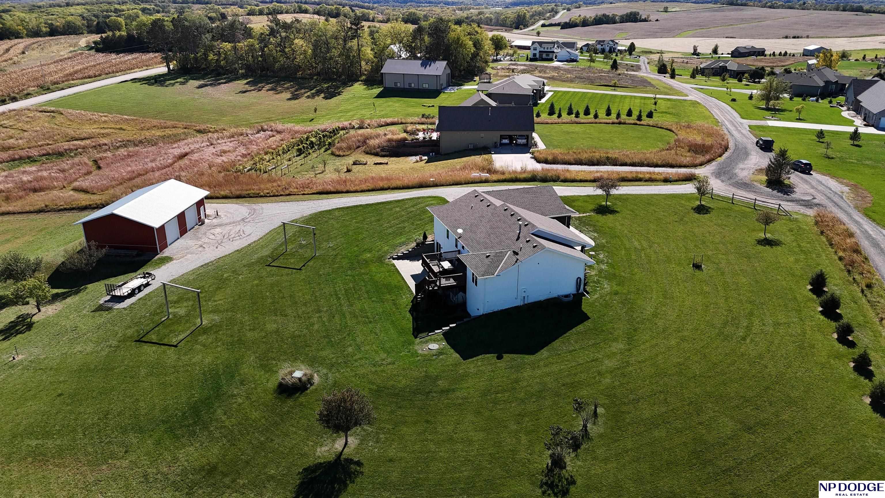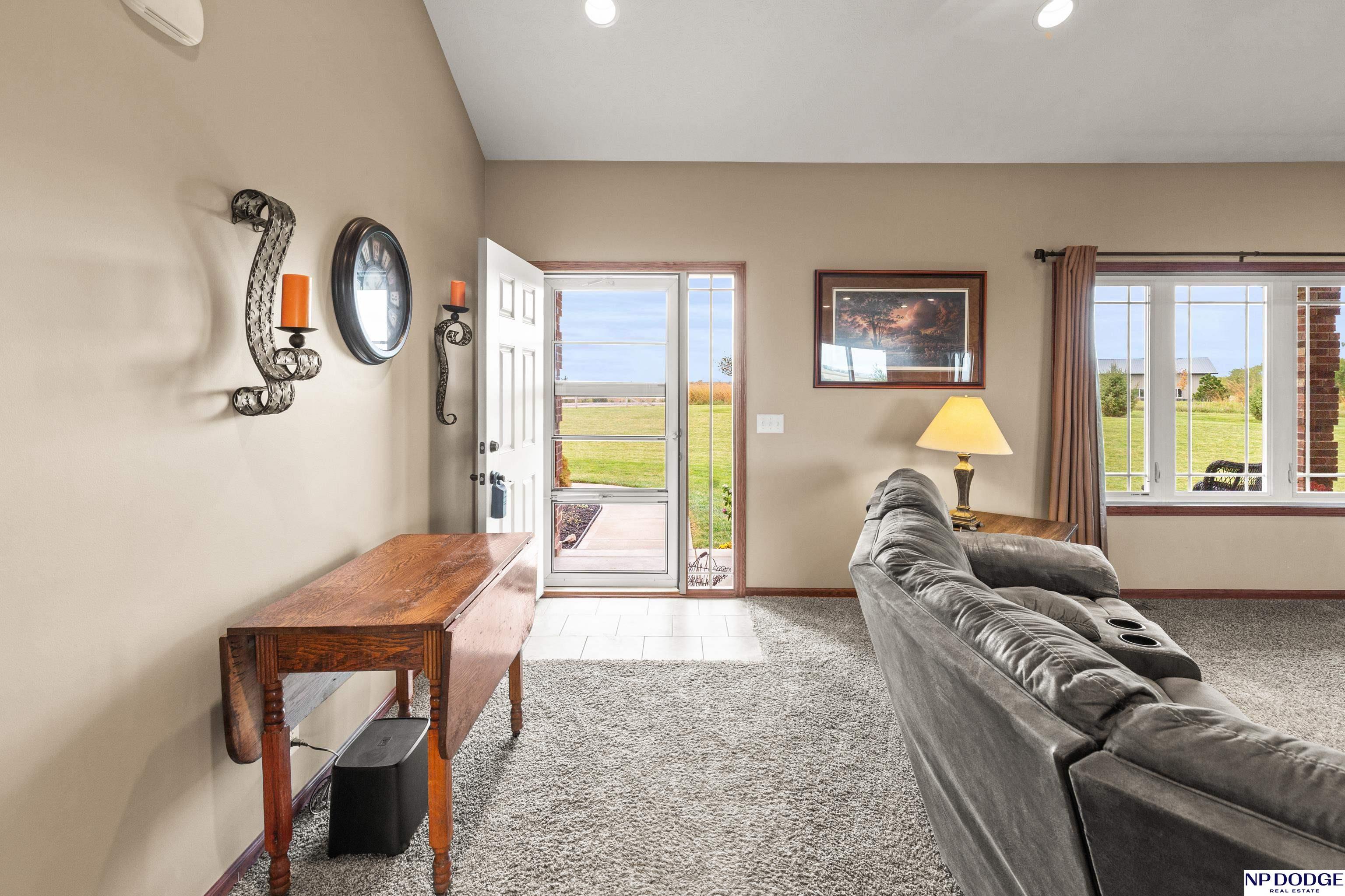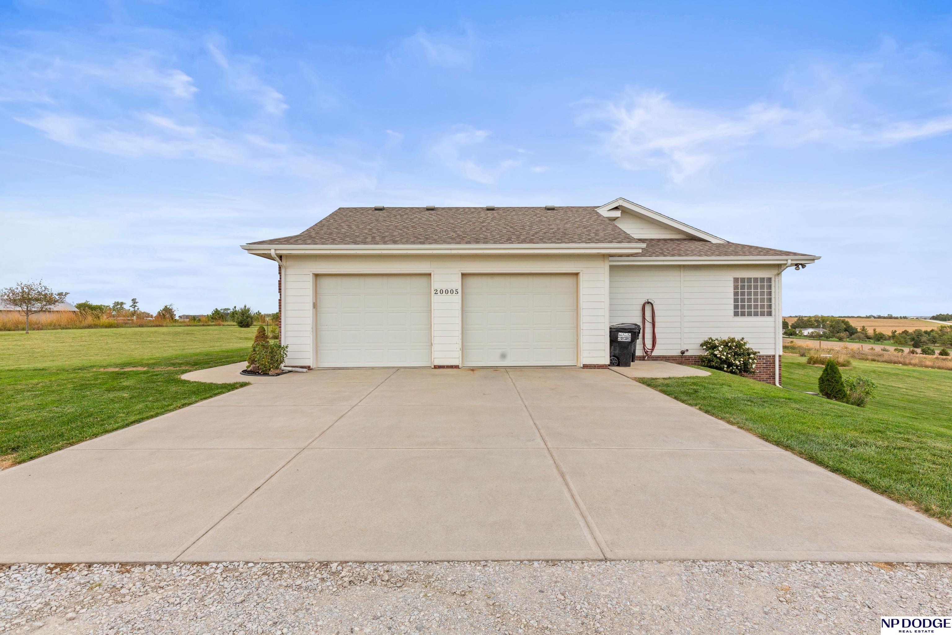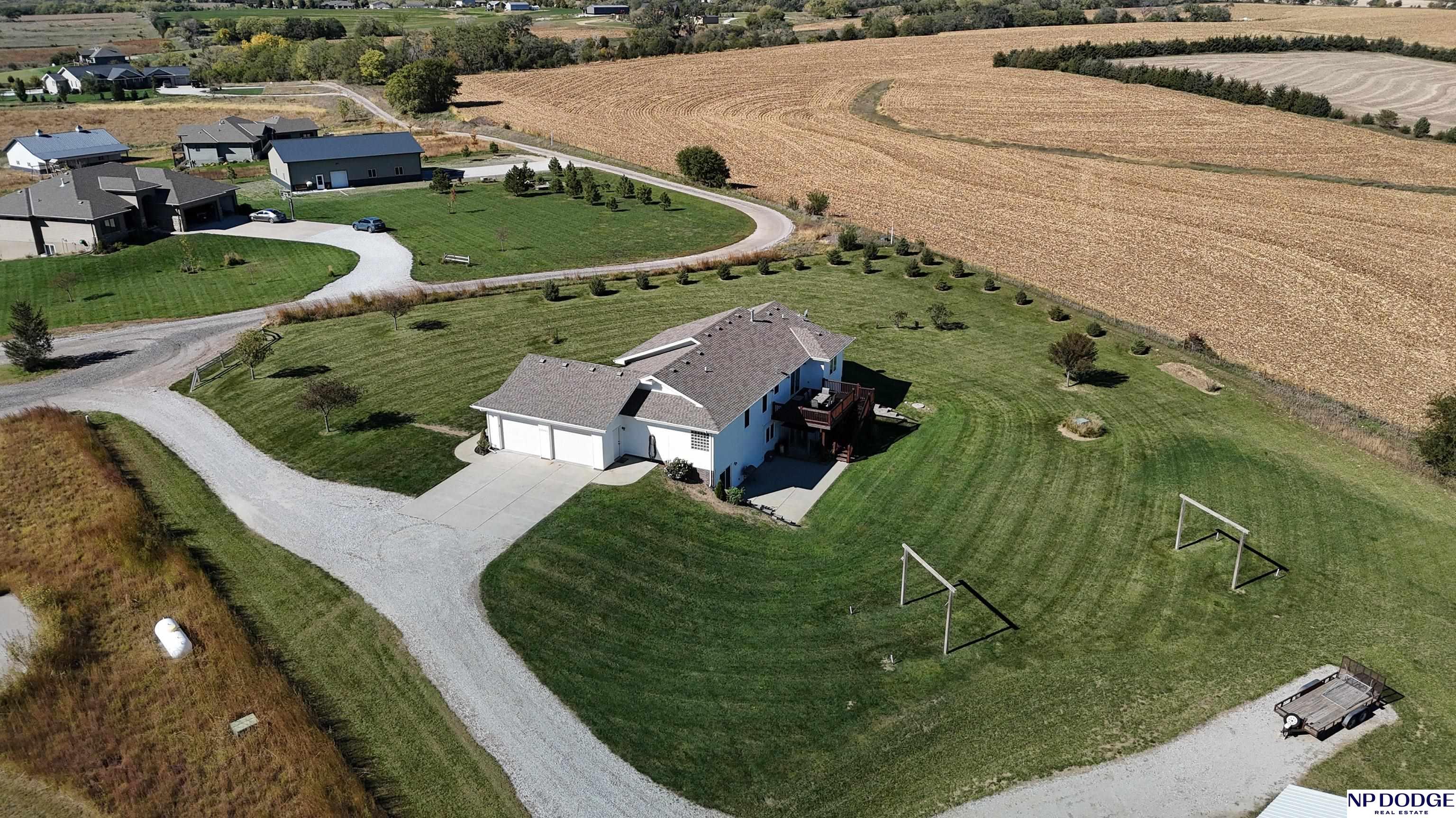 Your dream retreat awaits on 3.02 acres just 20 minutes from Omaha! Enjoy the beauty of country living without sacrificing comfort or style. The heart of the home is an inviting kitchen and living area with an open layout ideal for entertaining or everyday living. The kitchen features granite counters, a center island, pantry, and gorgeous views. The serene primary suite offers a spa-inspired bath with a zero-entry tile shower, soaking tub, dual-sink vanity, and walk-in closet. Two additional bedrooms share a beautifully finished full bath. The walkout lower level is ready to finish and expand your living space. Enjoy sweeping views, a tranquil setting, and an impressive 30x40 heated outbuilding with a concrete pad—perfect for hobbies or storage. Energy-efficient geothermal heating and cooling provide year-round comfort and savings, plus a LOW .98 mill levy. A perfect blend of sophistication and space—where every day feels like a getaway.