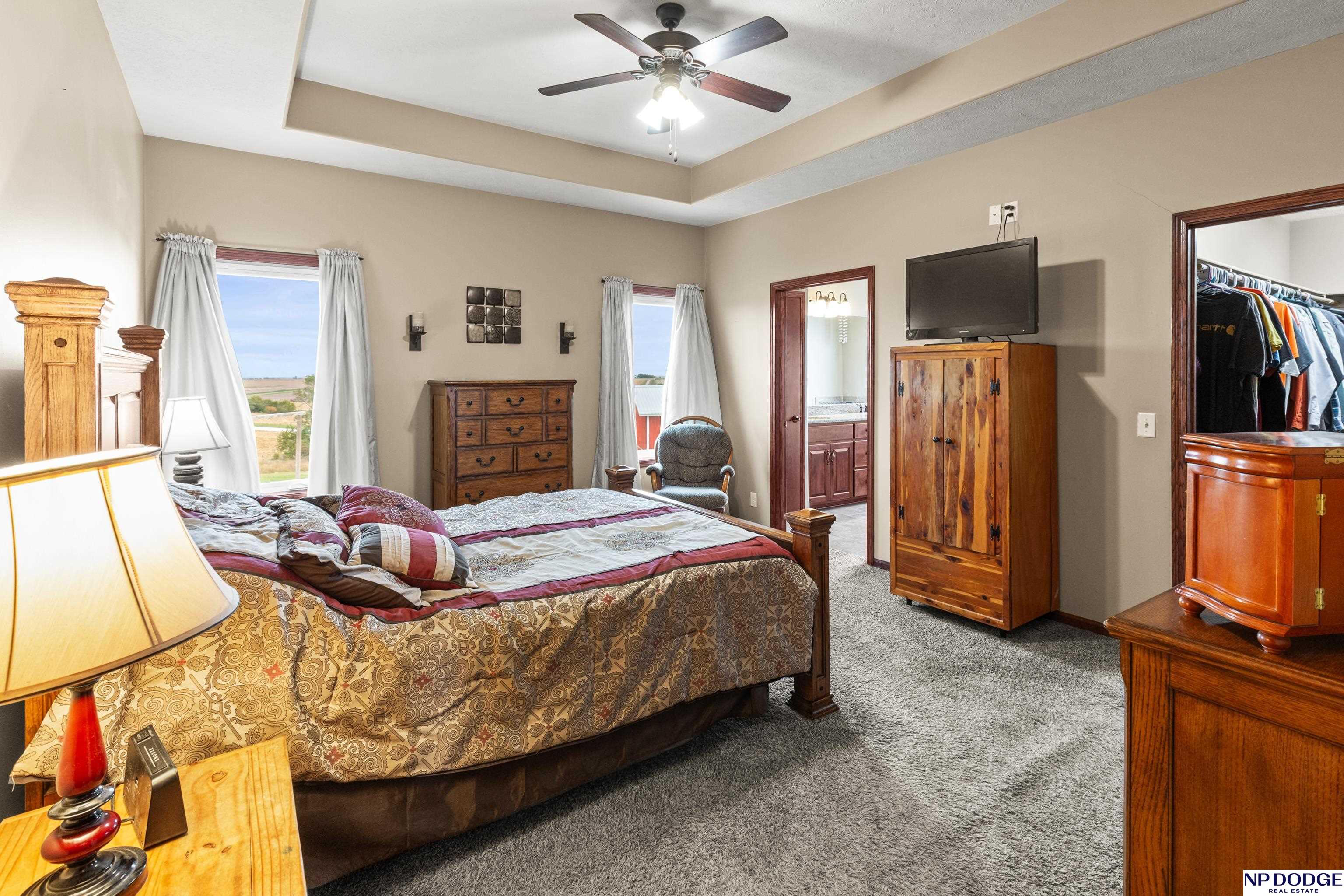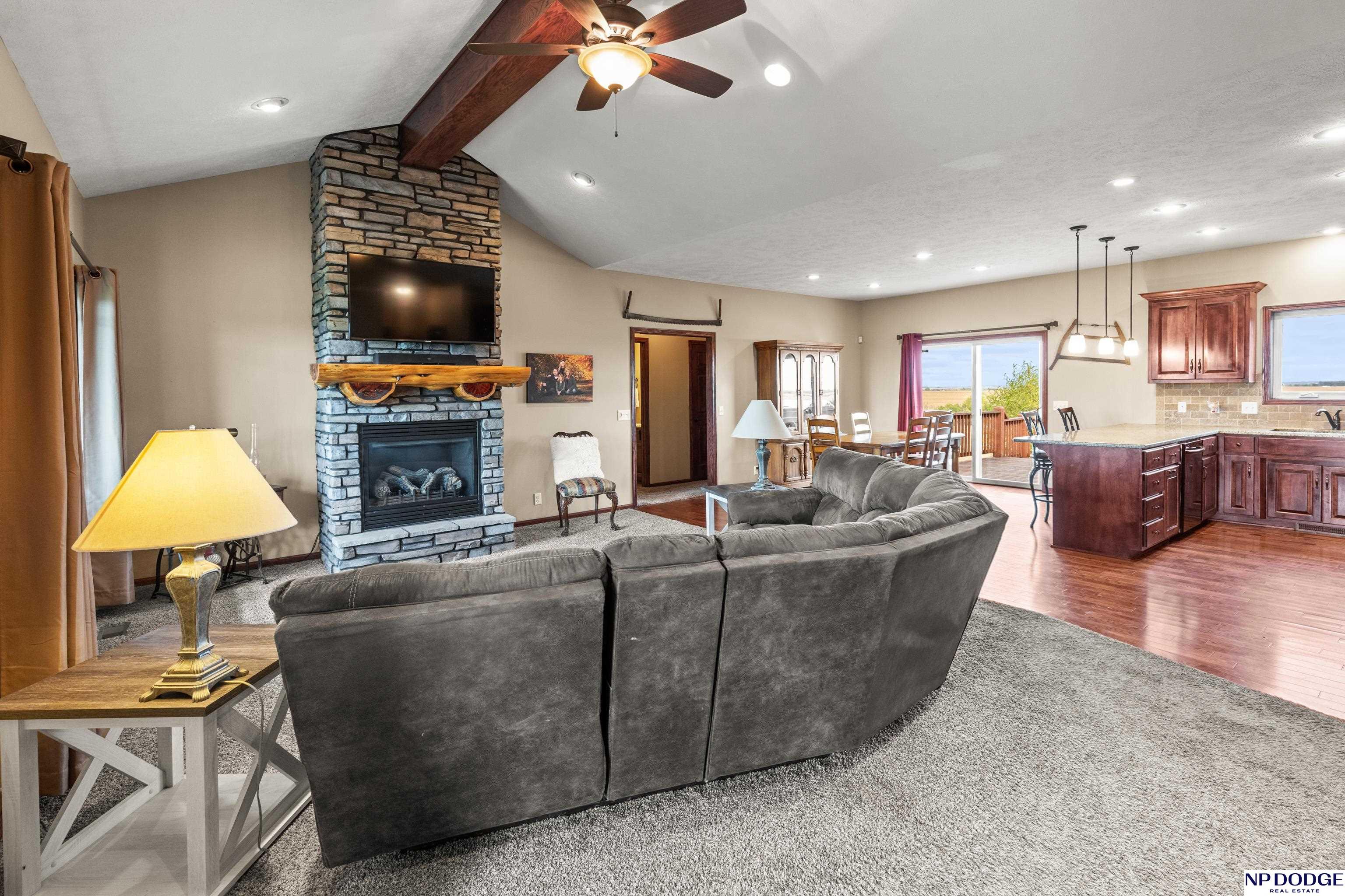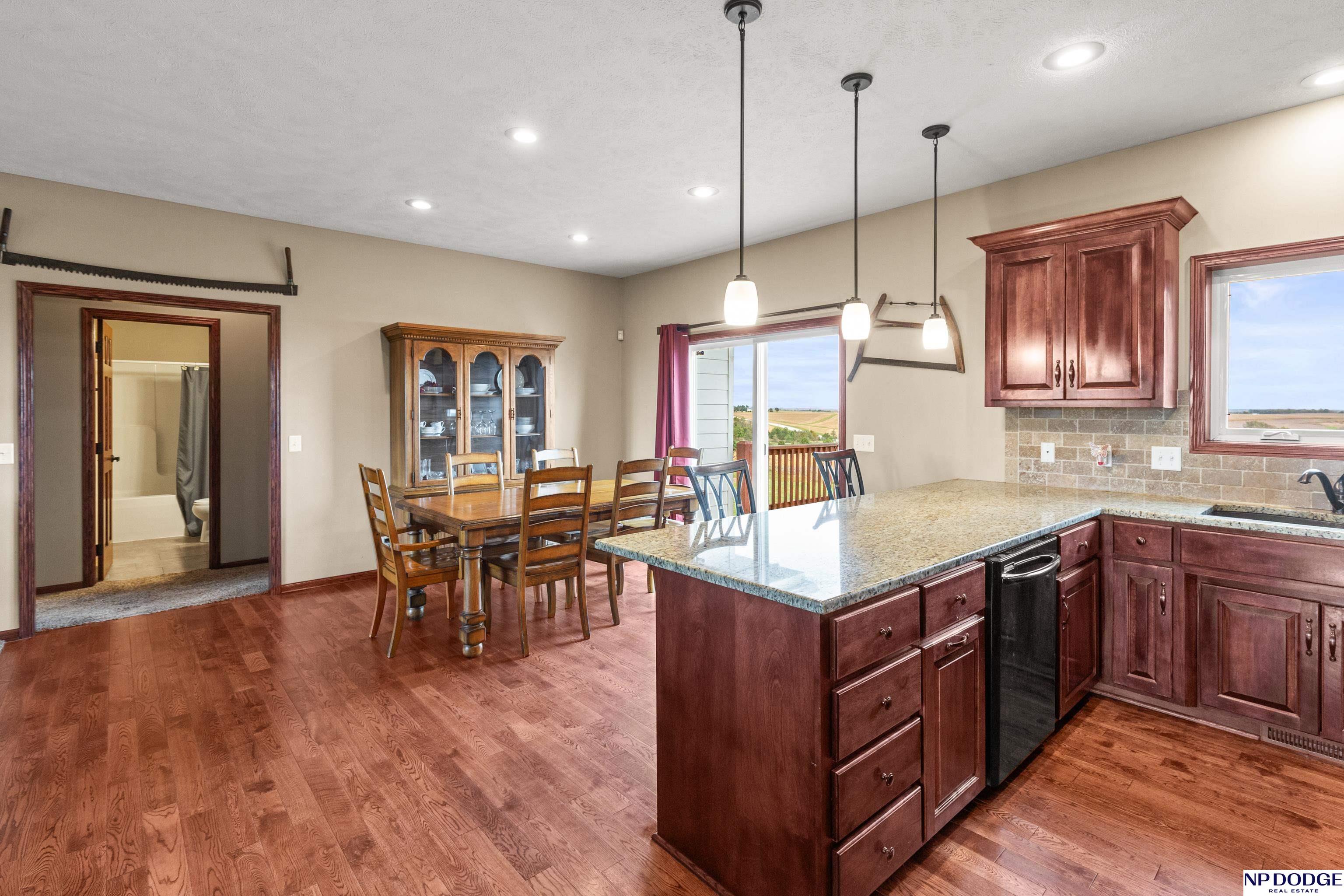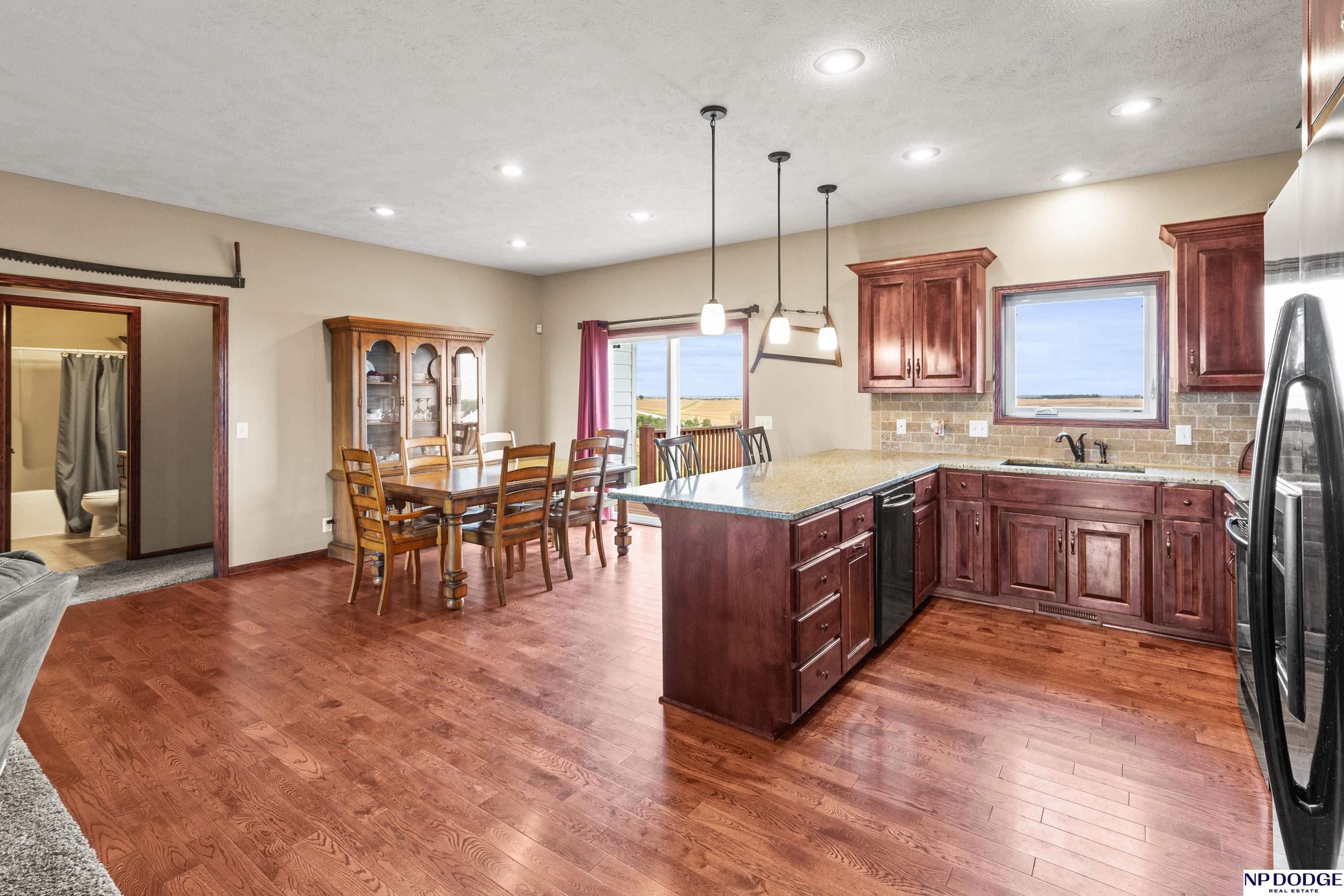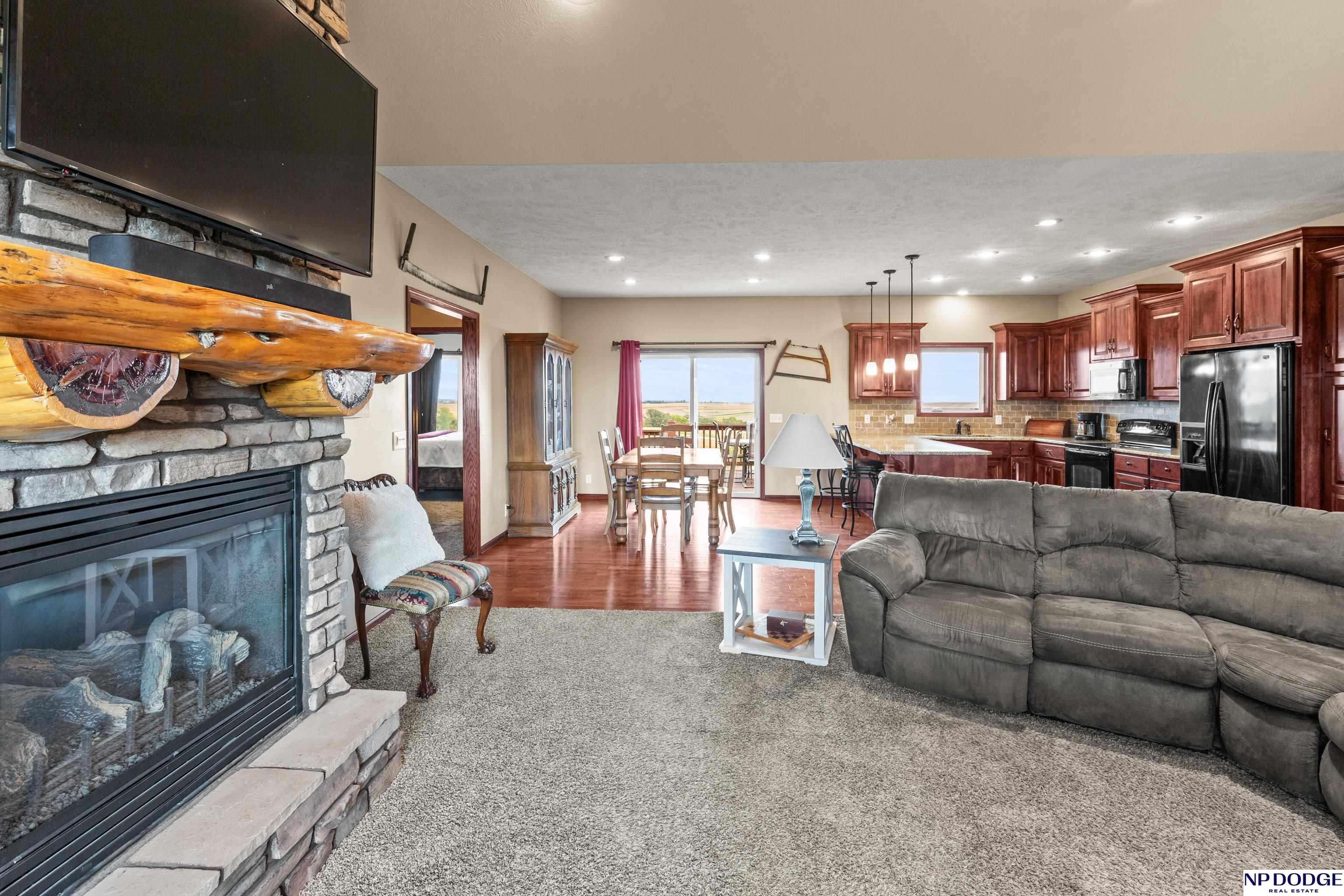 Your dream retreat awaits on 3.02 acres just 20 minutes from Omaha! Enjoy the beauty of country living without sacrificing comfort or style. The heart of the home is an inviting kitchen and living area with an open layout ideal for entertaining or everyday living. The kitchen features granite counters, a center island, pantry, and gorgeous views. The serene primary suite offers a spa-inspired bath with a zero-entry tile shower, soaking tub, dual-sink vanity, and walk-in closet. Two additional bedrooms share a beautifully finished full bath. The walkout lower level is ready to finish and expand your living space. Enjoy sweeping views, a tranquil setting, and an impressive 30x40 heated outbuilding with a concrete pad—perfect for hobbies or storage. Energy-efficient geothermal heating and cooling provide year-round comfort and savings, plus a LOW .98 mill levy. A perfect blend of sophistication and space—where every day feels like a getaway.