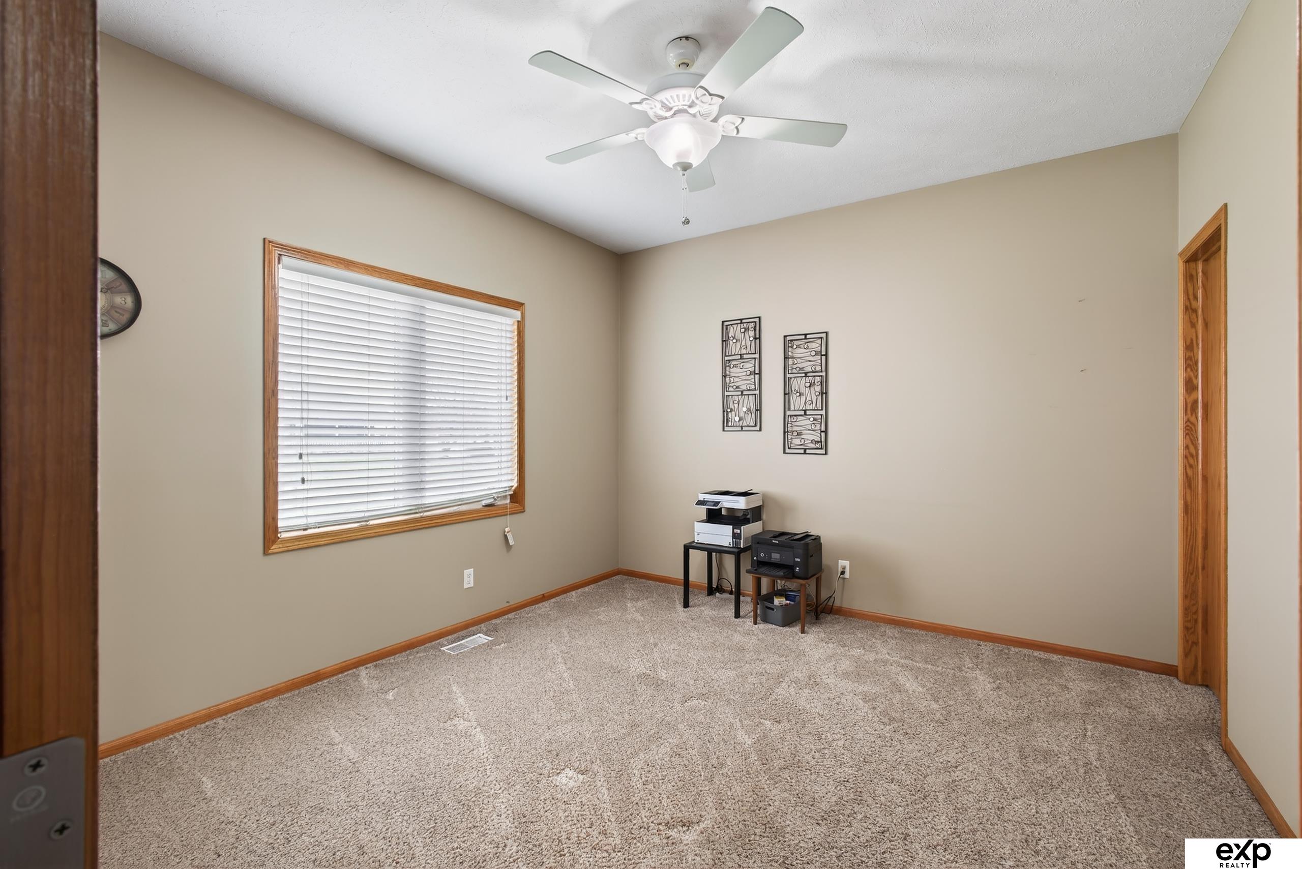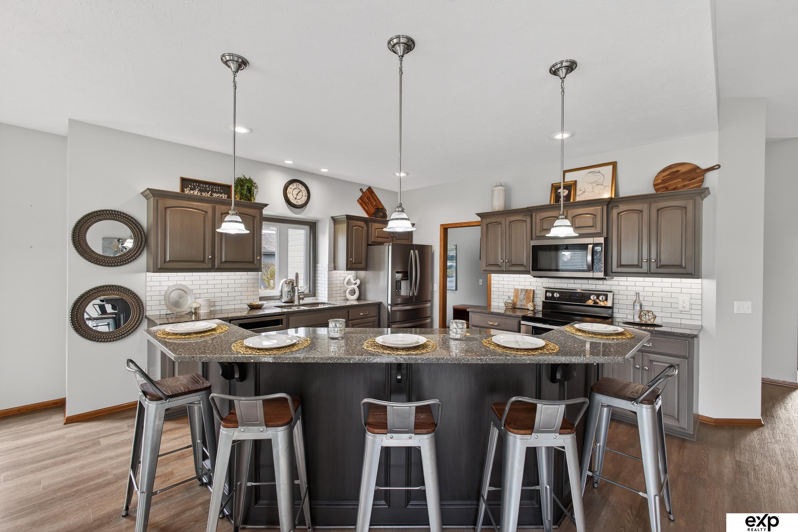 Open House Saturday 2-3. Impeccably cared-for, one-owner ranch in coveted Elkhorn Ridge situated on an outstanding lot by golf course and backs to no neighbors. The main flr features 3 huge bedrooms, a full bath for guest, & a well-designed primary suite with modern granite finishes, double sinks, trayed ceiling, & double walk-in closets. An open kitchen w/ granite counters and pantry flows into the dining area and living room, creating an ideal layout for everyday living and entertaining. The partially finished basement adds a large bedroom and bath, extra egress window for a future 5th bedroom, rough-in for a wet bar, & ideal space for rec room, theater or gym. Mechanical upgrades include a 3-year-old furnace and AC, 2022 roof, sprinkler system, & sump pit. Outside, the large, flat lot is truly usable—great for play, pets, or future patio and firepit—w/ no rear neighbors for added privacy and golf course views out front. A 3+car garage with workshop, flat driveway, & covered porch!