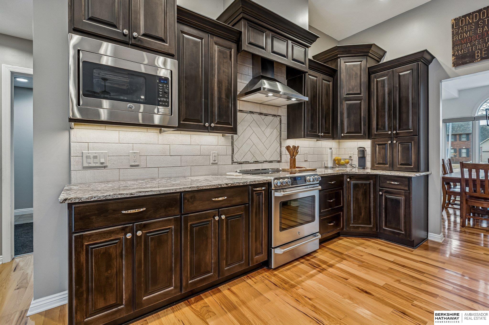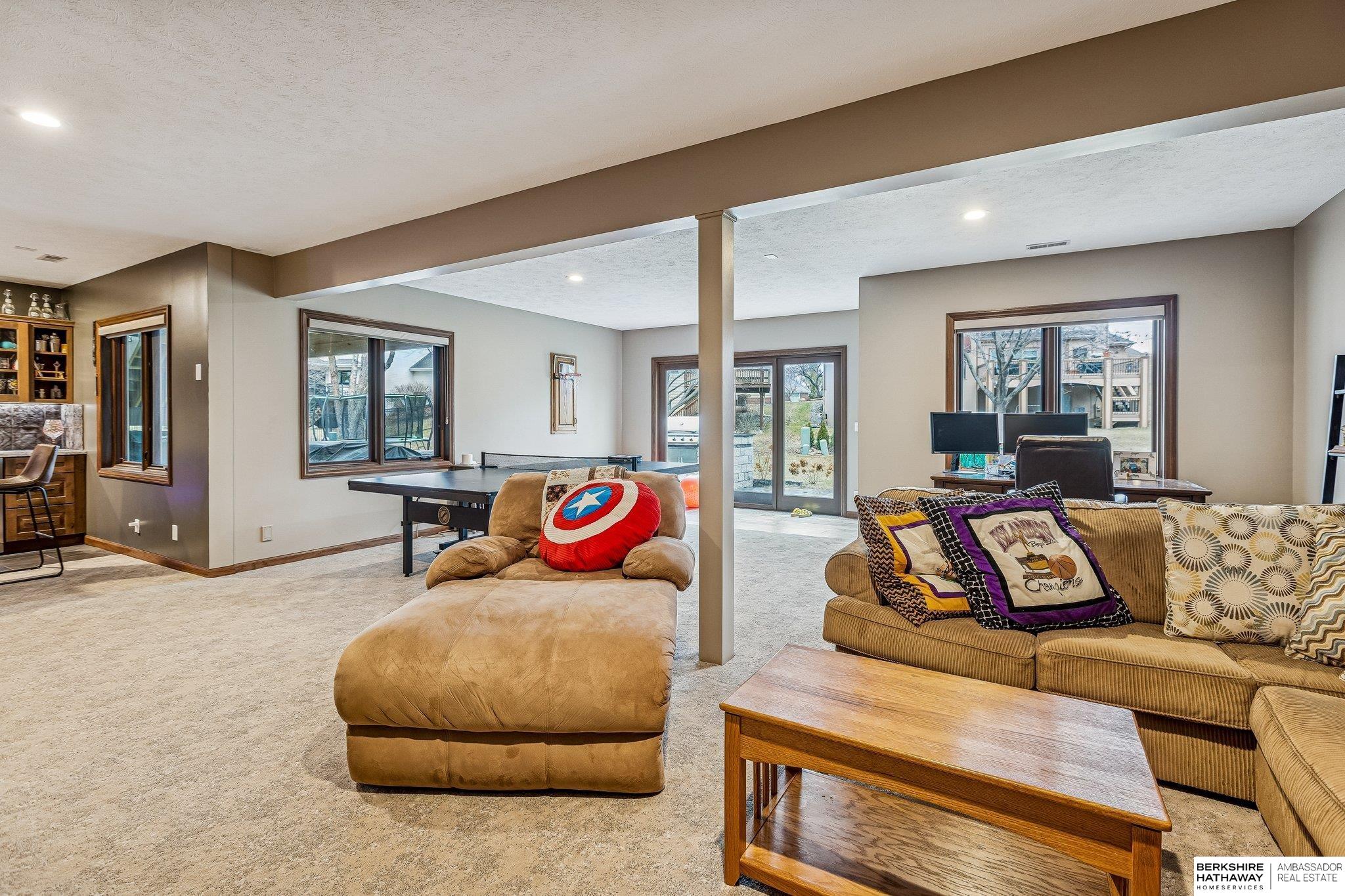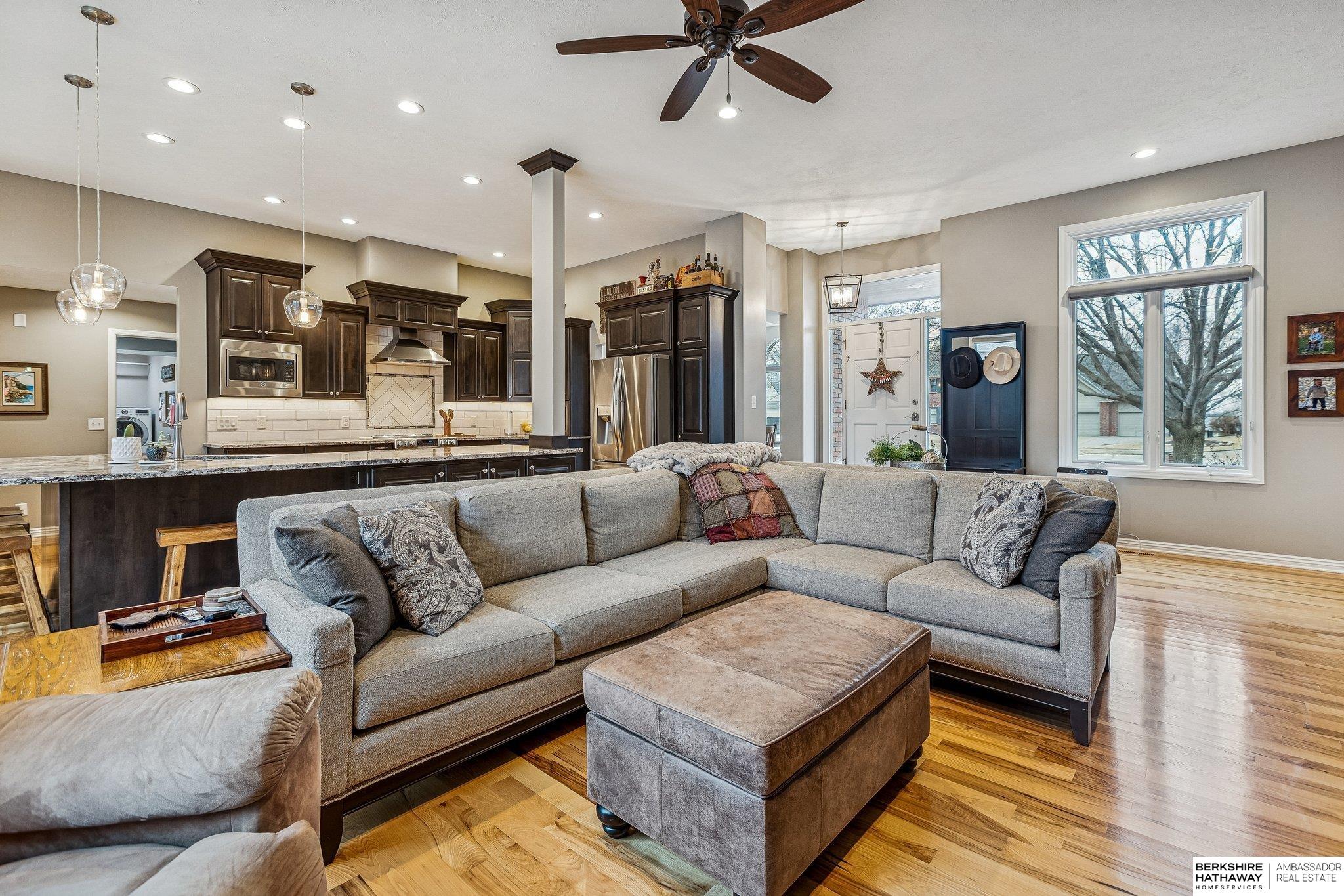 Meticulously maintained 3,700-square-foot finished walkout ranch offering the perfect blend of comfort and modern upgrades. The open-concept main floor features soaring ceilings and rich hardwood flooring throughout the primary living areas. The gourmet kitchen is a chef's dream, anchored by a massive granite island, custom dark cabinetry, stainless steel appliances, and a tiled backsplash. The sun-drenched living room is centered around a floor-to-ceiling stone fireplace, creating an inviting atmosphere for daily living. The primary suite provides a private retreat, highlighted by a luxuriously updated walk-in shower with designer tile work. The expansive finished walkout lower level is designed for entertaining, featuring a large recreation room and a custom wet bar with live-edge wood countertops and a beverage fridge. Lower Level also features an in-law suite with its own bathroom!