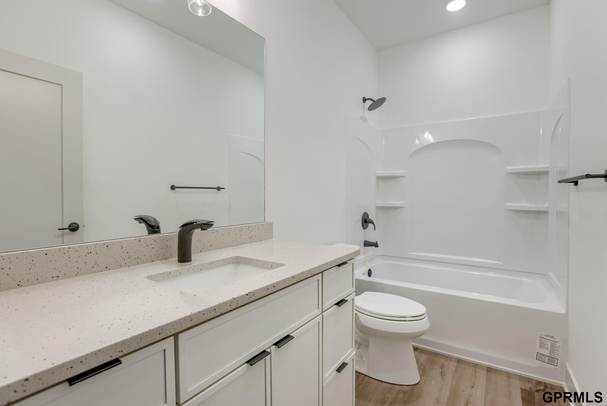 Welcome to the highly functional Jones floor plan. This gorgeous home features three bedrooms and two baths on the main floor. The open concept allows the homeowners to utilize every space within the main floor. The primary suite has double vanity sinks, a walk-in shower, and a walk-in closet. The lower-level features two bedrooms, a bathroom, a bar with room for a beverage cooler, and a large open area, with plenty of room for a living area and entertainment! Also includes oversized windows and upgraded cabinets. Full sod and sprinklers, high-efficiency HVAC, 100% Hardie siding, a one-year builder warranty, and much more!!!