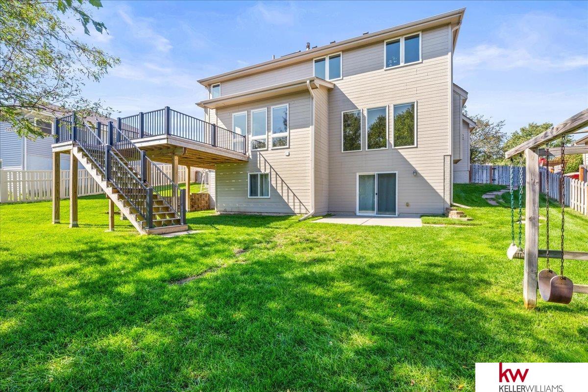 Now taking appointments in the lovely neighborhood of Copperfields, this beautifully maintained and updated 4-bed, 4 bath, 3 car, w/o basement 2-story is ready for its new owners. On the main floor, the office conveniently right inside the door, along with the open concept bright Great room with floor to ceiling windows, and FP, open to the wonderfully updated kitchen and dinette with many more windows, and the dining room. On the 2nd floor is where you can find all 4 bedrooms, including the Primary suite fully equipped with private sitting room, spacious W/I closet, bath with whirlpool, his & her vanities, and W/I tile shower. The walk out basement is fully finished, is perfect for another living space with wet bar, 3 qtr bath & hobby room, or whatever the buyer desires & plenty of storage space. The backyard is huge, fully fenced, mature trees, patio plus a large new deck. In Elkhorn public schools, close to local amenities, and the wonderful Copperfield's Park, just a block away!