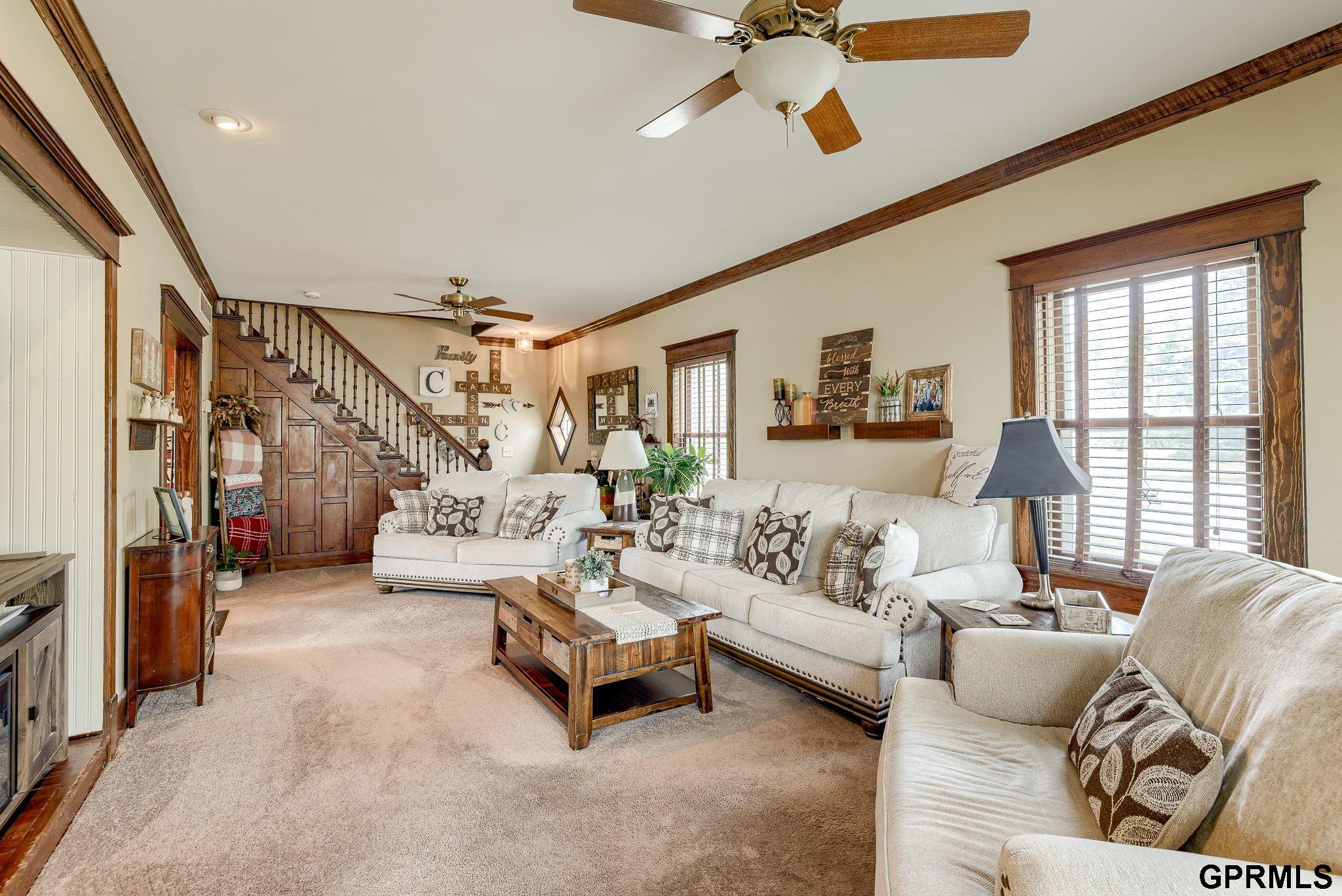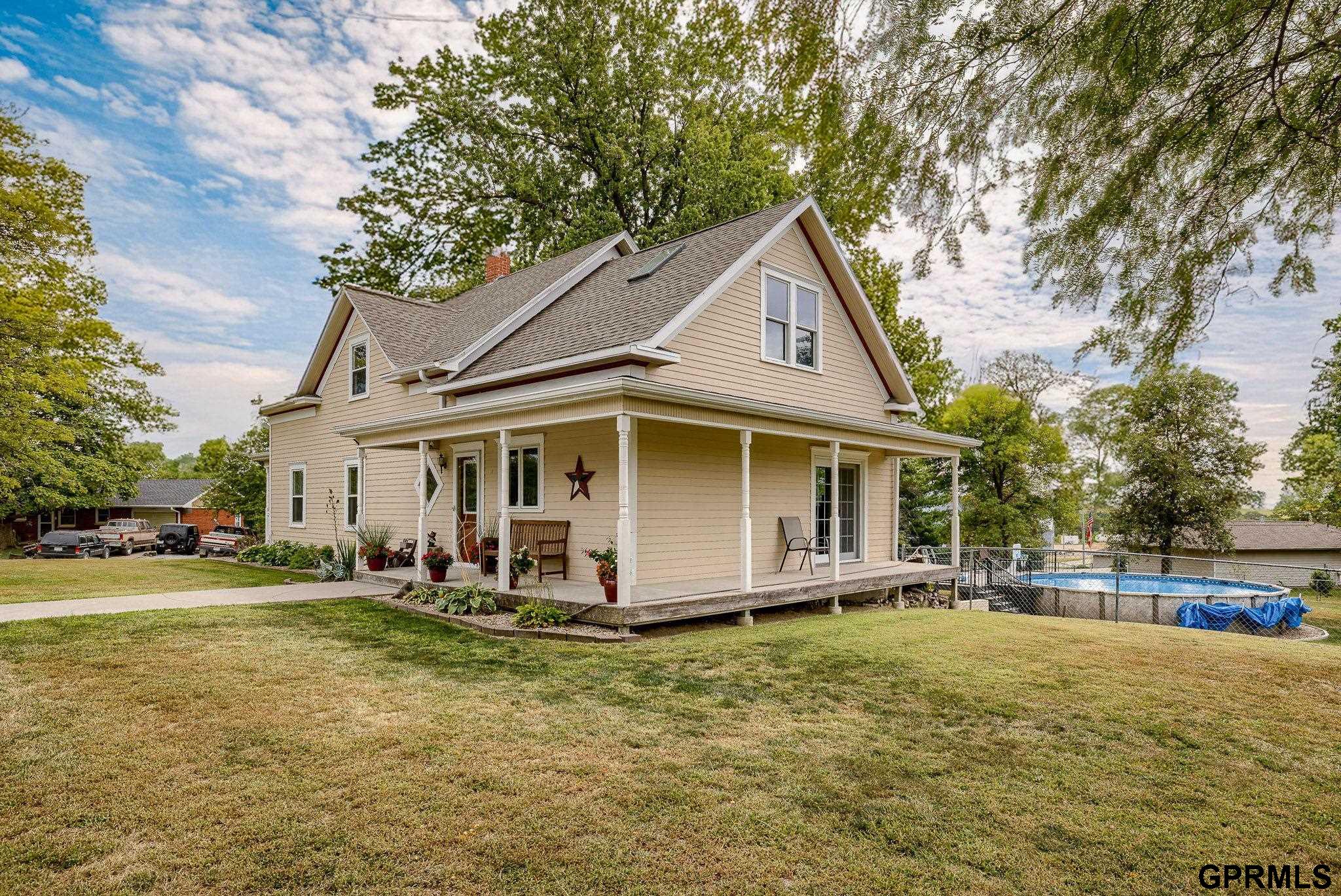 **Open House Sunday 2/22 12pm-1:30pm**Beautiful and rare acreage in the heart of Elmwood NE! Situated conveniently between Lincoln and Omaha, giving you that small town feel while only being a short 30 min drive from either large town. On the almost 1.5 acres of fenced in land you'll find a 27 foot pool with a deck (installed 2020), a basketball court and plenty of extra green space to utilize how you see fit. Brand new roof, and a spacious and meticulously maintained interior with 4 beds, 4 baths and tons of storage. Enjoy the charm and character of original woodwork throughout the spacious floor plan for all. Sellers to install new siding on garage and include Hustler 54" lawn mower.