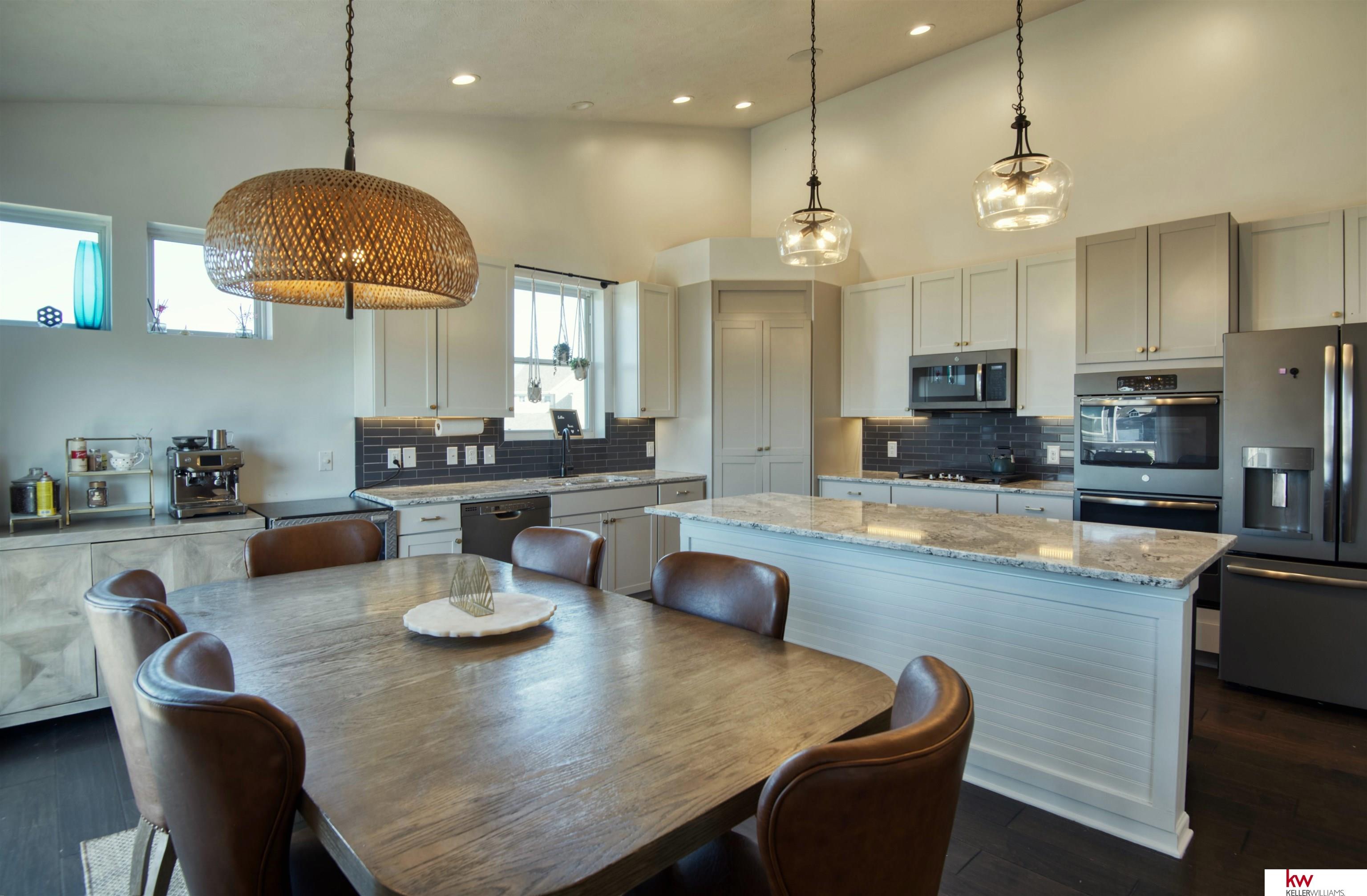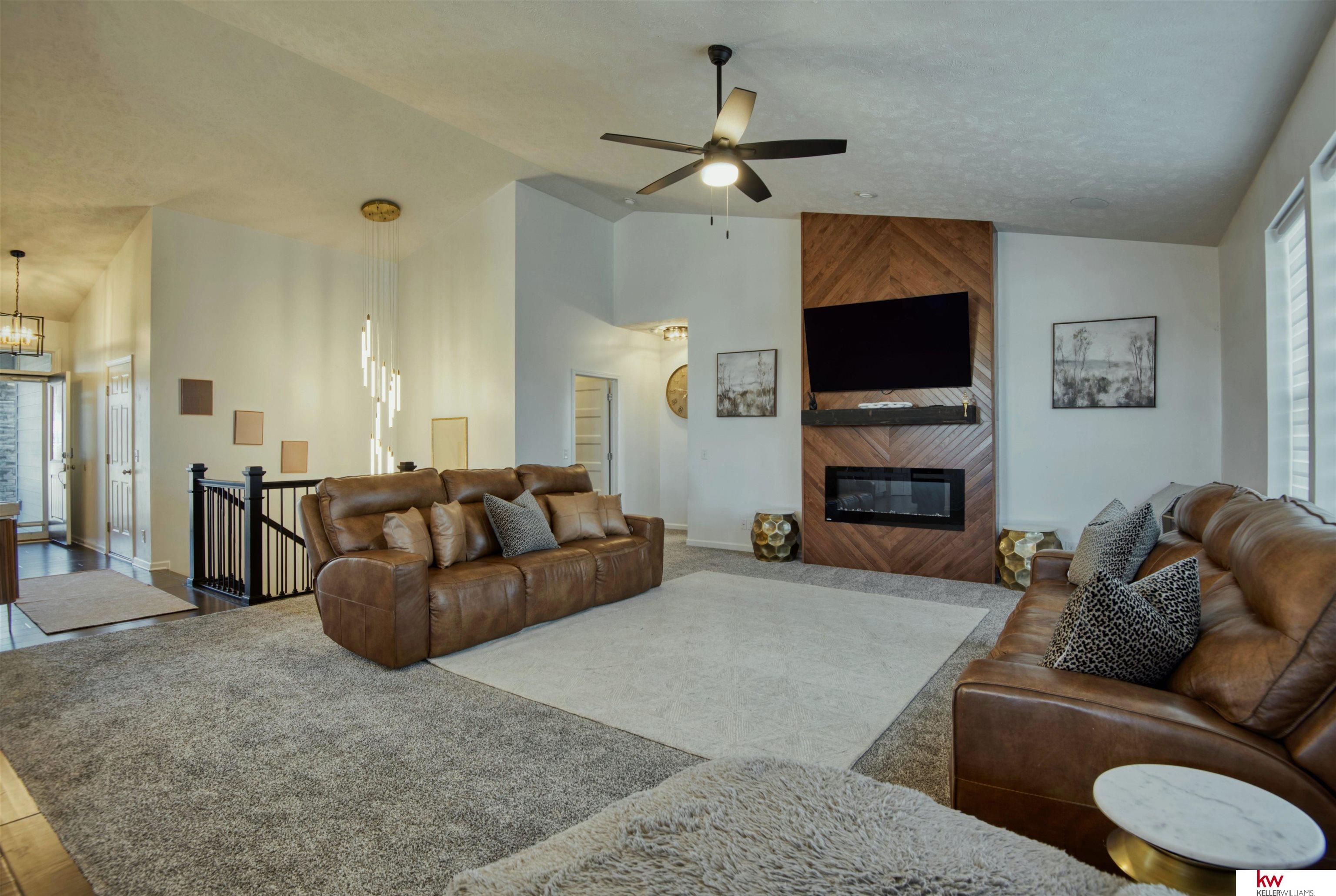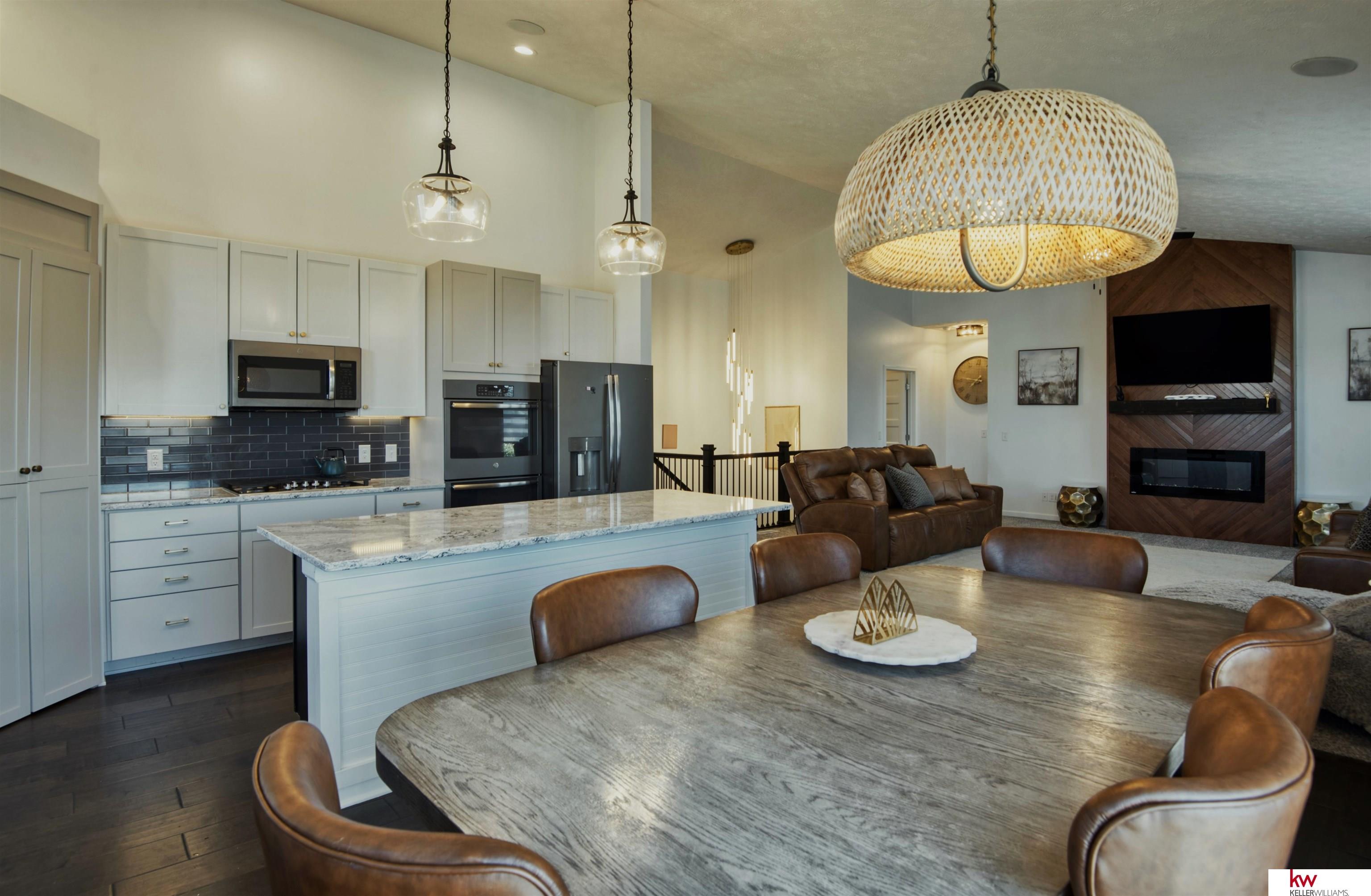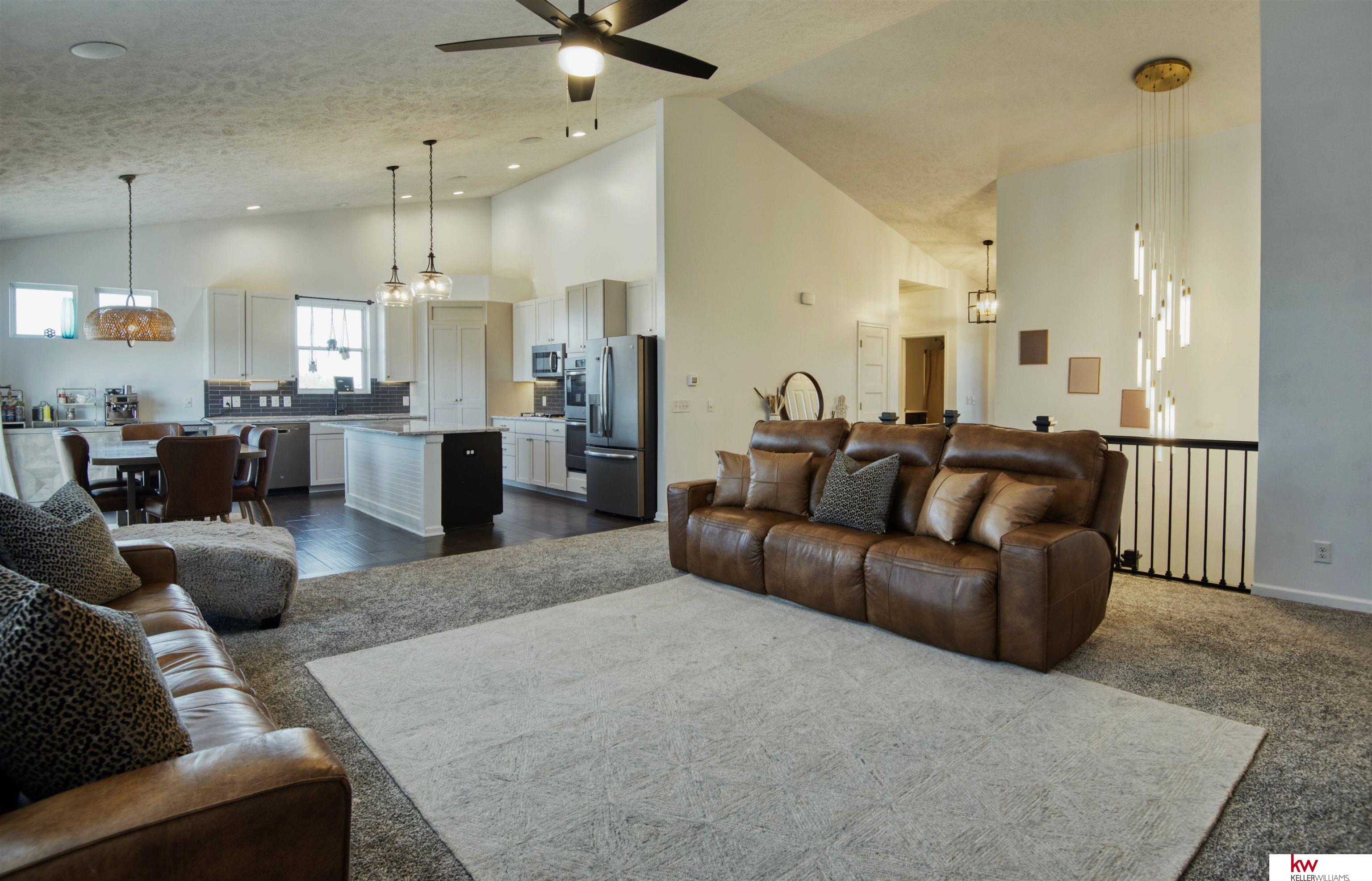 Grandview Ridge Estates - updated, private, and built for entertaining! A brand-new full privacy fence now wraps the backyard, while updated lighting brightens every space. The open main level showcases vaulted ceilings, a custom fireplace, and a cook’s kitchen with double ovens, pantry, and an oversized island, and main floor laundry room. The primary suite elevates daily living with a double-vanity, new flooring, and a custom walk-in closet. The walkout lower level truly lives like a second home, expansive rec room, full second kitchen, washer and dryer hook ups, three bedrooms, and two bathrooms, perfect for guests or long-term stays. Outside: landscaped yard, privacy fence, and an oversized 3-car garage. Moments to dining, shopping, parks, and Elkhorn schools, with quick Dodge access for an easy commute. Fresh updates + flexible space = this home seen in a whole new light.