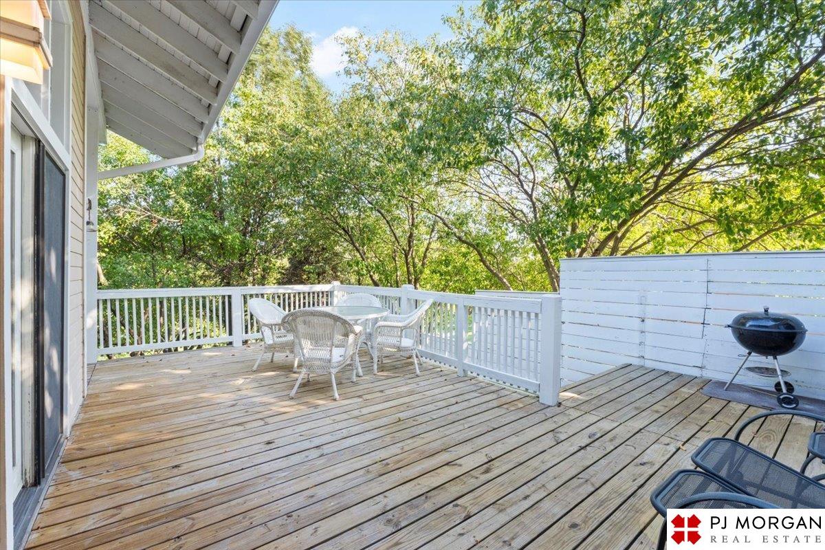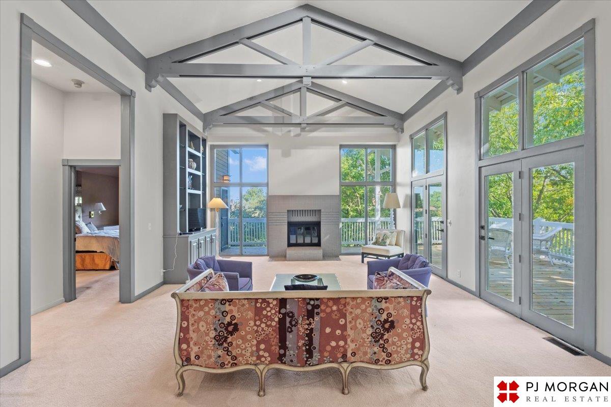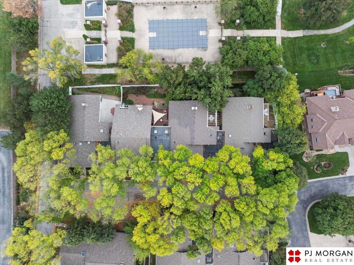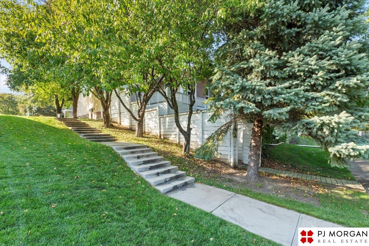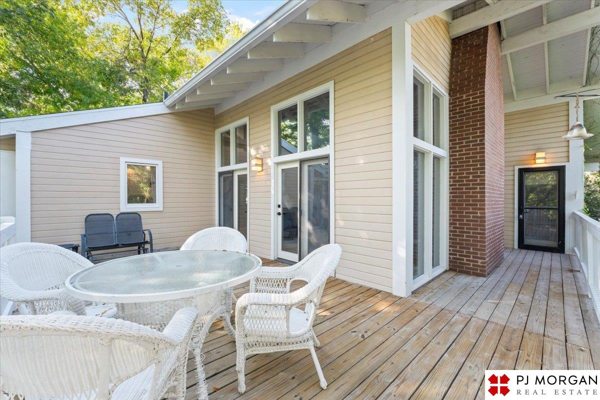 Looking for one-level living with a "wow" factor - and a pool? Welcome to this quiet, gated community in central Omaha. These craftsman-style townhomes (featured in Time Magazine as the "best design of 1985" by award-winning architects) focus on abundant natural light & charming outdoor spaces. Feel the sophistication & space w/ 17'+ ceilings, double doors to deck, cozy fireplace, & built-in bar. This rare corner unit offers 2 main-floor BR's, including a generous primary suite with dual closets primary bath. An elegant formal dining room flows seamlessly into the galley kitchen. The fully finished basement includes huge family room w/ walk-out patio doors, updated bath, 1 BD, & 1 non-conforming BD, plus storage. Outside, relax on your expansive, private deck shaded by mature trees, incredible views overlooking the pool & courtyard below. Enjoy maintenance-free living with low $180/m HOA covers lawn, snow, streets, & pool. Only 9 townhomes exist in this exclusive community, act fast!