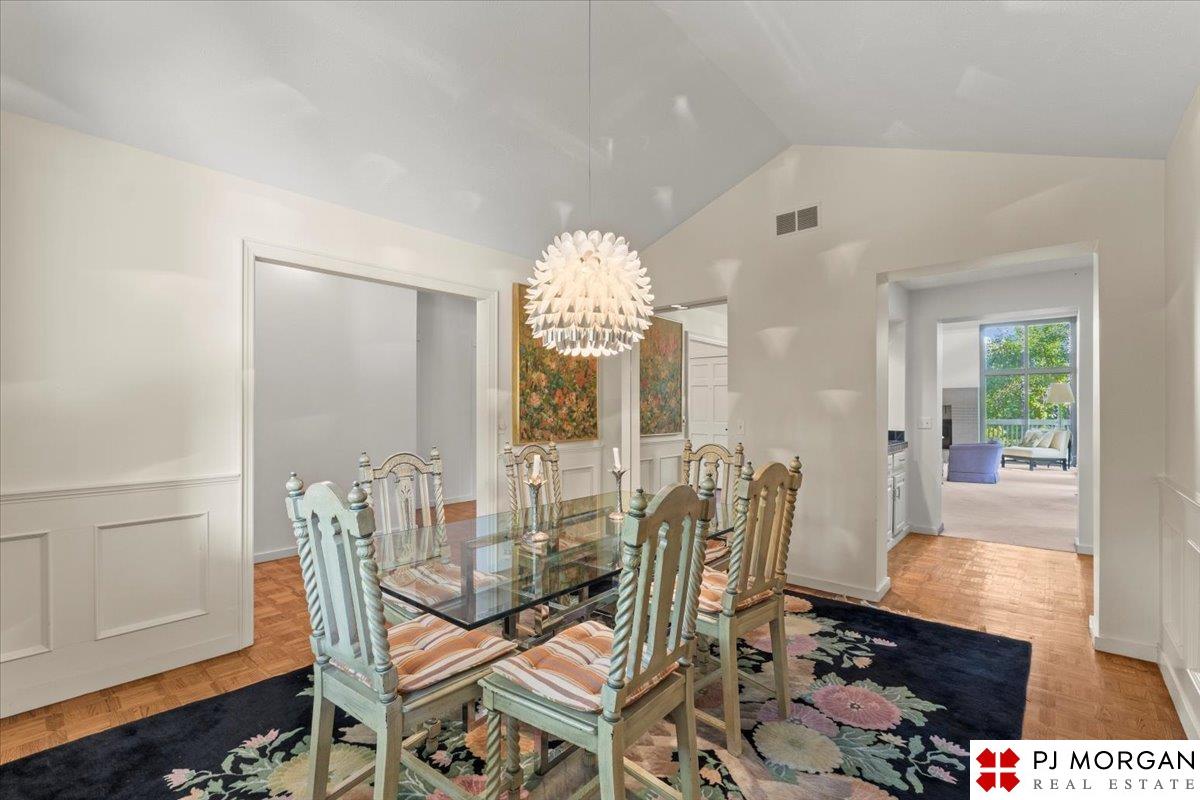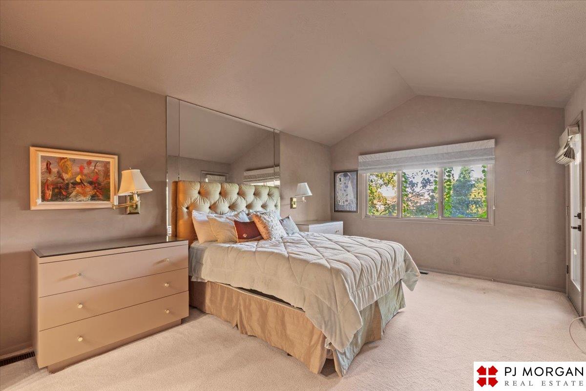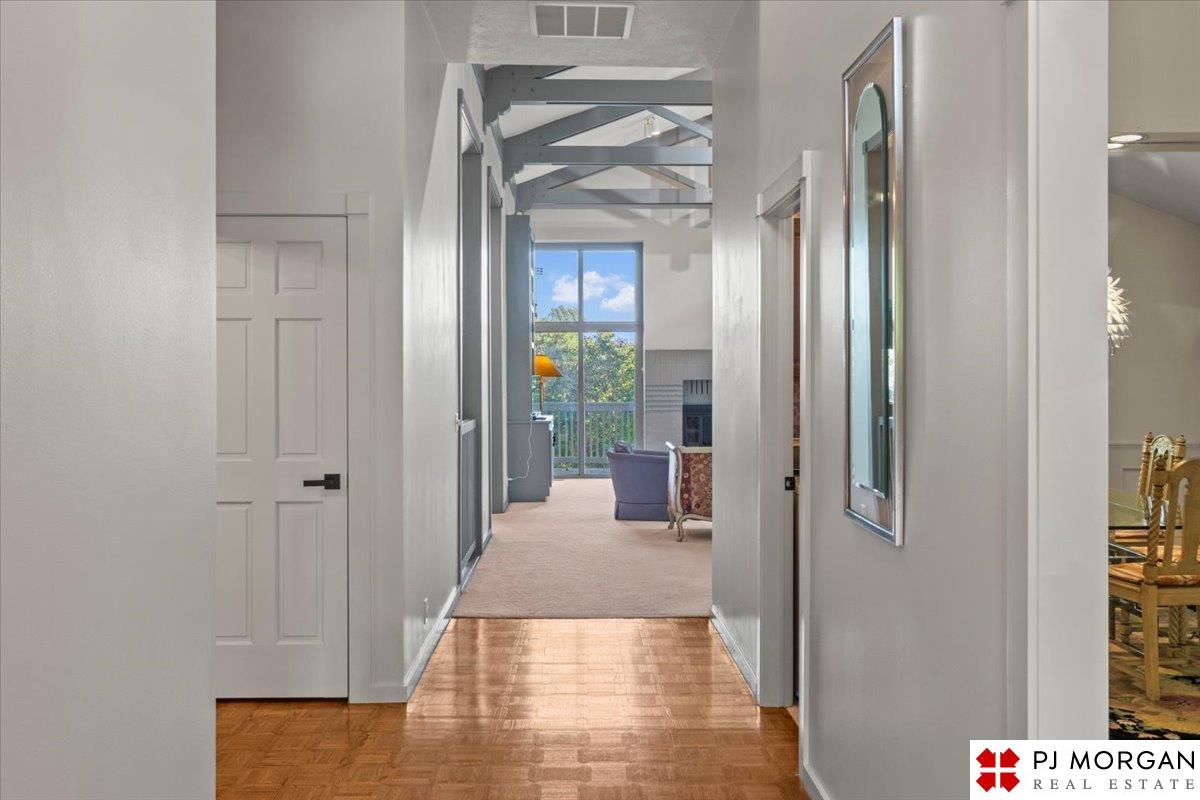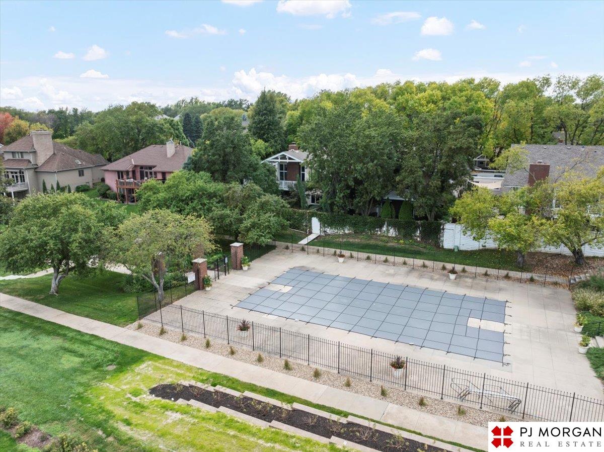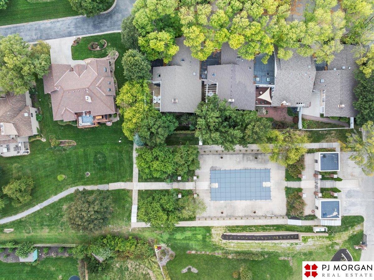 Looking for one-level living with a "wow" factor - and a pool? Welcome to this quiet, gated community in central Omaha. These craftsman-style townhomes (featured in Time Magazine as the "best design of 1985" by award-winning architects) focus on abundant natural light & charming outdoor spaces. Feel the sophistication & space w/ 17'+ ceilings, double doors to deck, cozy fireplace, & built-in bar. This rare corner unit offers 2 main-floor BR's, including a generous primary suite with dual closets primary bath. An elegant formal dining room flows seamlessly into the galley kitchen. The fully finished basement includes huge family room w/ walk-out patio doors, updated bath, 1 BD, & 1 non-conforming BD, plus storage. Outside, relax on your expansive, private deck shaded by mature trees, incredible views overlooking the pool & courtyard below. Enjoy maintenance-free living with low $180/m HOA covers lawn, snow, streets, & pool. Only 9 townhomes exist in this exclusive community, act fast!