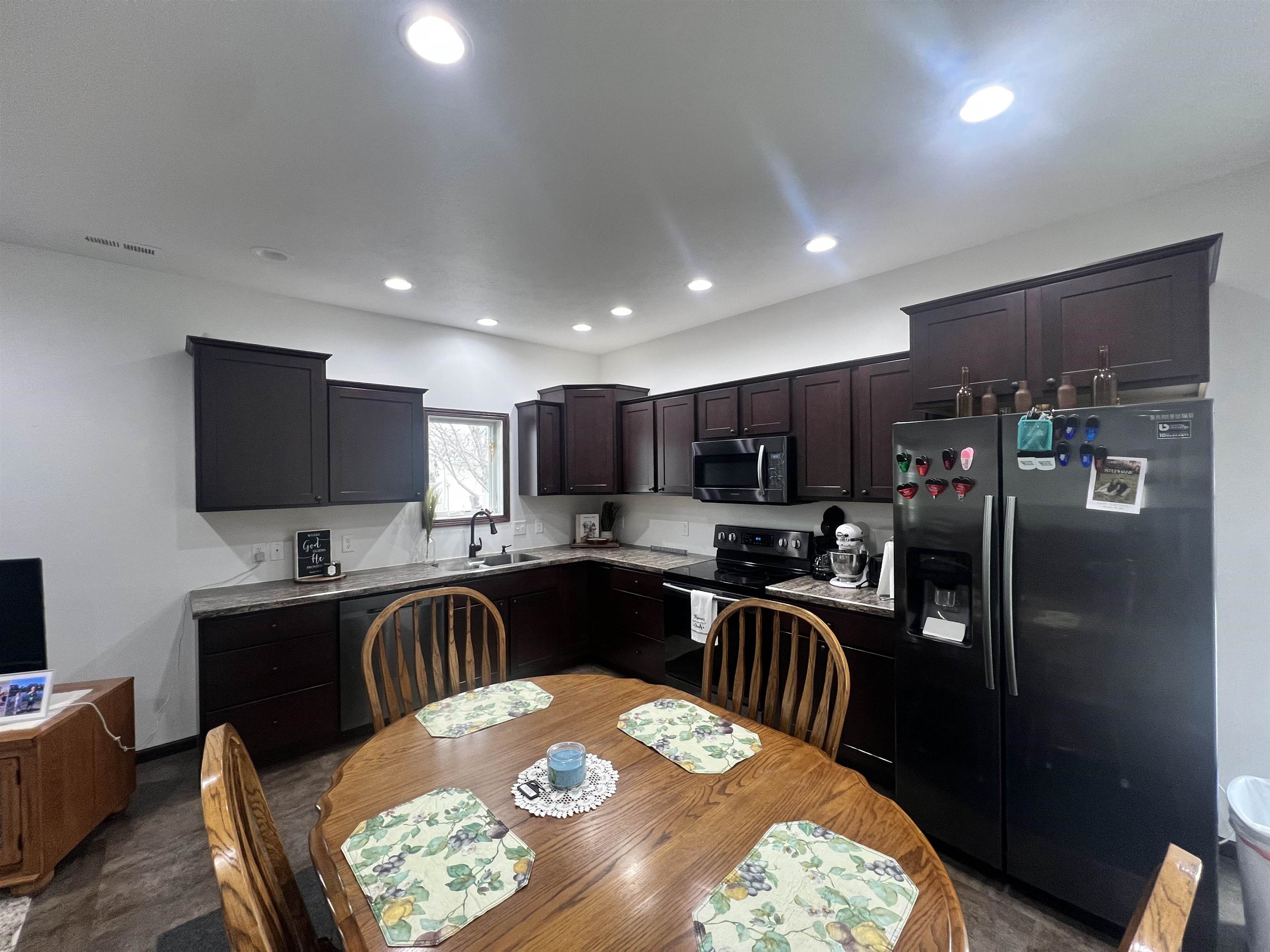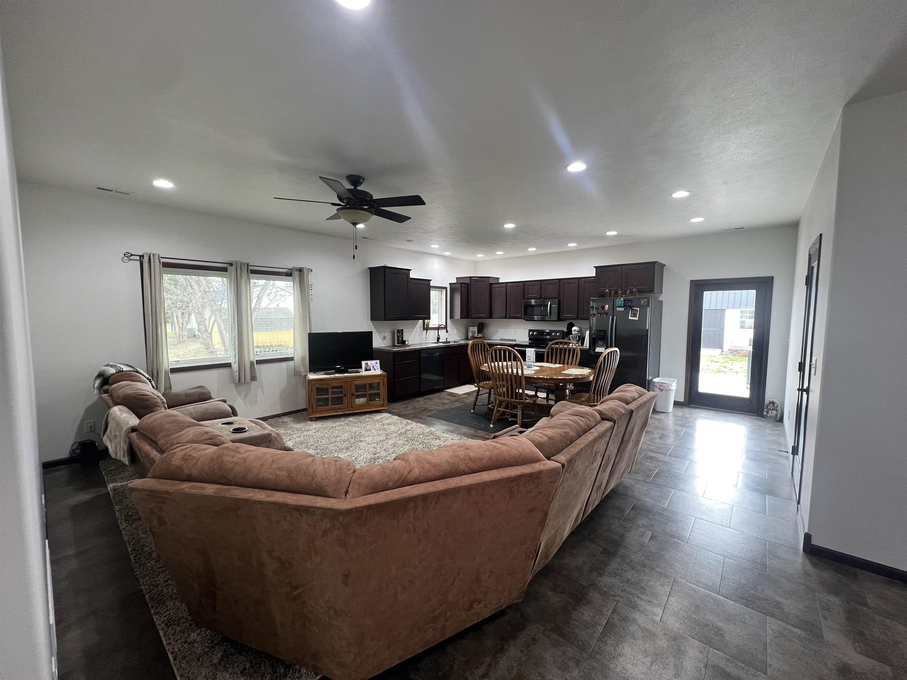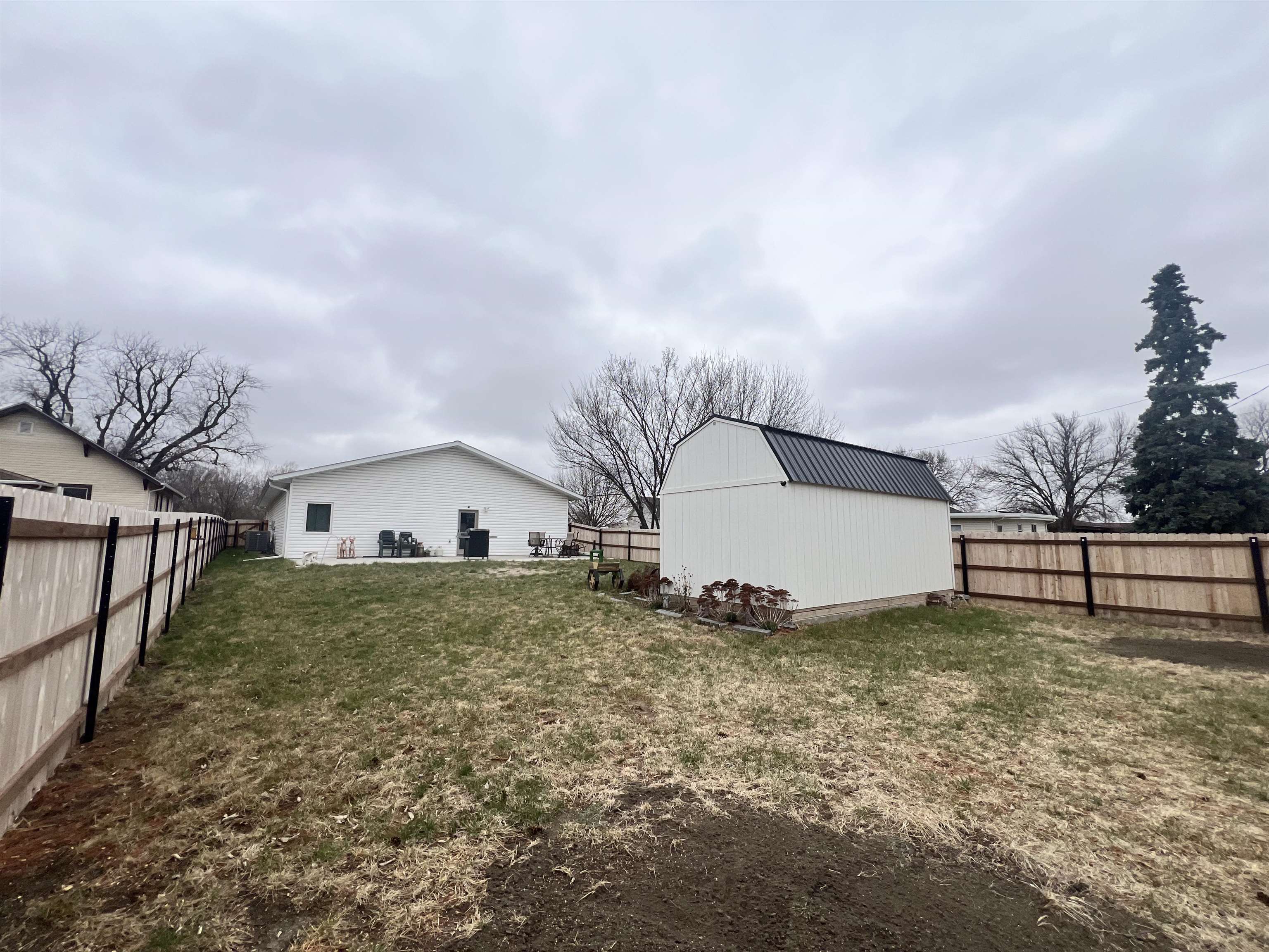 Are you looking for a zero entry ranch style single family home with nine foot ceilings and an open floor plan? Step into this 2020-built home featuring 3 bedrooms, 2 bathrooms, and a bright, open layout designed for comfort and connection. The kitchen and dining areas open effortlessly into the main space, making it easy to host or relax. You will appreciate the 4'8" hallway, the 36" doors, the soft close doors and drawers in the cherry stained cabinets throughout the home. The walk in pantry offers generous storage, and the hall closet is extra deep for additional storage. The walk in onyx shower in the primary bathroom is convenient. Outside, you’ll love the fully fenced yard with established landscaping, a backyard patio, and storage shed. The covered front patio is the perfect place to enjoy your morning coffee. Complete with a 2-car garage and no basement, this home offers simple, one-level convenience. Come check out this rare opportunity today!