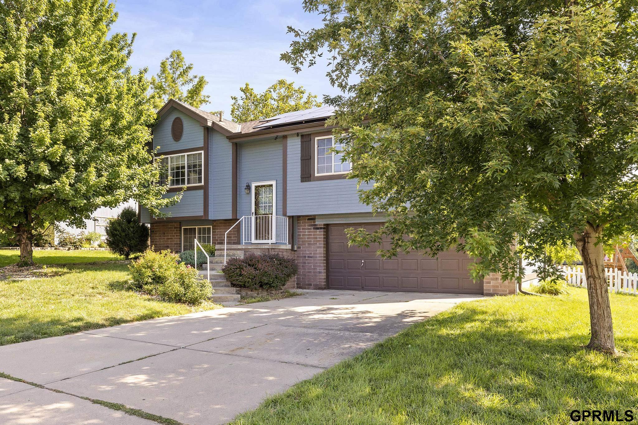 Contract Pending On market for back up offers. Spacious Papillion Home featuring renovated kitchen with beautiful granite countertops, lots of cabinets & pantry area with easy roll out drawers (check out the kick drawer below pantry & pan cabinet above fridge for bonus storage!)Matching Granite breakfast bar plus room for kitchen table. Open, airy floor plan-Living room boasts Cathedral Ceilings, LVT, gas fireplace & sliders out to deck. Primary Bdrm has step in closet & 3/4 bath. HUGE family room in walk out lower level. You'll save big on utility costs with the newly installed Everlight Solar Panels. Seller has paid the expense of installation, you can just reap the benefits! All the high ticket items have been updated with newer roof, gutters, HVAC & water heater. Exterior recently painted & added new shutters & gutter guards. Extra Large, fenced backyard- playset will remain. 2 car garage w/workbench & built in cabinets. AMA Some photos virtually staged to appreciate size and poten