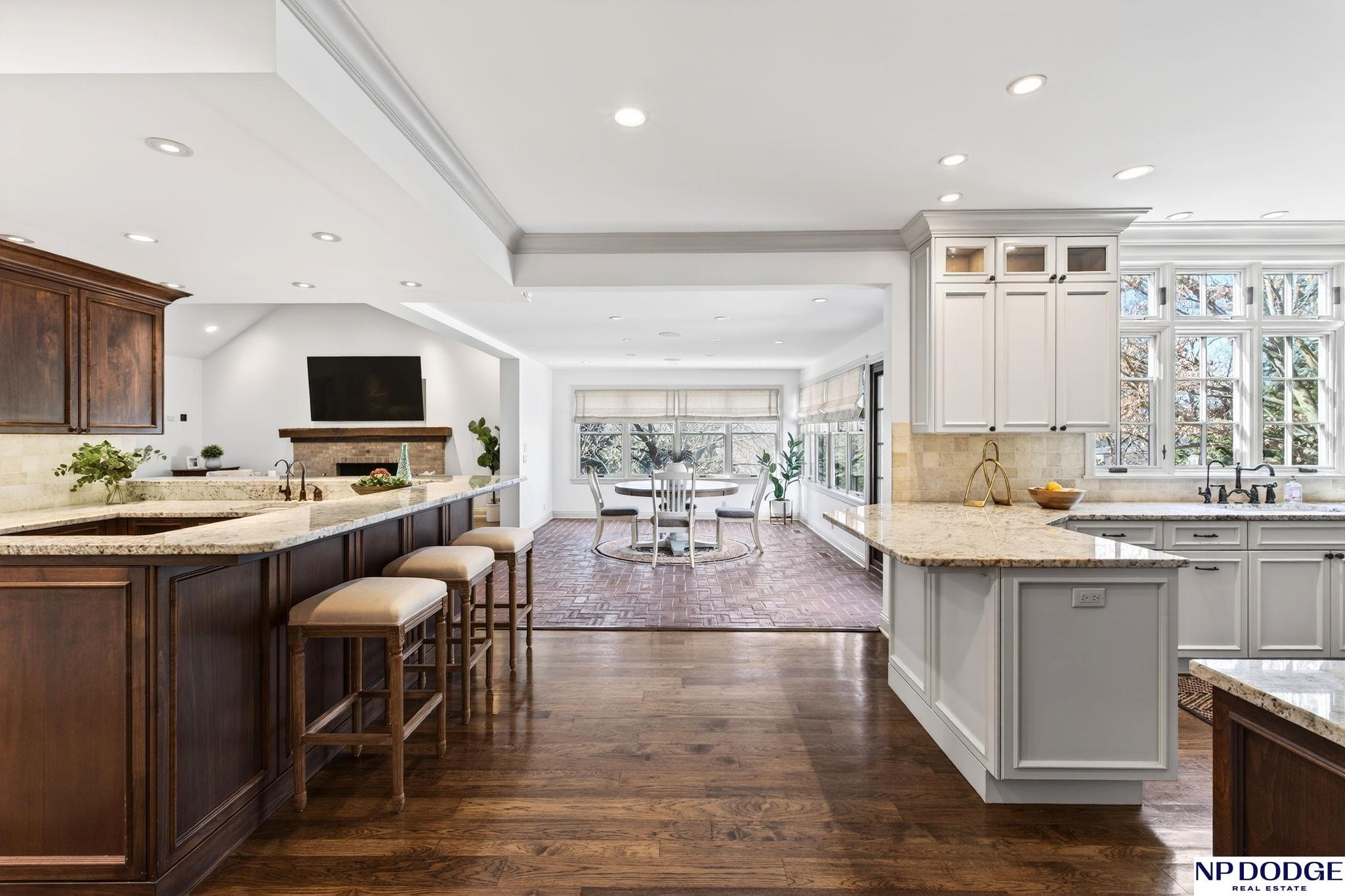 Stunning exclusive Fairacres home designed for both everyday comfort and exceptional entertaining. The open-concept chef’s kitchen flows seamlessly into the inviting family room, complete with a cozy fireplace, adjacent bar area, and second floor sun porch—perfect for gathering year-round. The main floor also features a formal dining room, private office, and convenient laundry. Upstairs, you’ll find five spacious bedrooms, each with its own bathroom access. The luxurious primary suite offers a warm fireplace, spa-inspired bath with heated floors, and an expansive walk-in closet. The walk-out lower level is built for fun, featuring a second kitchen and generous recreation space ideal for hosting and relaxing. Outside, a covered deck overlooks the private, beautifully landscaped backyard, enclosed by an elegant iron fence. AMA