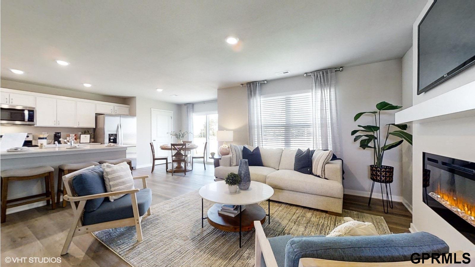 Welcome to the Sydney, a two-story townhome in Sunset Meadows Townhomes - featuring 3 bedrooms, 2.5 bathrooms, and 1,511 sq. ft. of comfortable living space with appliances included. The inviting foyer leads to an open-concept main level where the kitchen, dining, and great room seamlessly connect—complete with a cozy electric fireplace. The kitchen is a showstopper with white cabinetry, stainless steel appliances, and a spacious island ideal for gatherings. Upstairs, all bedrooms are thoughtfully located for privacy. The primary suite offers a large walk-in closet and en-suite bath with dual vanities and a walk-in shower. Two additional bedrooms, a full bath, and an upstairs laundry area add convenience for any lifestyle. All D.R. Horton homes include smart home features. Visit today and see why the Sydney is built for the way you live! Ask about builder incentives with preferred lender. Photos similar to.