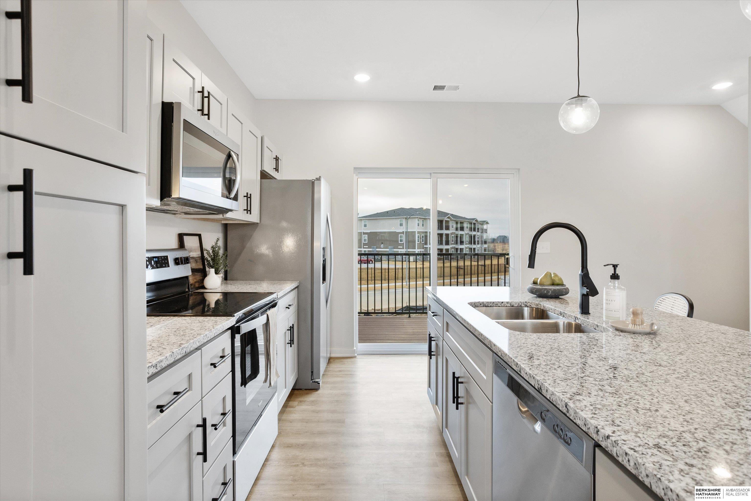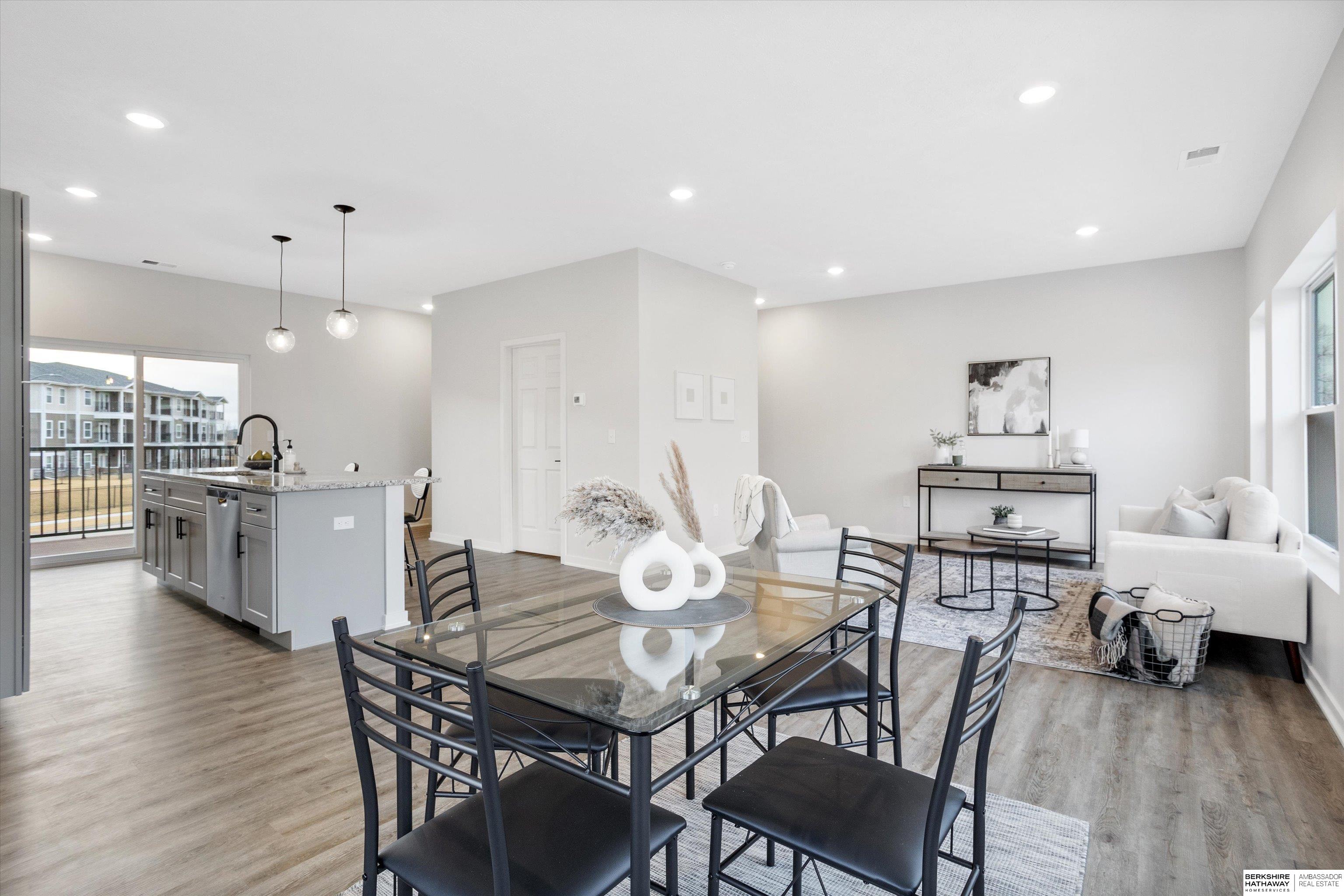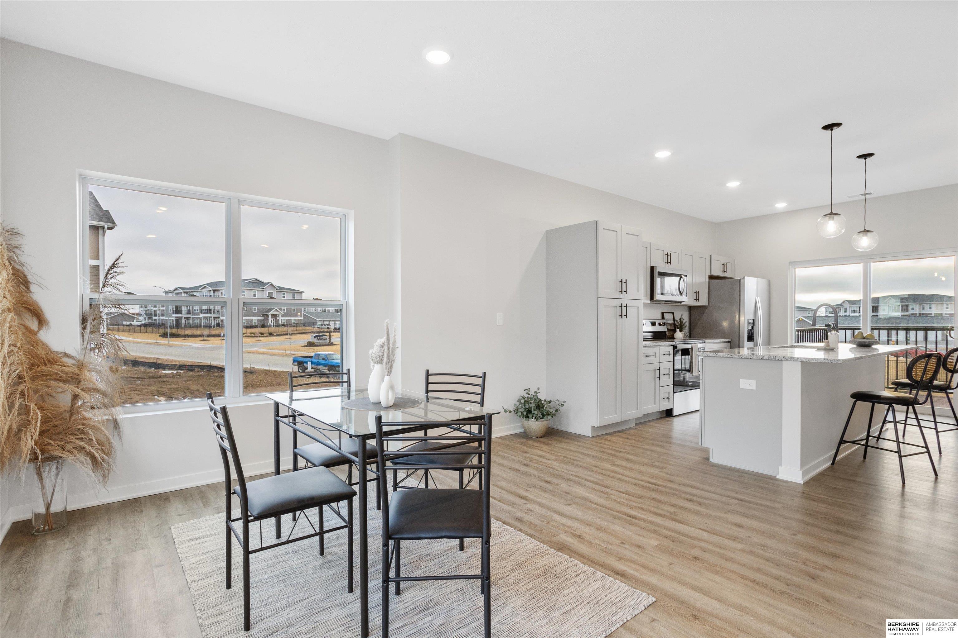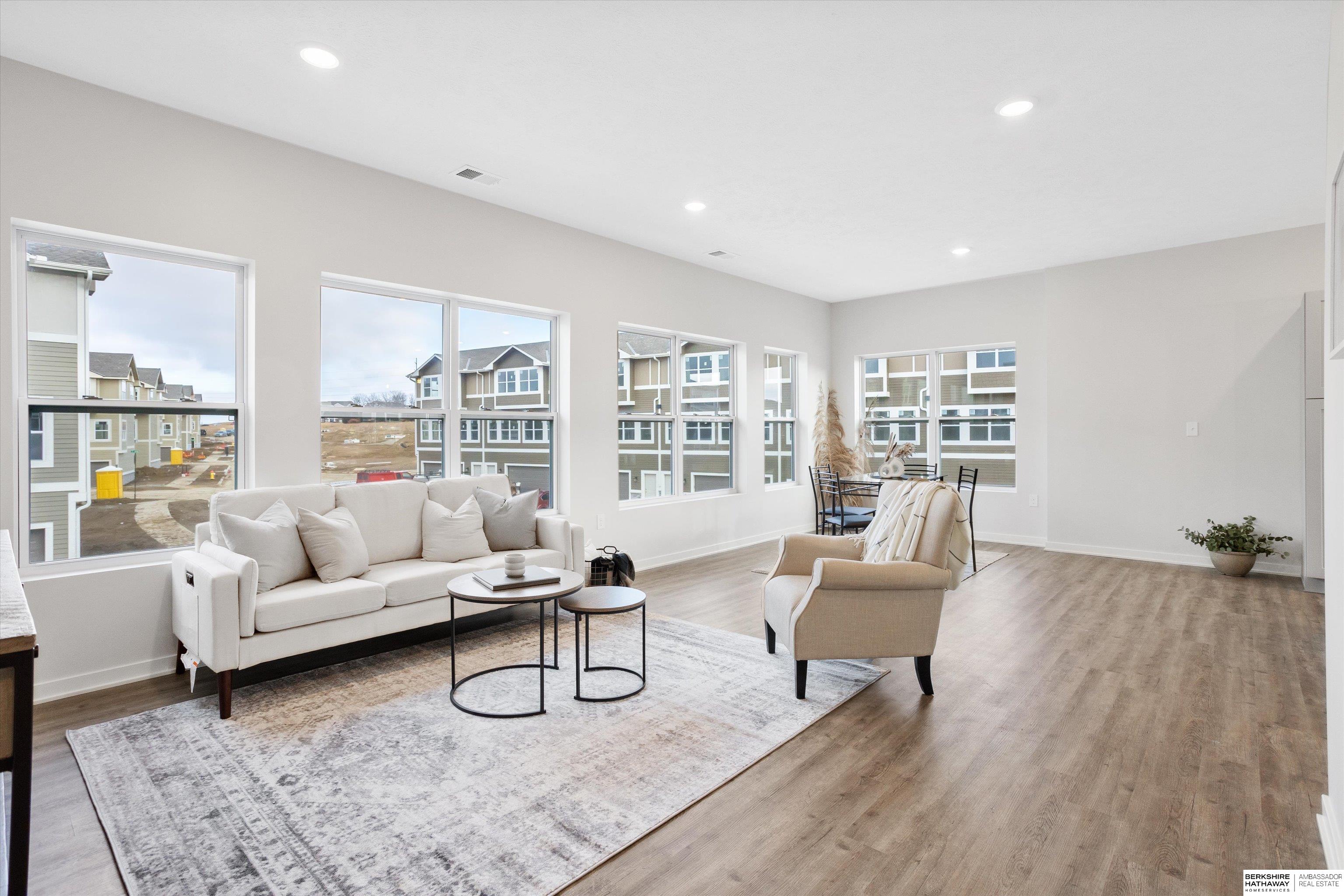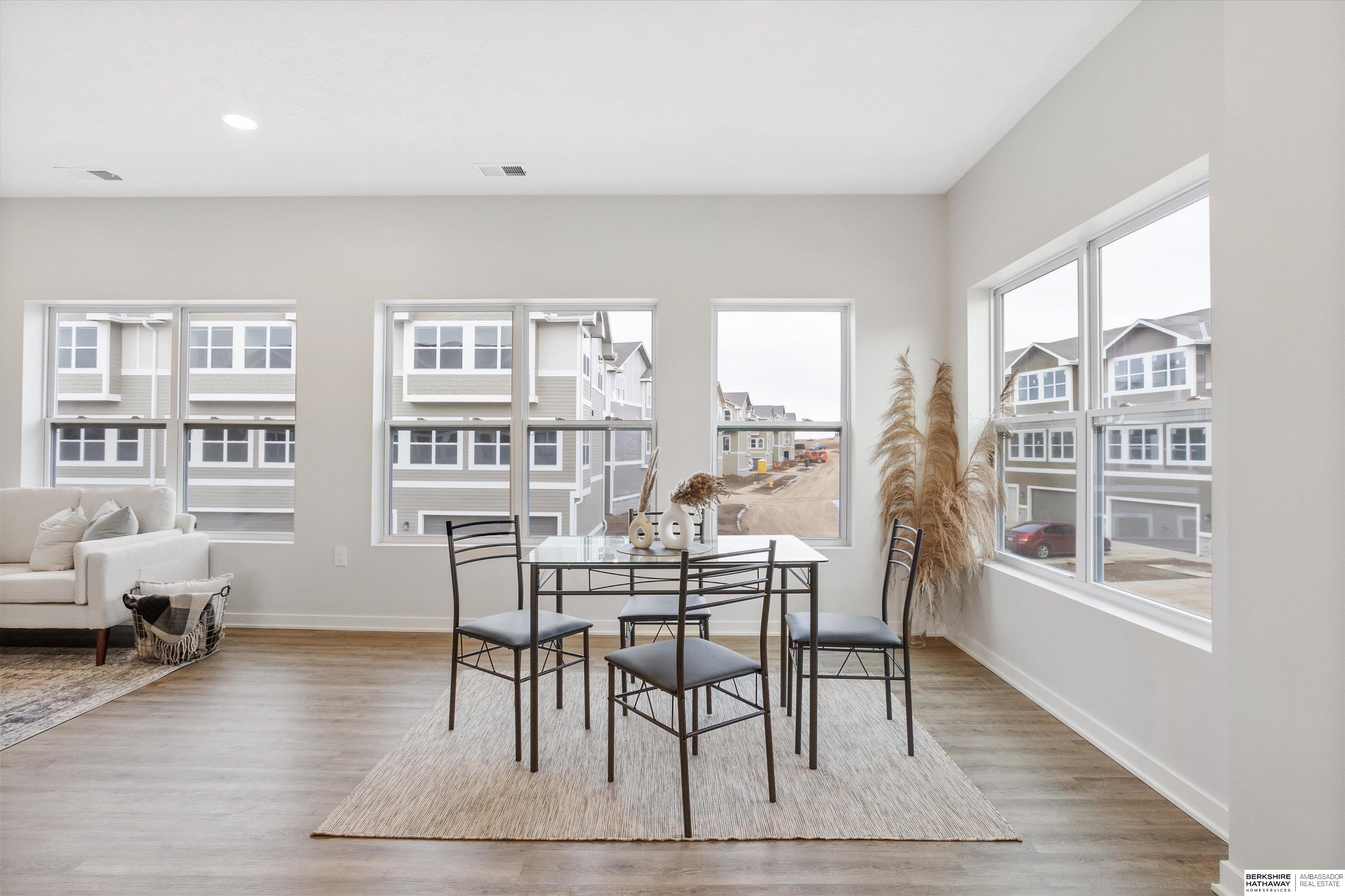 Yes, you read that right. This move-in ready model home at The Rows at Coventry comes with a $10,000 builder incentive that can be used toward your closing costs. This end unit has one of the best views in the community and features a bright, open layout with 3 bedrooms, 3 bathrooms, and a 2-car garage. Located near 207th and Q Street, it offers luxury vinyl plank flooring, granite countertops, stainless steel appliances, and a large island that is perfect for entertaining. You will also find soft-close cabinets, included window coverings ($1,000 value), and an upgraded patio ($1,500 value). The primary suite has a walk-in closet and private bath. Built with James Hardie siding, Trex decking, and professional landscaping, and includes a 1-year builder warranty. Walk to nearby dining, shops, and entertainment. Phase 2 is already underway and will be ready this spring.