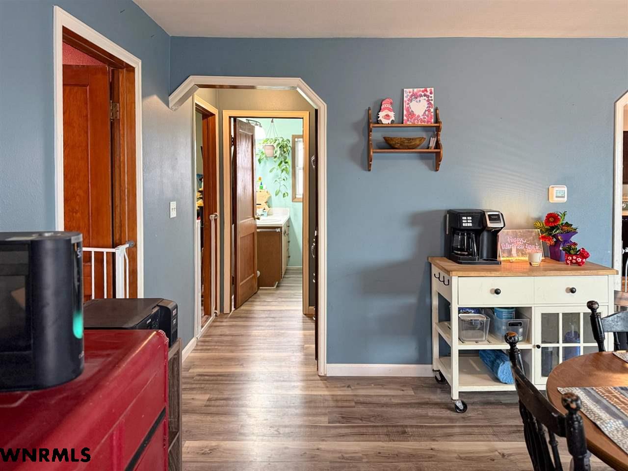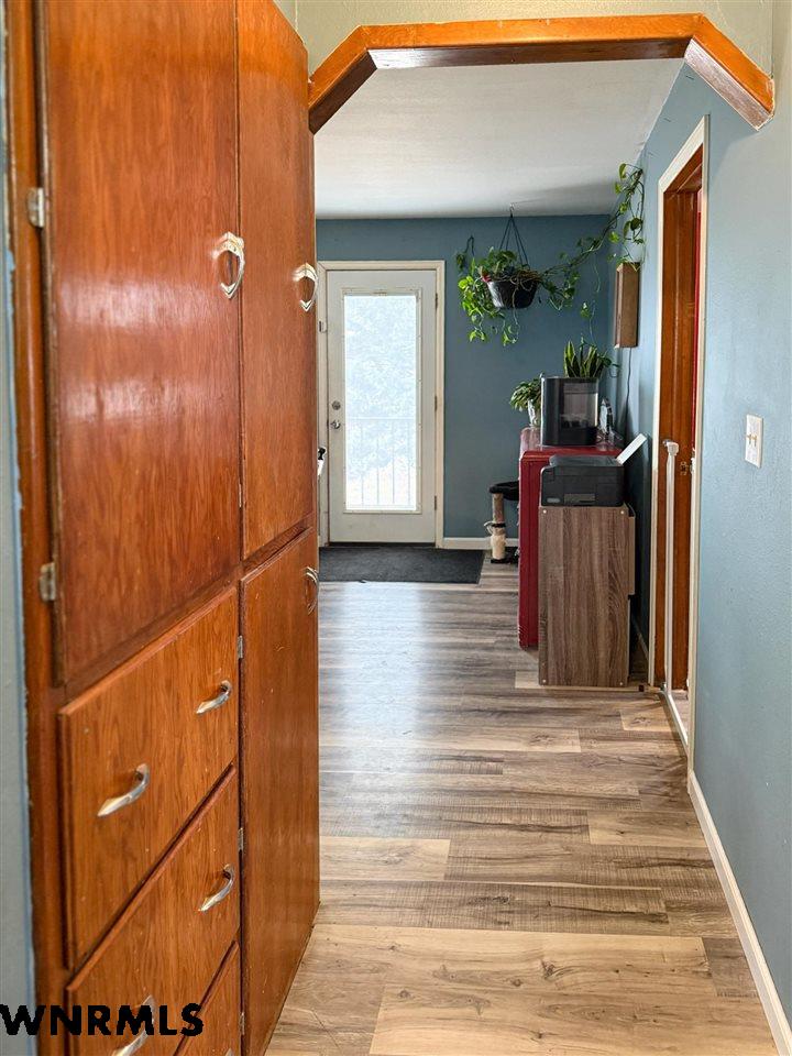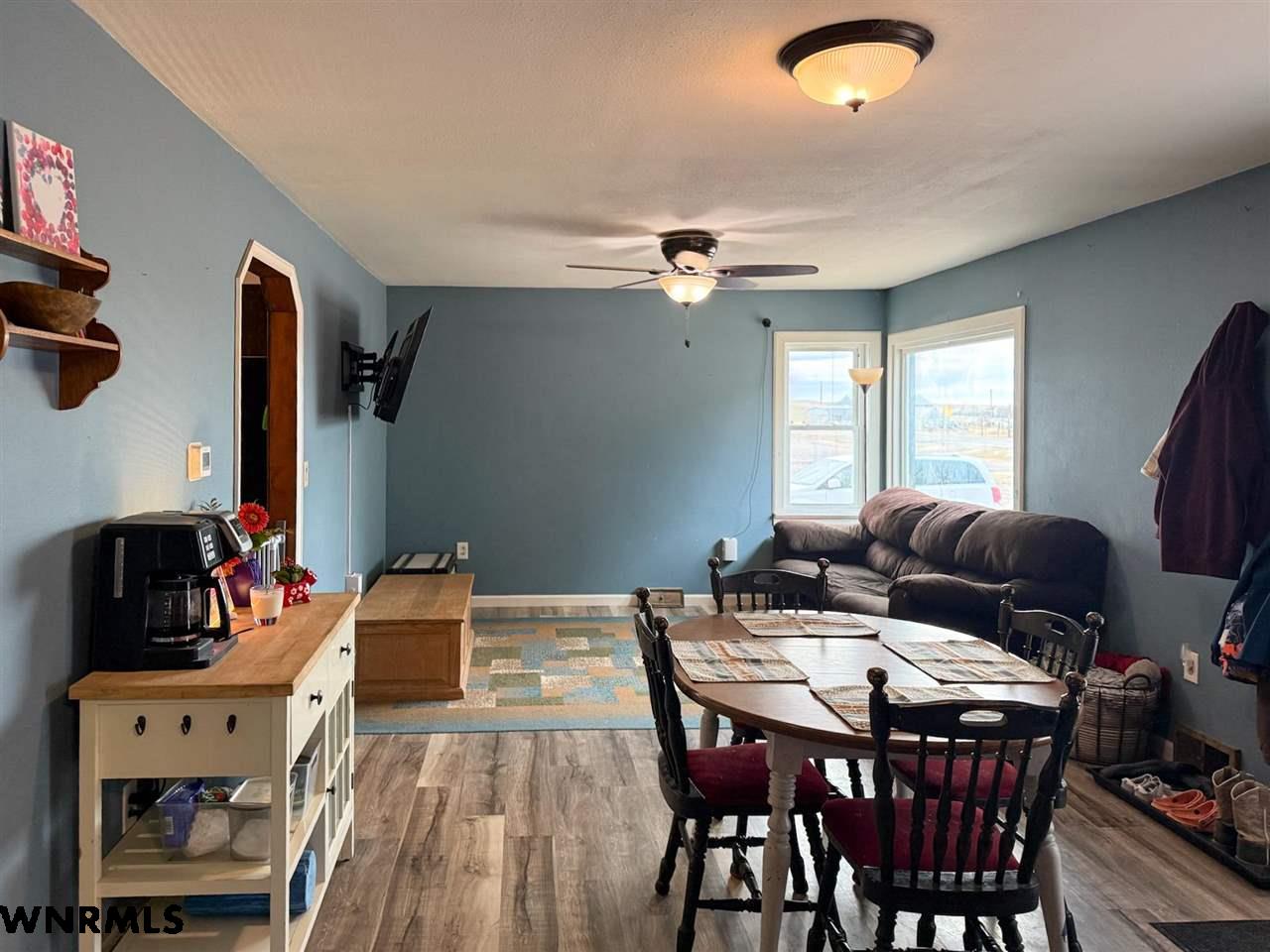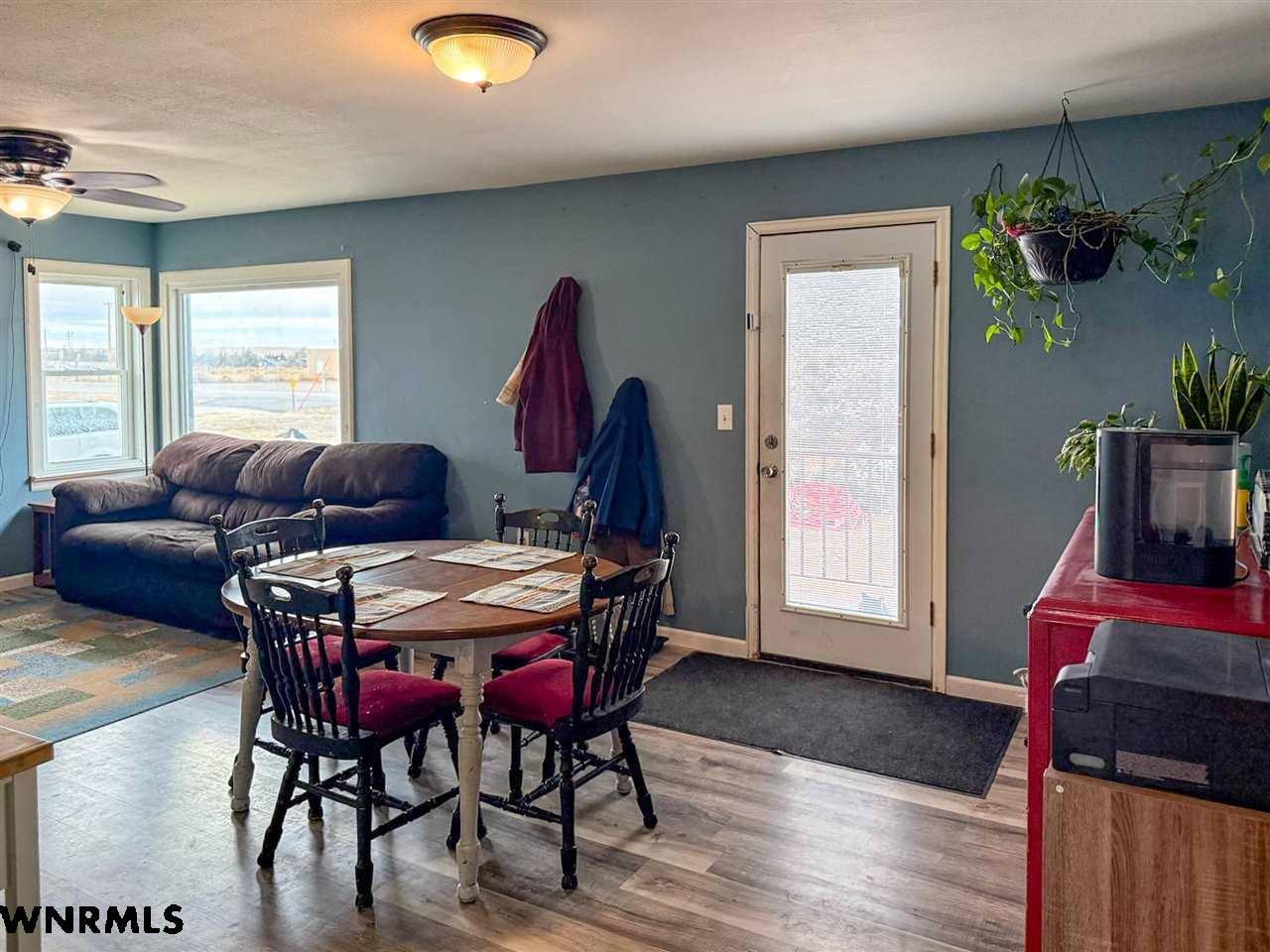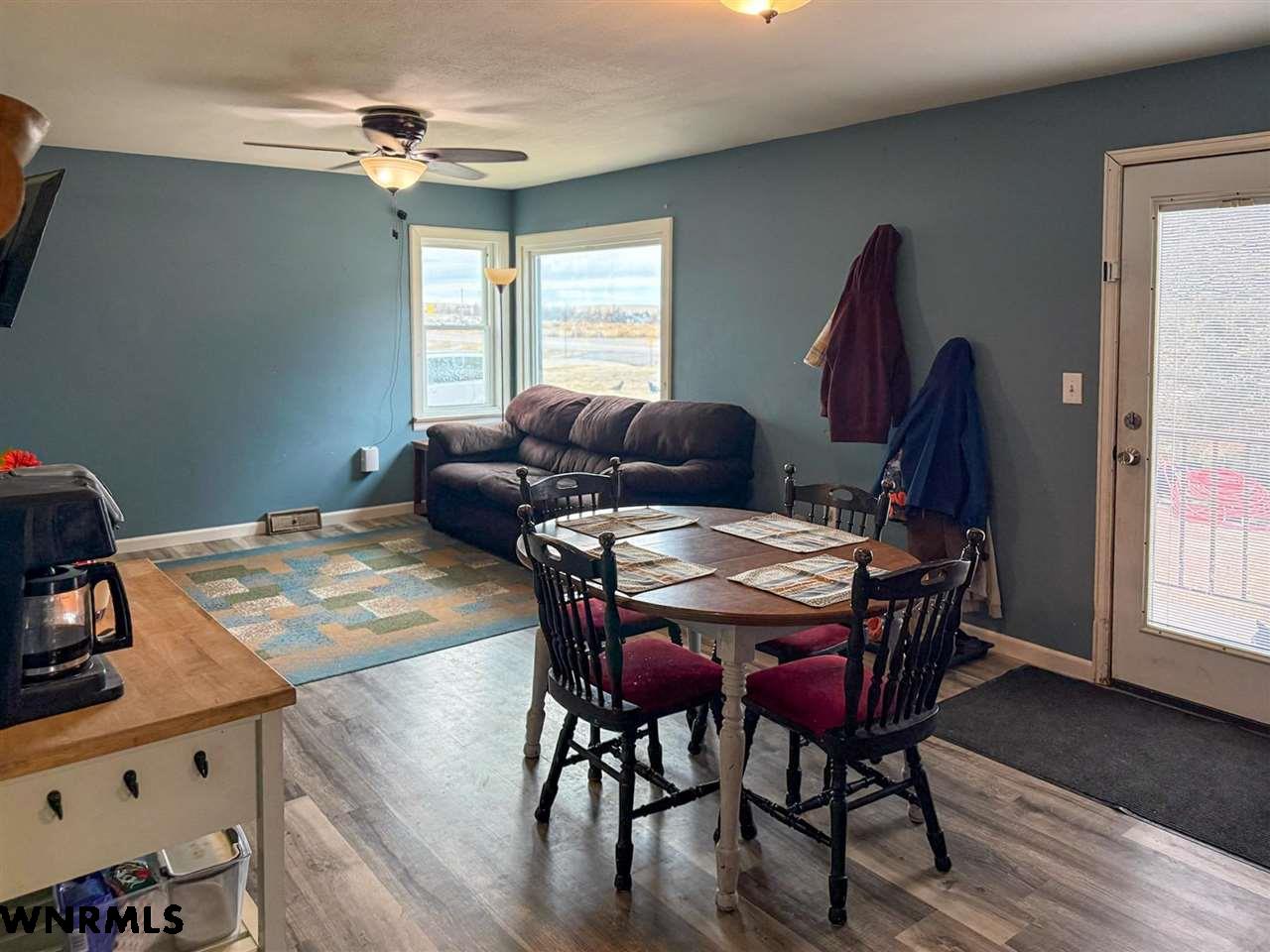 Adorable raised ranch home on just over an acre in town! This 4 bedroom (1 non-conforming) 1 bath home welcomes you into a cozy living room/dining room combo with great natural light. Right off the dining area sits two nice sized bedrooms, fantastic built-in storage in the hallway, and a full bath. Newer vinyl flooring stretches through the entire main floor. Past the living room sits a spacious kitchen with plenty of cabinet and counter space, plus a nice pantry tucked into the corner. The laundry room is conveniently located right off the kitchen and provides access to the backyard or to the basement. The basement is partially finished and features tall ceilings, lots of storage space that could be converted into living space easily, one bedroom with an egress window, and the last bedroom that is non-conforming. New siding and roof round out the house. Outside you will find a fenced backyard, fenced area for goats and a garden, chicken coop area, and a 576 sq ft shop. Come see all that this property has to offer in person today!