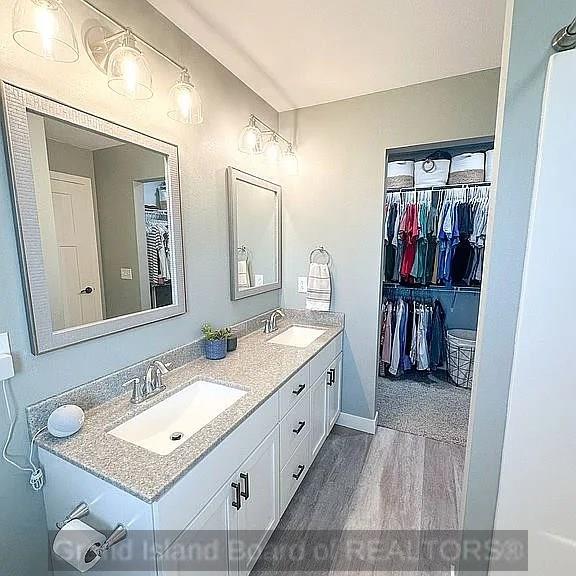 Welcome to this stunning, one-owner home, built in 2021, located in the heart of Giltner. Featuring 4 spacious bedrooms and 3 bathrooms, this home combines modern style with small-town charm. Step inside to find gorgeous LVP flooring throughout the main level, vaulted ceilings, and an open-concept layout connecting the living room, dining area, and kitchen. The bright stylish kitchen boasts granite countertops, a double oven, and beautiful cabinetry. The large primary suite features a walk-in closet and a luxurious ensuite bathroom. The home is also equipped with a reverse osmosis system for clean, fresh water. The fully finished basement includes two additional bedrooms, a bathroom, ample storage, and a built-in projector and screen-perfect for movie night or game day gatherings. Outside, have peace of mind with durable Hardie board siding, underground sprinklers, and the convenience of an underground dog fence. This home offers both comfort and an ideal location. Make it yours today!