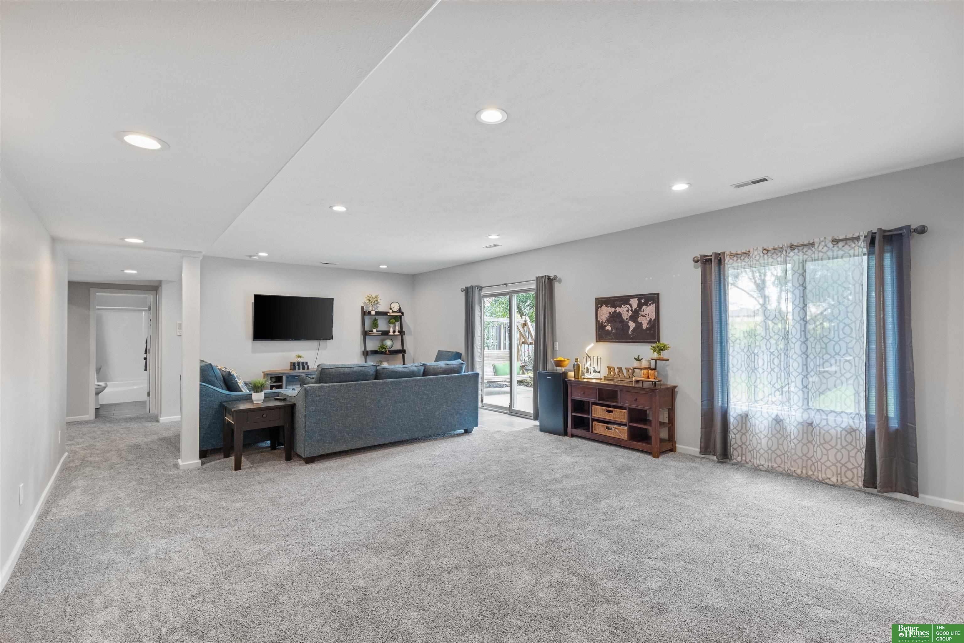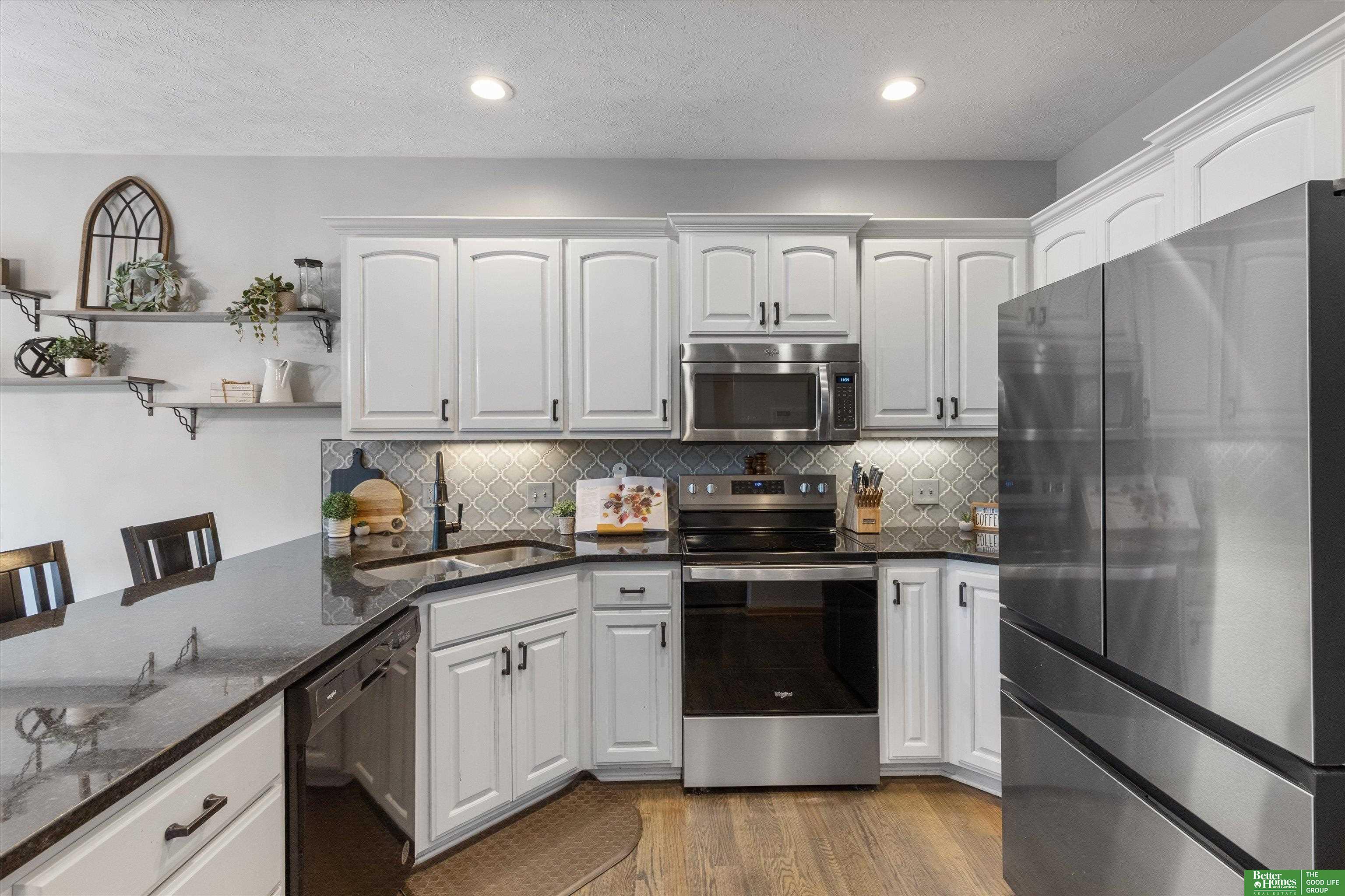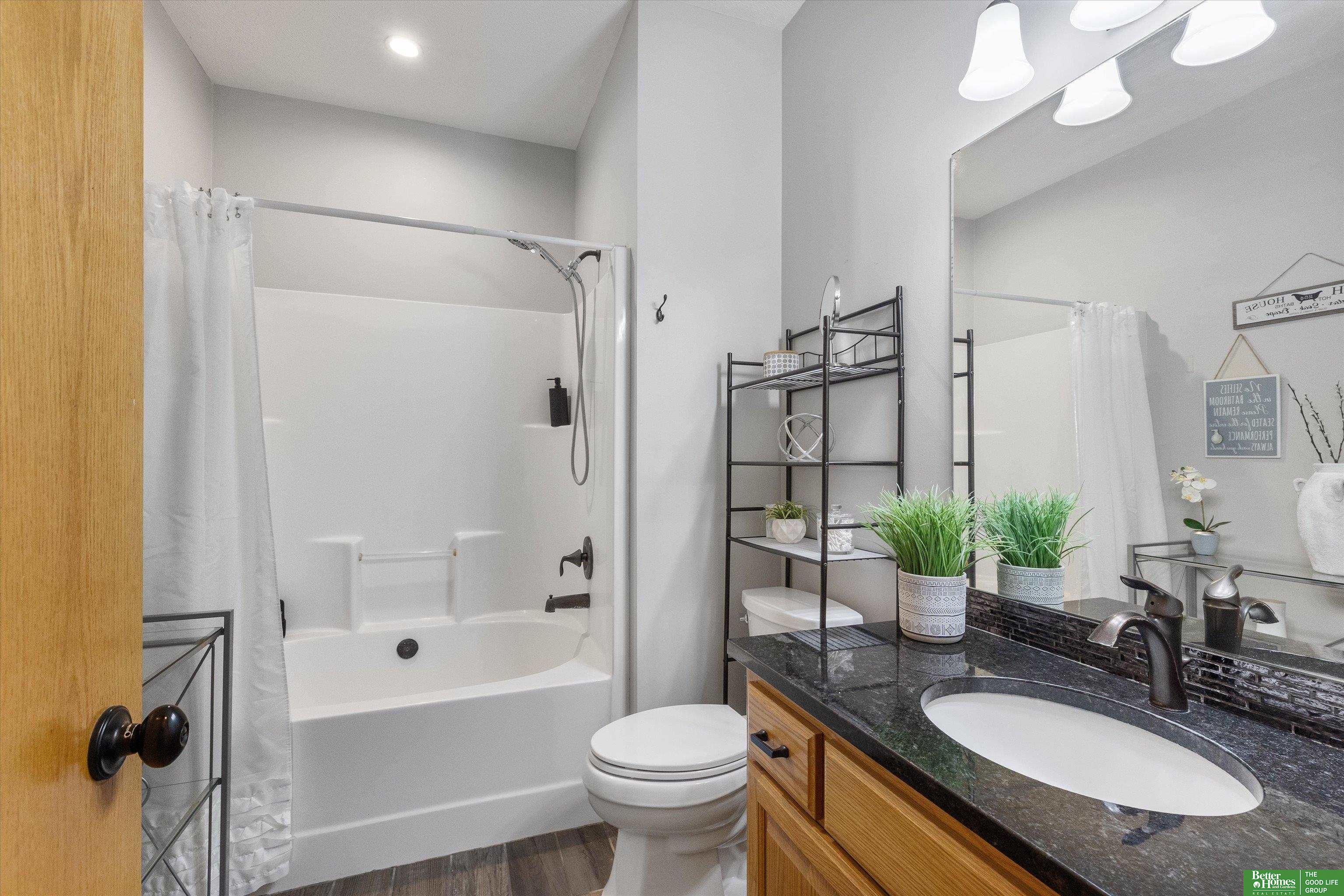 Enjoy the privacy of the tree-lined backyard oasis in this beautifully updated 5 bedroom, 3 bathroom, 3-car walkout ranch in Gretna's Lincoln Place subdivision! Open concept design with white kitchen cabinets, granite counters, huge walk-in pantry, wood floors & all new appliances. Primary suite offers a walk-in closet, whirlpool tub, double sinks & separate shower. The huge finished walkout basement features oversized 4th & 5th bedrooms, a full bathroom, a large family room and lots of storage. Updates include: roof (2020), A/C (2021), garage doors (2022), all new bathroom toilets throughout (2023) & composite deck. The private and beautifully landscaped yard includes a sprinkler system and is fully fenced with no backyard neighbors! Enjoy nearby parks, walking trails along with quick access to Hwy 370 & Hwy 6. Nestled on a quiet cul-de-sac in a welcoming beautiful neighborhood.