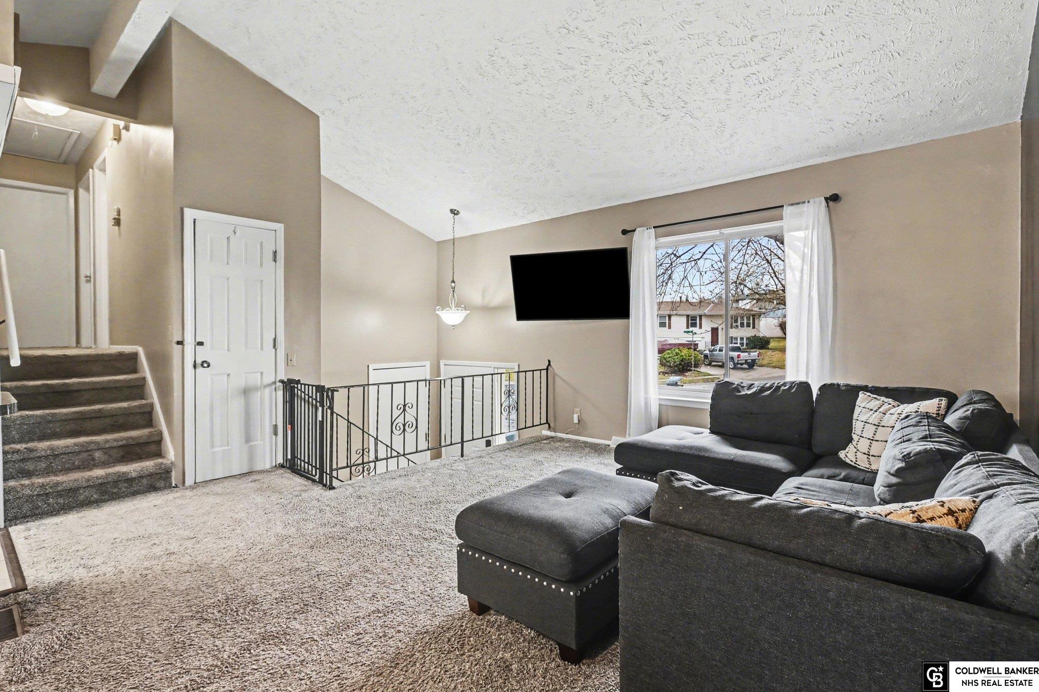 NO BACKYARD NEIGHBORS! Located in a cul-de-sac, this home backs to trees and trails, offering privacy and beautiful views, all while being conveniently close to shopping and within Millard schools. A fantastic location for the price! The main level features high ceilings that create an open, airy feel with abundant natural light throughout. On the second level, you’ll find three generously sized bedrooms and a full bathroom. The spacious primary suite includes fresh paint and a 3/4 en-suite bath. The lower level offers a cozy brick fireplace, new flooring, and a walkout basement. You’ll also find an additional 3/4 bathroom, laundry area, and ample storage space. Enjoy outdoor living on the covered deck overlooking the flat and spacious yard with direct access to the adjacent trees and trail. This multi-level home is truly move-in ready, with some fresh paint and new flooring updates completed prior to listing. Schedule your showing today! AMA. Offers due by Tuesday, April 7th at 7pm.