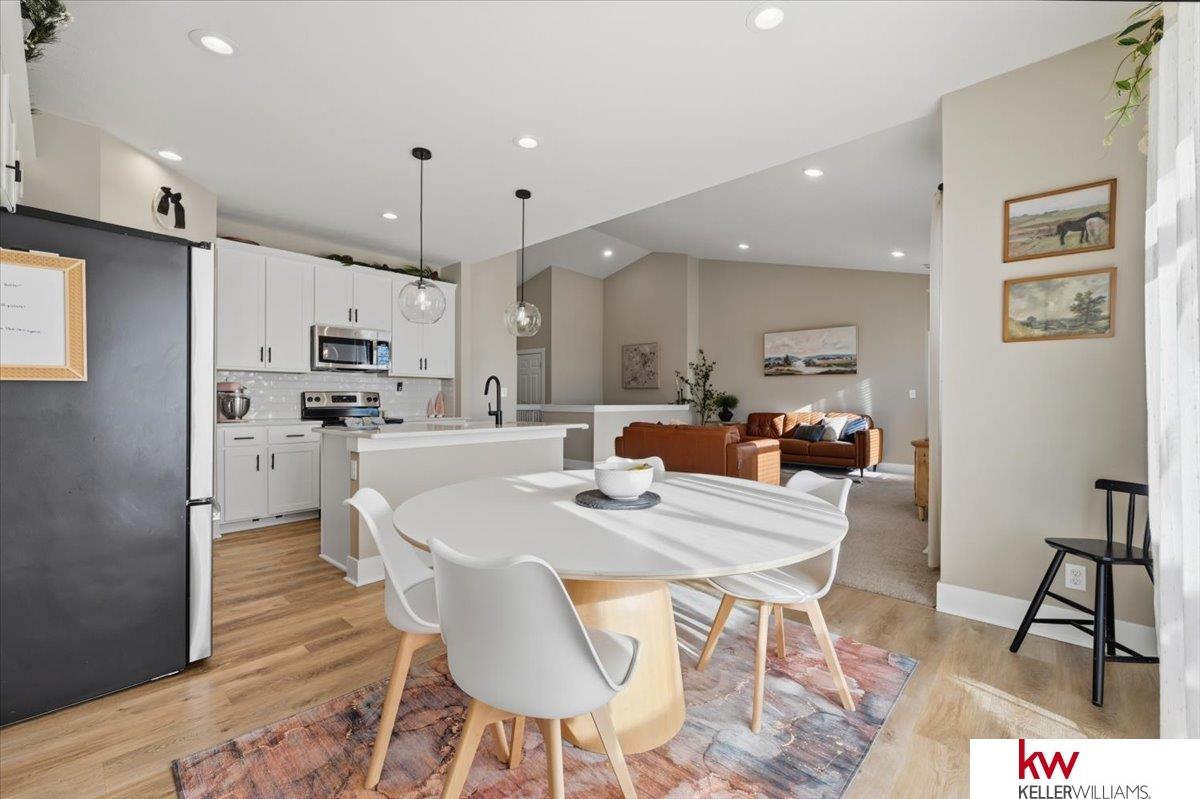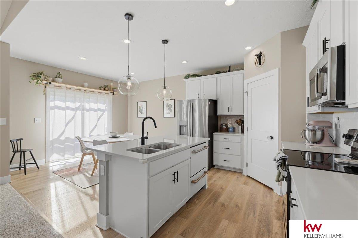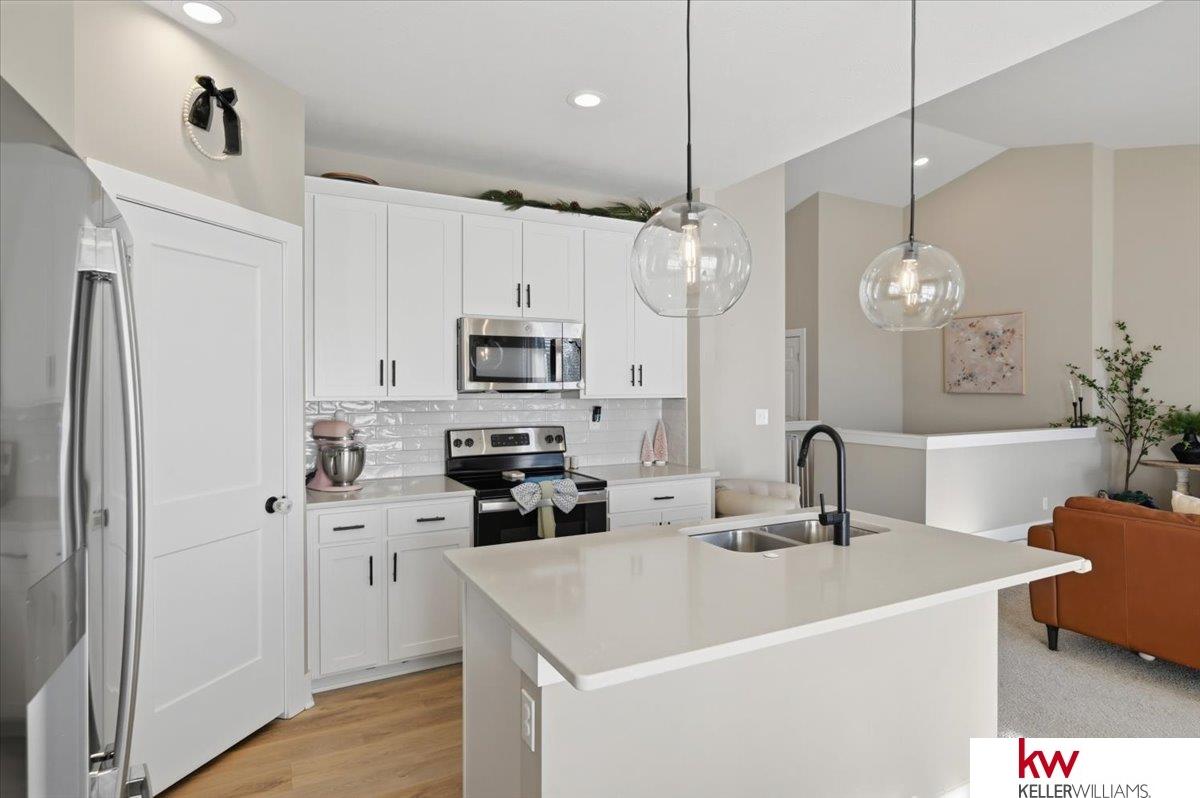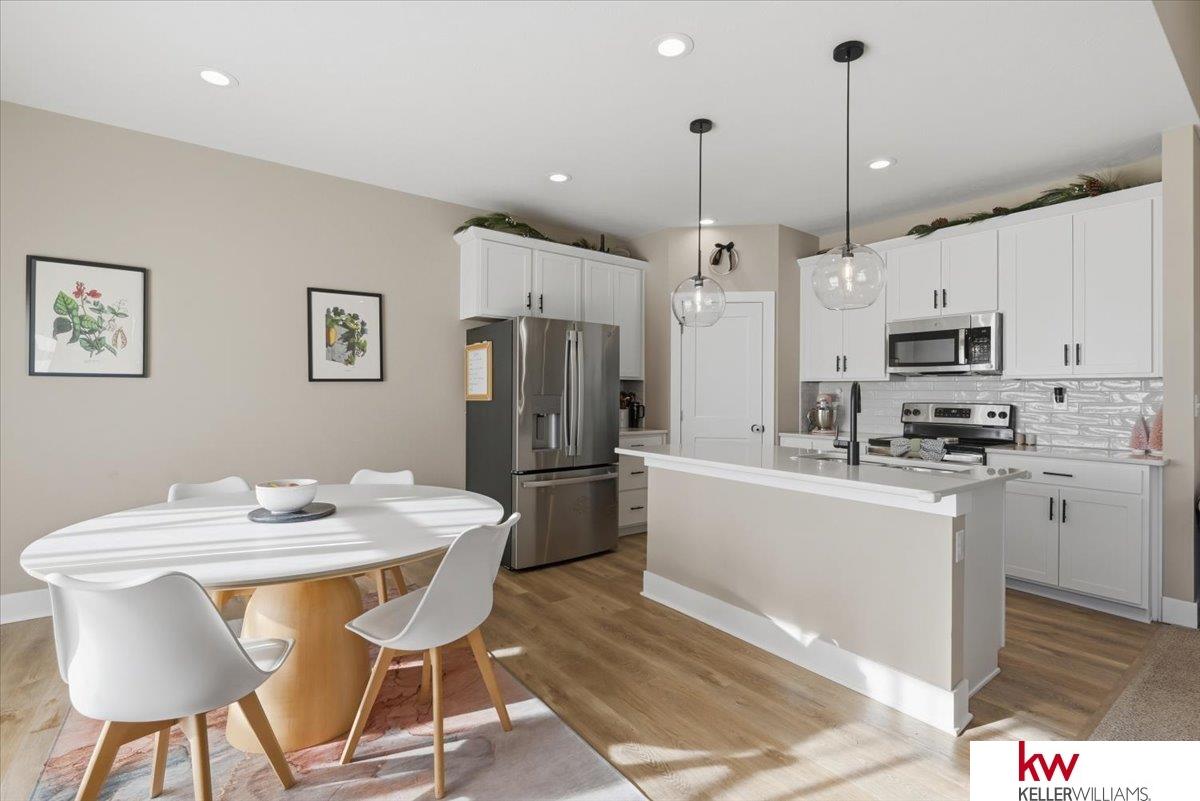 Beautiful home in the heart of Osage Ranch! This house offers 4 bedrooms, 3 bathrooms, 3 car garage, and finished basement. Walk inside to the open concept and admire all the kitchen amenities that includes white cabinets, satin nickel light fixtures, stainless appliances, quartz countertops and pantry. Great room and kitchen is a good space for entertaining family and friends.The primary suite is separate from the other bedrooms and includes a private bathroom with double sinks that feature quartz counters, and a walk-in closet. Enjoy the comfortable design plus wonderful natural light in this home. Walk down to the finished lower level that includes a large rec room, 4th bedroom and 3 qtr bath & lots of storage space. Backyard is equipped with patio that also feature pergola and privacy fence.