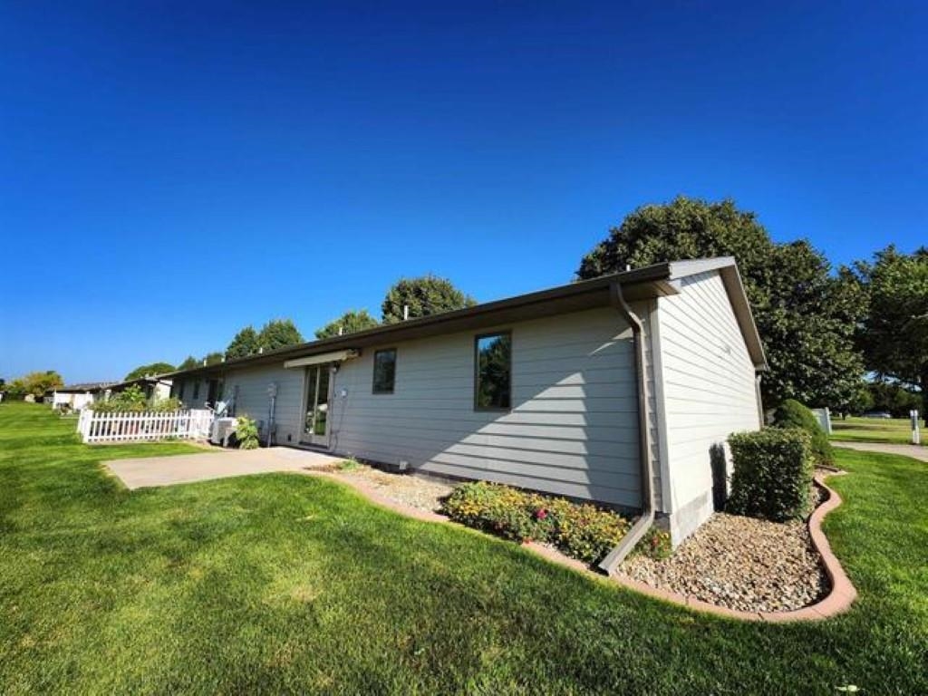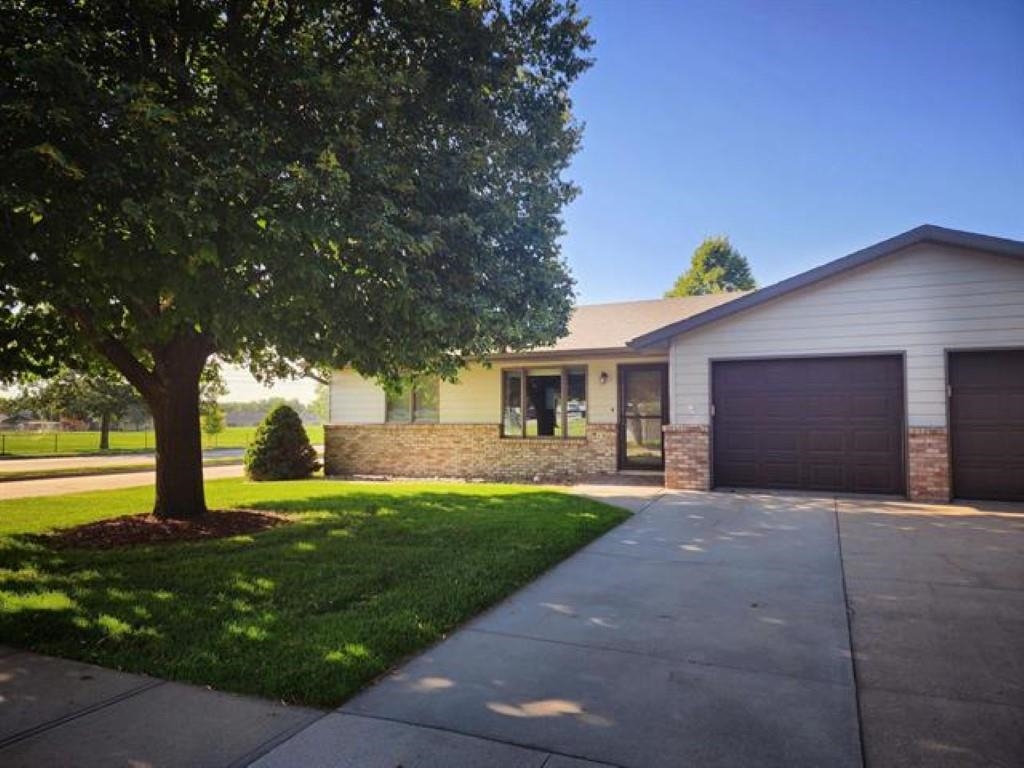 Spruced up and move-in ready. 2 bedrooms, 1 full bath and a half bath. New carpet in living room and bedrooms. New plank flooring in kitchen. Meadow Lark Manor is a 55+ community with a wonderful community building for meeting up with family and/or friends. The community building includes a basement where the Meadow Lark residents can go in case of inclement weather. The $300/month HOA's takes care of lawn care, snow removal and exterior maintenance. There is a very nice park within the Meadow Lark community for a walk and join a friend on one of the many park benches in the park. This particular unit includes an electric retractable canvas awning for a shaded patio. The clothes washer, clothes dryer and water softener are included in the sale of this property. Seller is also including a HOME WARRANTY until December 1, 2026, a $595 value. This is a must-see condo.