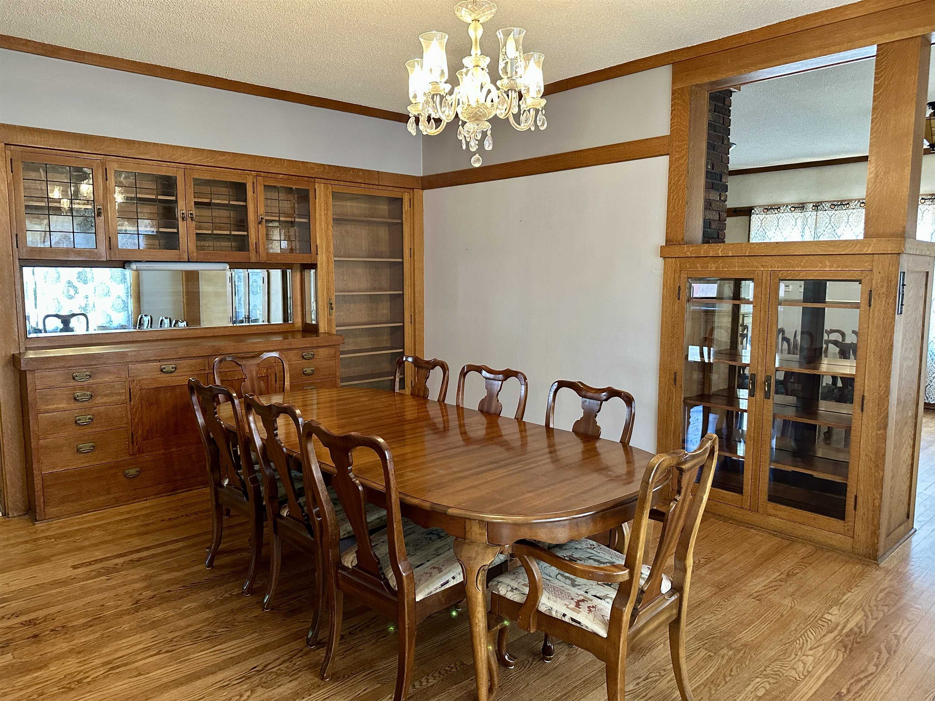 There is so much to love about this beautiful 2 story brick home with a lot of original charm! Walk into the living room with wood floors, built-ins and a fireplace. Then into the formal dining with a built-in buffet and display hutches. Off of it there is a main floor family room which is open to the kitchen and a half bath. Upstairs there are 4 bedrooms and a full bath. Downstairs there is lots of storage, a family room and laundry room with a shower. It sits on a nice size lot with a shed, a 2-car attached garage, and a 1 car detached garage, plus car port behind it.