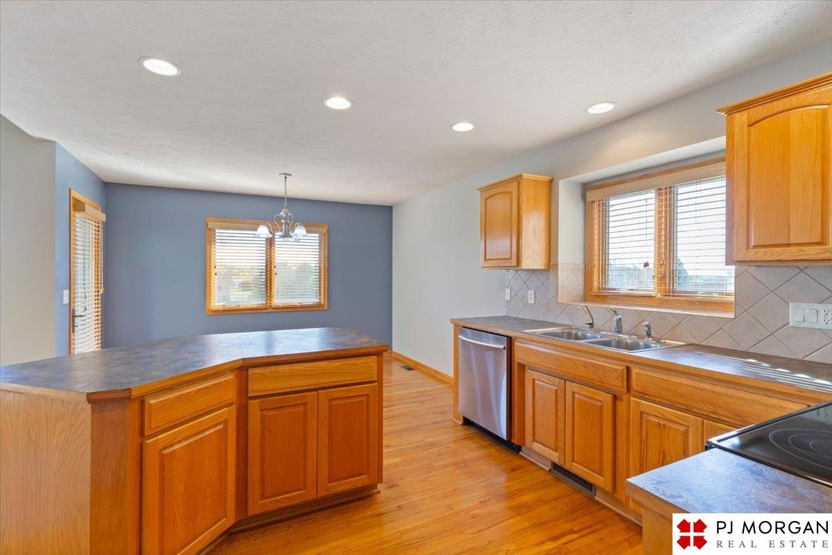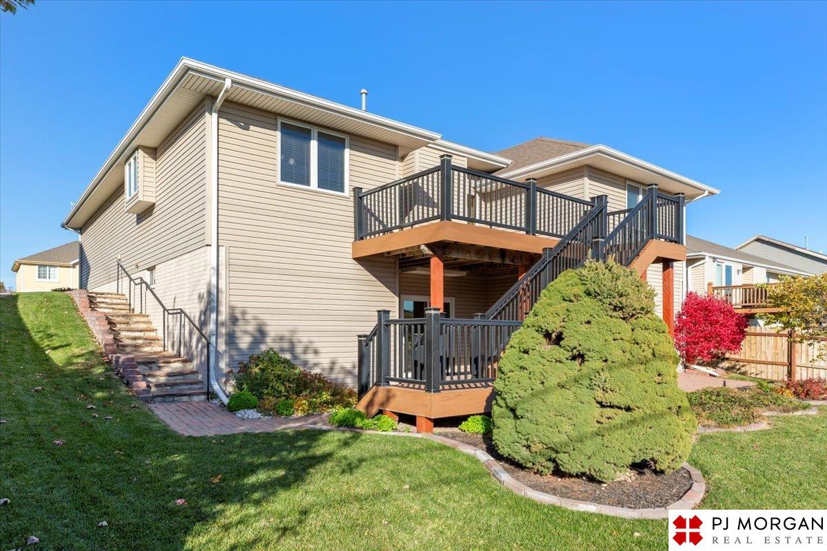 Discover main-floor convenience perfectly paired with expansive lower-level living space. Enjoy the vaulted ceilings and a great flow between the living area and kitchen. This is efficient, comfortable living at its best! The lower level is ready for your lifestyle, offering a huge bonus area perfect for a media room, home gym, or play zone. With the walkout access, you get abundant natural light. Step right out from the lower level onto your private patio space and the main-level deck is ready for summer grilling. 2-car garage, vinyl siding, and is situated on a nice lot just moments from Gretna amenities. Great storage area!