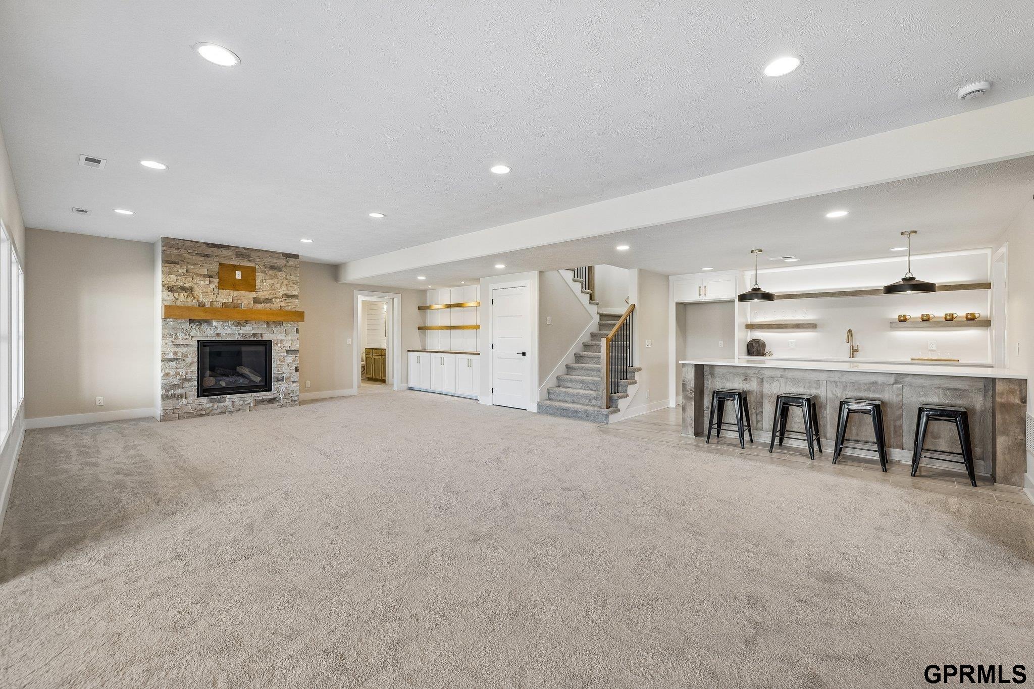 Must see Elkhorn cul de sac lot backs trees - perfect for future pool. Impressive ranch in popular Blue Sage Creek. The heart of the home boasts an inviting 11-foot kitchen island, perfect for entertaining friends and family. The huge butler's pantry features a full sized sink, second dishwasher and room for a second refrigerator. Five spacious bedrooms and HUGE versatile lower-level bonus space. Enjoy the convenience of a generous four-car garage and a gorgeous basement wet bar, all adorned with impressive finishes throughout. With over 20 years of experience, Heavican Homes brings exceptional quality to this exquisite residence.