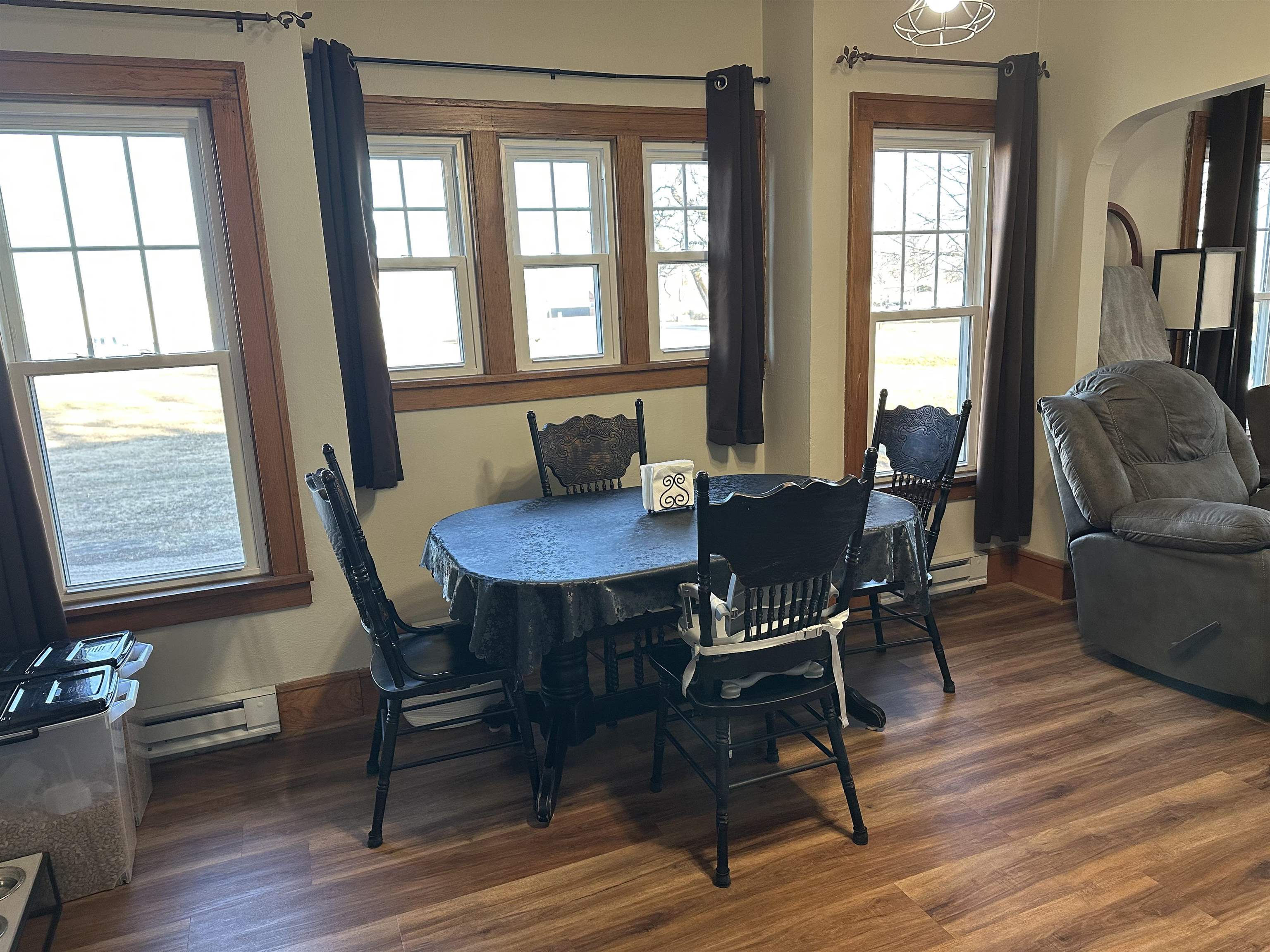 New flooring throughout the house, updated paint in all rooms, and all original woodwork in great shape! All windows are newer and the garage was new in 2025! The garage has insulation and heat. Located near park & water park, ball fields, downtown and school. The garage has a 220 outlet.