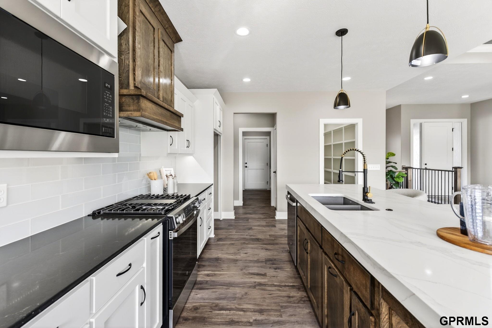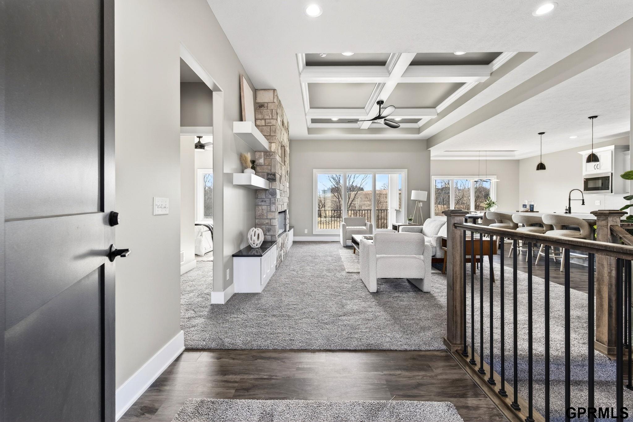 OPEN HOUSE: 3/1 1–3 PM. Welcome to this Buckland Homes walkout ranch backing to a treed walking trail with no backyard neighbors. Enjoy peaceful views and added privacy in this beautifully designed 5-bedroom, 3-bath home that blends comfort, quality, and style. The open, light-filled layout features durable LVP flooring in high-traffic areas and plush carpeting in the Great Room, Family Room, and bedrooms. The kitchen is a standout with Cambria quartz countertops (lifetime warranty) and a spacious dining area with large windows that capture the scenic setting. A modern heat-producing electric linear fireplace adds warmth and ambiance to the Great Room. Outdoor living shines with both a covered deck and a covered lower-level patio, ideal for relaxing or entertaining. The oversized 4-car garage offers ample space for vehicles, storage, or a workshop. Thoughtfully crafted by Buckland Homes, this home delivers exceptional quality in a serene, natural setting.