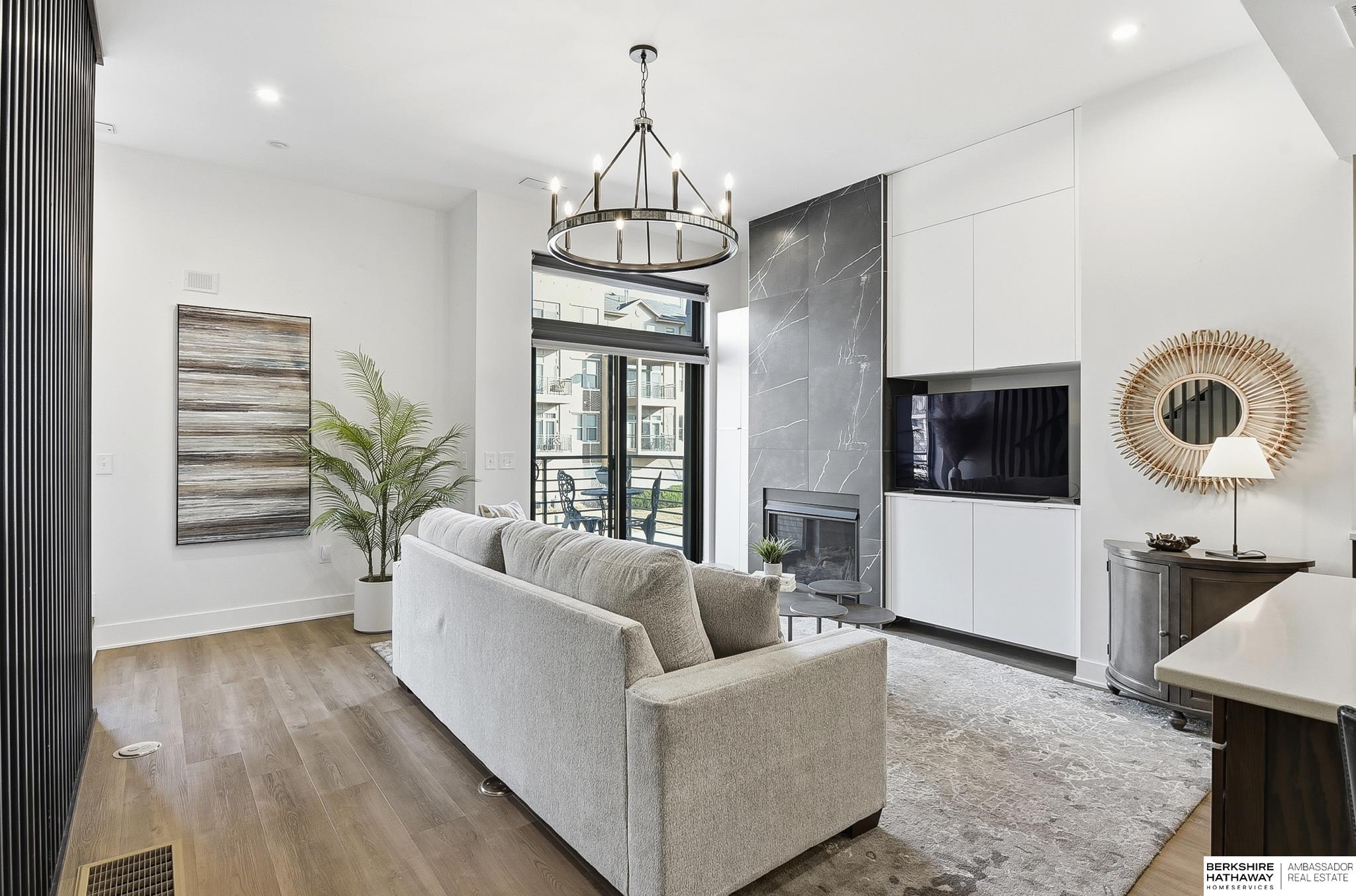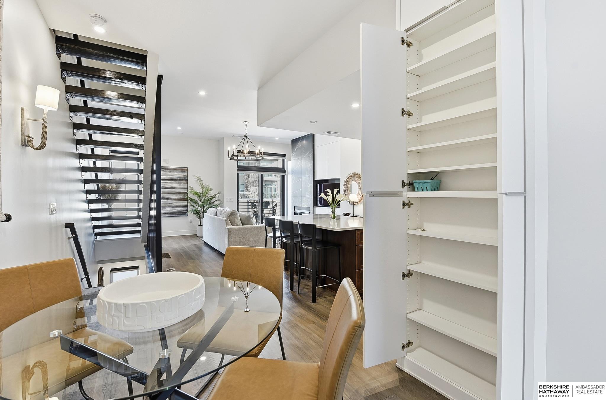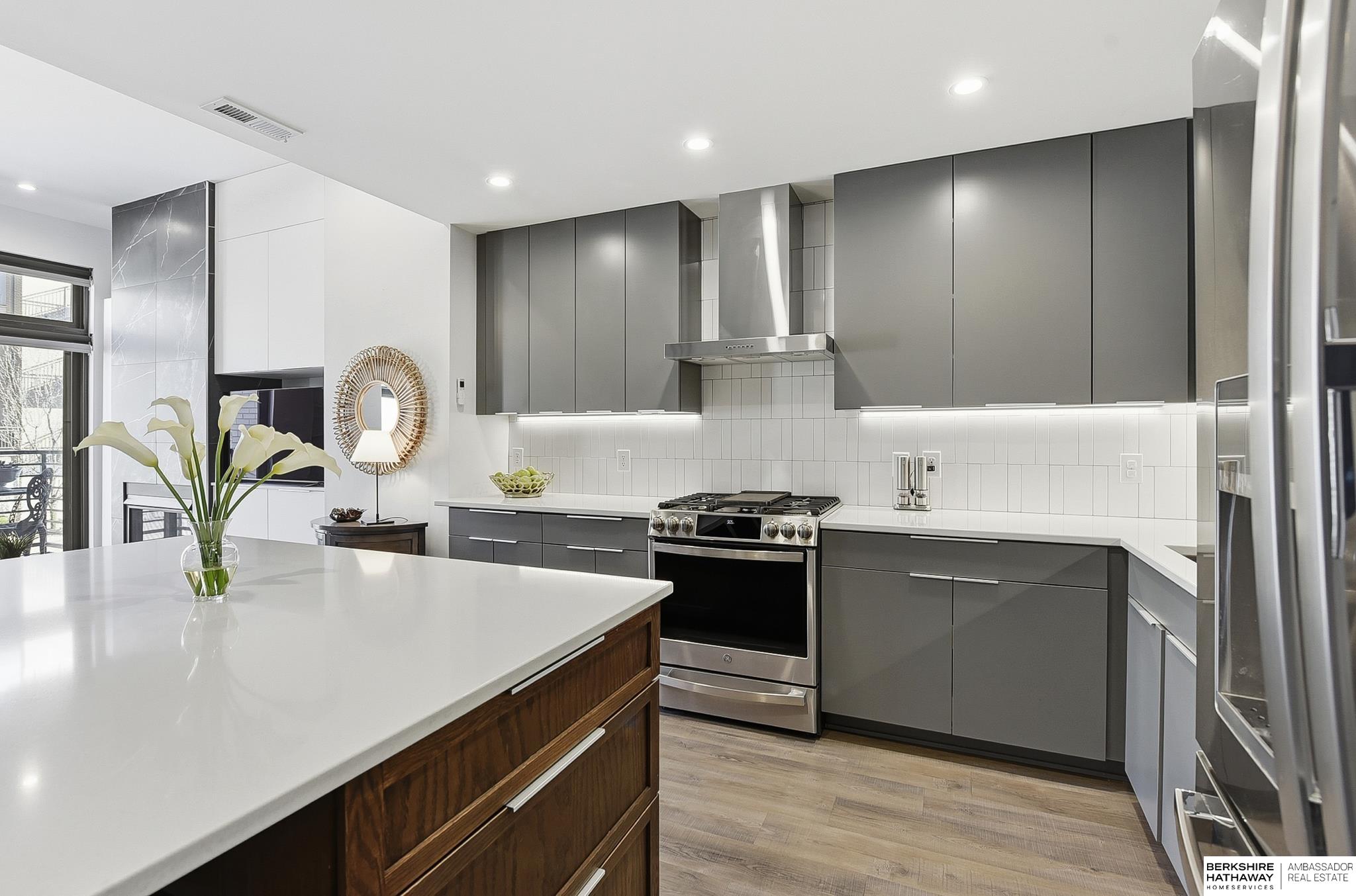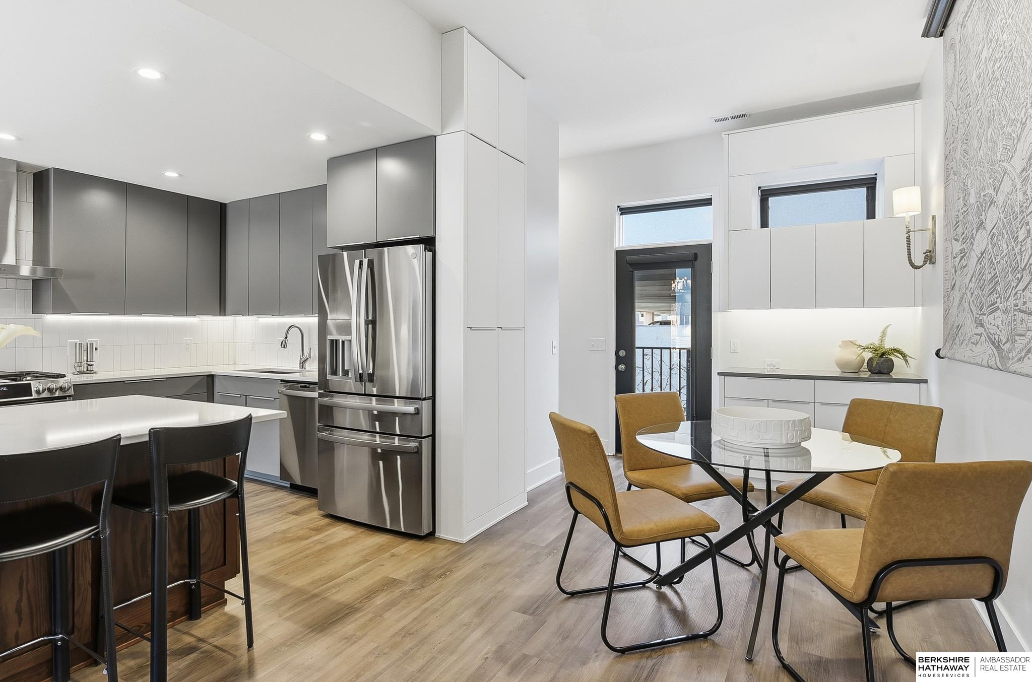 Experience modern style and unbeatable convenience in this beautifully upgraded townhome located in the heart of vibrant Aksarben Village. Thoughtful upgrades include custom cabinetry and ample storage throughout every room, plus remote-control privacy blinds for added comfort. The open-concept living space showcases 10-foot ceilings and a striking floor-to-ceiling gas fireplace, creating a warm and inviting atmosphere. The gourmet kitchen offers premium appliances, a gas chef's range, and high-end finishes - perfect for entertaining or everyday living. This sleek row house also features an attached two-car garage with EV charger and an epoxy-coated garage floor. Enjoy unmatched walkability to fitness studios, shopping, dining, live music, walking trails, movie theater, Farmers Market and a dog park. With quick access to I-80, UNMC, Midtown, and downtown. This low-maintenance home is one of only seven total units in one of Omaha's most desirable entertainment districts.