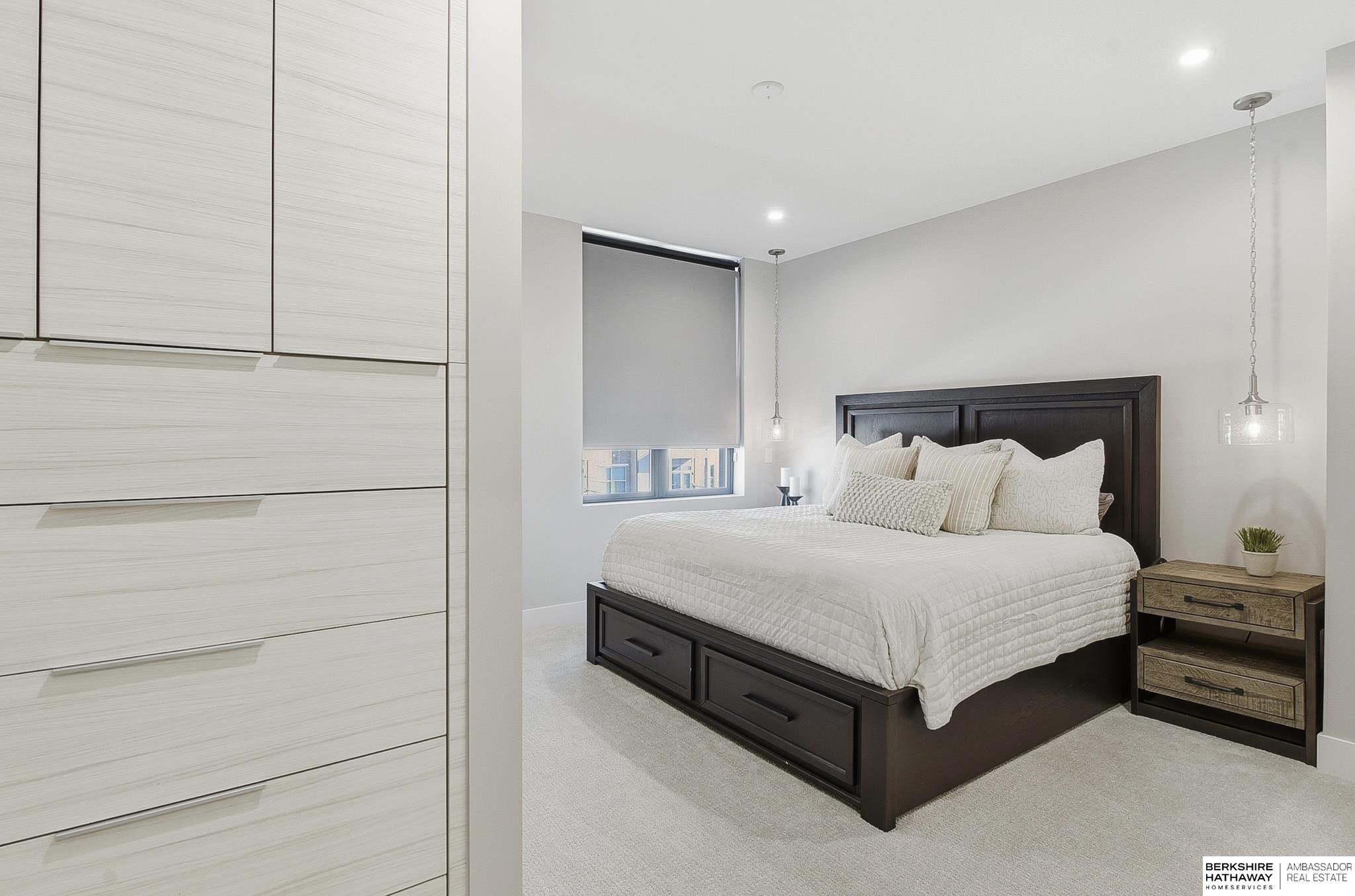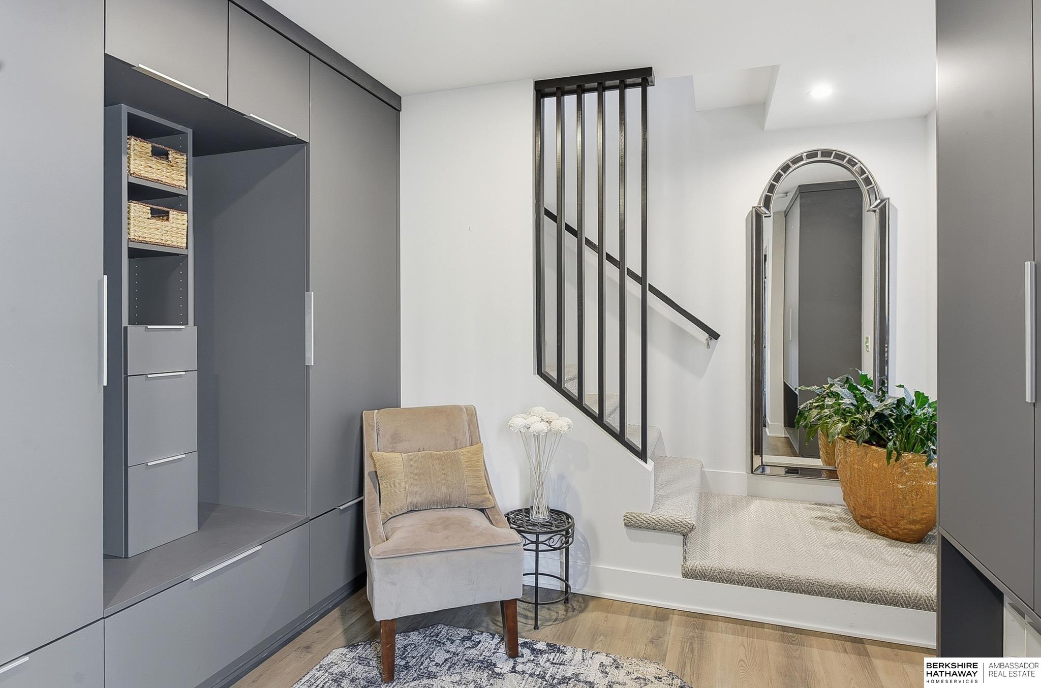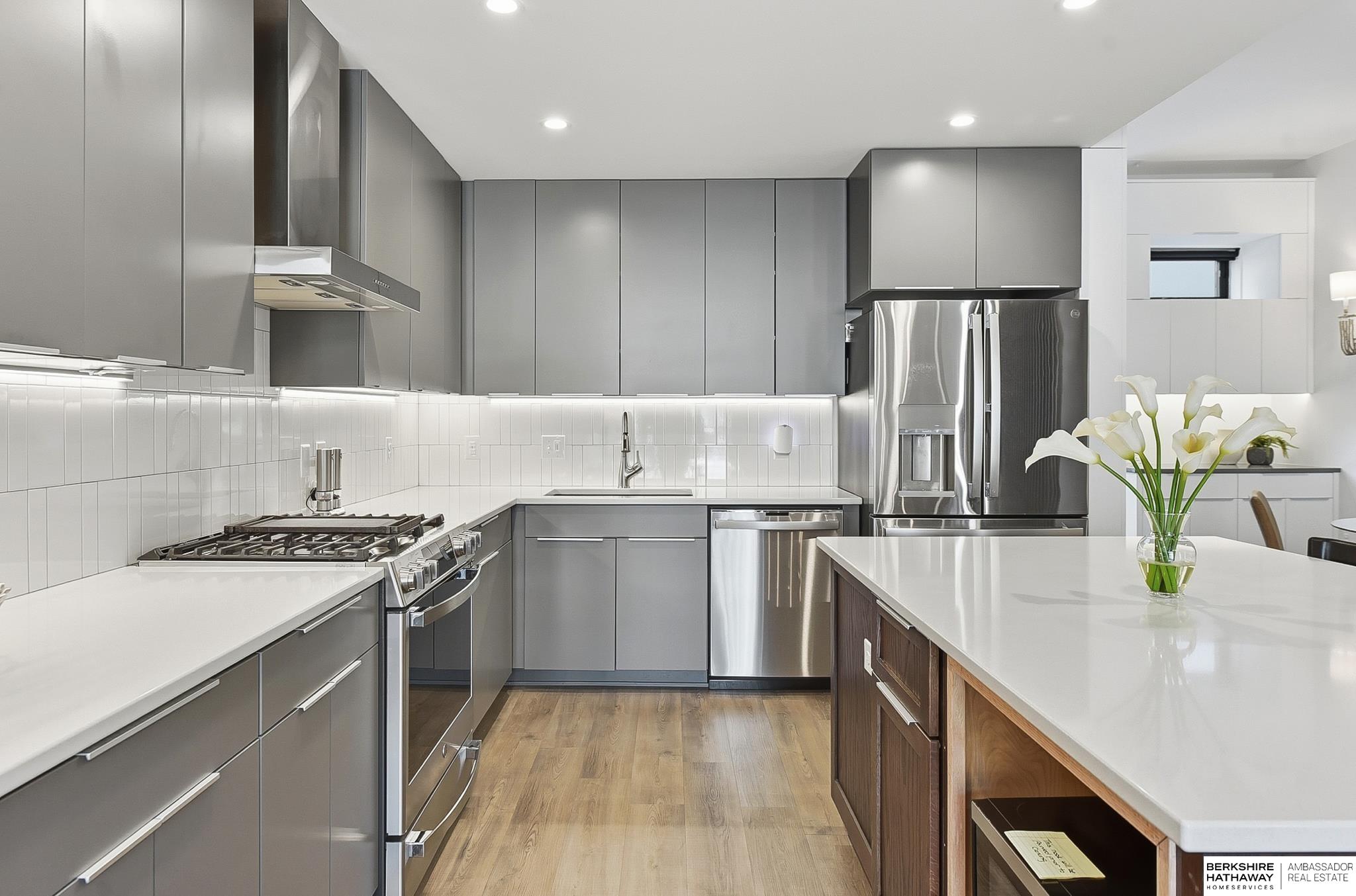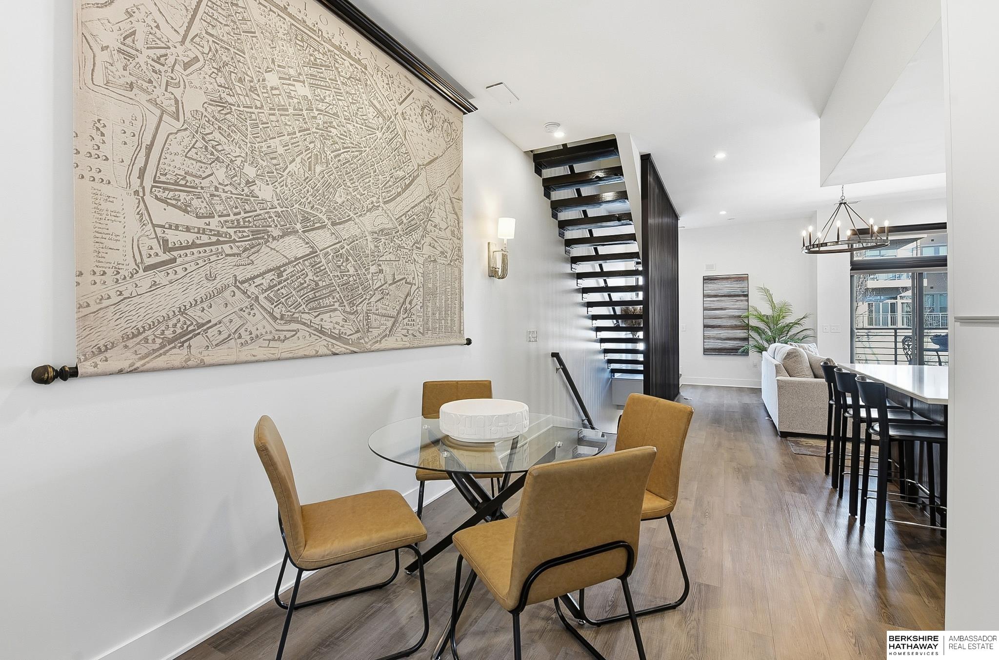 Experience modern style and unbeatable convenience in this beautifully upgraded townhome located in the heart of vibrant Aksarben Village. Thoughtful upgrades include custom cabinetry and ample storage throughout every room, plus remote-control privacy blinds for added comfort. The open-concept living space showcases 10-foot ceilings and a striking floor-to-ceiling gas fireplace, creating a warm and inviting atmosphere. The gourmet kitchen offers premium appliances, a gas chef's range, and high-end finishes - perfect for entertaining or everyday living. This sleek row house also features an attached two-car garage with EV charger and an epoxy-coated garage floor. Enjoy unmatched walkability to fitness studios, shopping, dining, live music, walking trails, movie theater, Farmers Market and a dog park. With quick access to I-80, UNMC, Midtown, and downtown. This low-maintenance home is one of only seven total units in one of Omaha's most desirable entertainment districts.