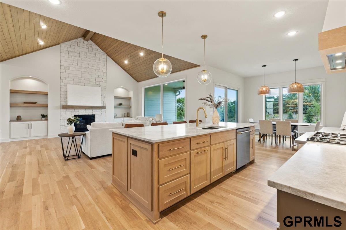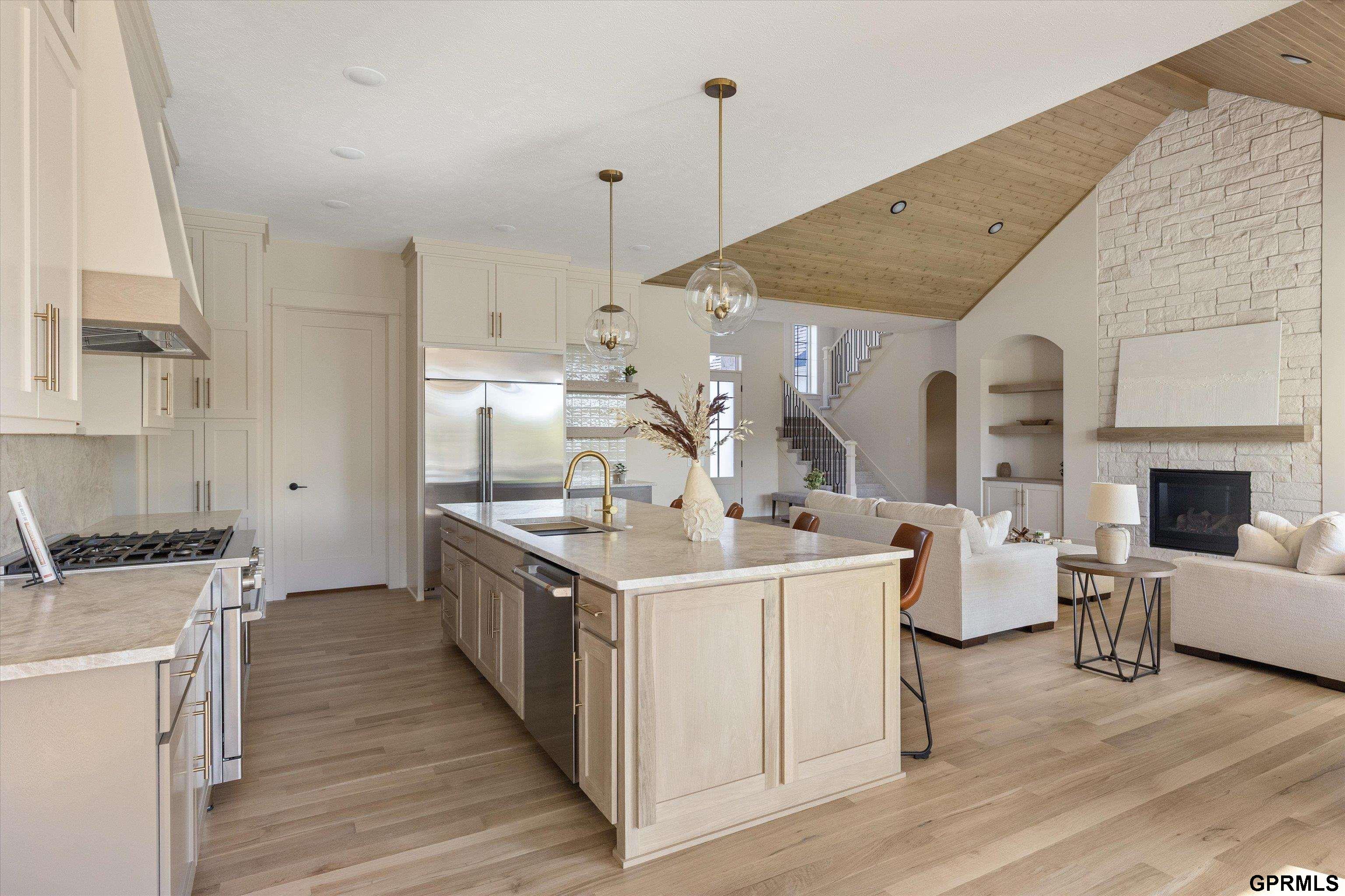 **OPEN HOUSE SAT 10/18 & SUN 10/19 12-4pm!!** Welcome to the awe-inspiring "Sunset" from MAXIM HOMES on a private treed lot! The impressive 2 story entrance and sunlight flooding in lead you to an entry where you’ll find a stunning view thru the soaring vaulted wood paneled ceiling Great Room w/wood floors, stunning stone fireplace with one-of-a-kind accents. The expansive kitchen includes Taj Mahal Quartzite, an oversized island, GE Cafe appliances, walk through butler's pantry, dining area & generous drop zone just off the kitchen. Main floor primary suite with vaulted ceilings, stunning views of large lot, oversized bath area with double vanities, makeup area, custom Spa inspired tile walk-in shower w/rain head and tub along with a large closet. The upper level includes 2 additional bedrooms, 2nd laundry & spacious loft area - perfect for any family. The lower level includes a custom wet bar & fireplace, theater room, 4th & 5th bedrooms with walk-in closets and a full bath.