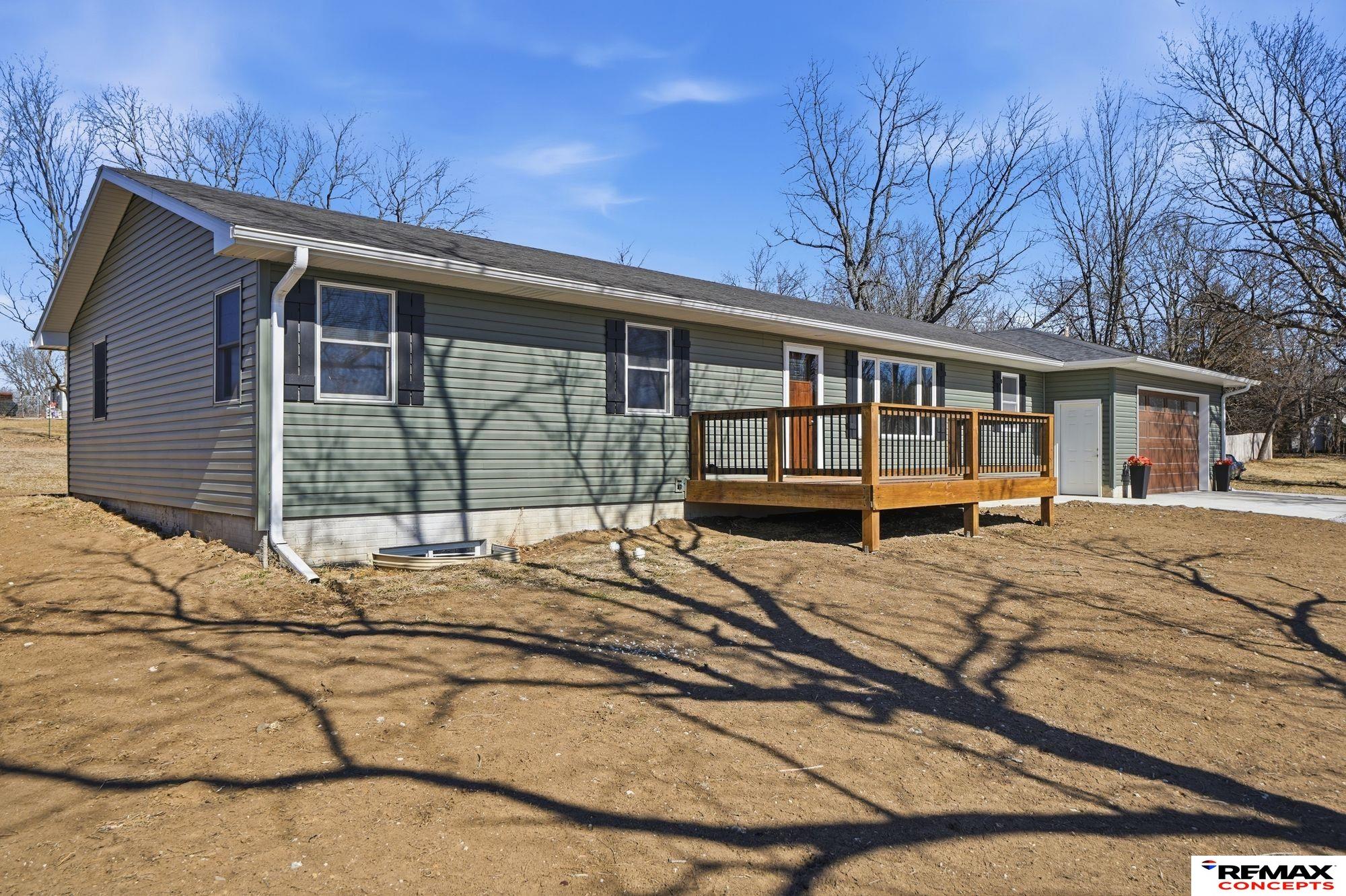 Welcome to small town living at its best. This newly remodeled ranch offers 3 spacious main floor bedrooms, including a primary suite with private bath, plus a second bath featuring an accessible walk-in shower. The oversized living room flows seamlessly into a beautifully updated kitchen with abundant cabinetry, large island, new appliances, open dining area, and an impressive walk-in pantry. A brand new, extra-deep two stall attached garage complements the existing detached single stall garage, providing exceptional storage and workspace options. The full unfinished basement includes an egress window and bathroom rough-ins, offering excellent potential to expand your living space and build equity. Enjoy quiet mornings or evening sunsets on the inviting front deck. With major updates including roof, siding, HVAC, electrical, and plumbing, this home is truly move-in ready.