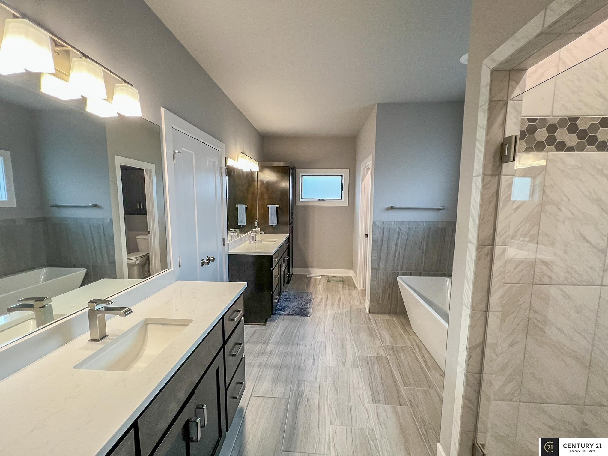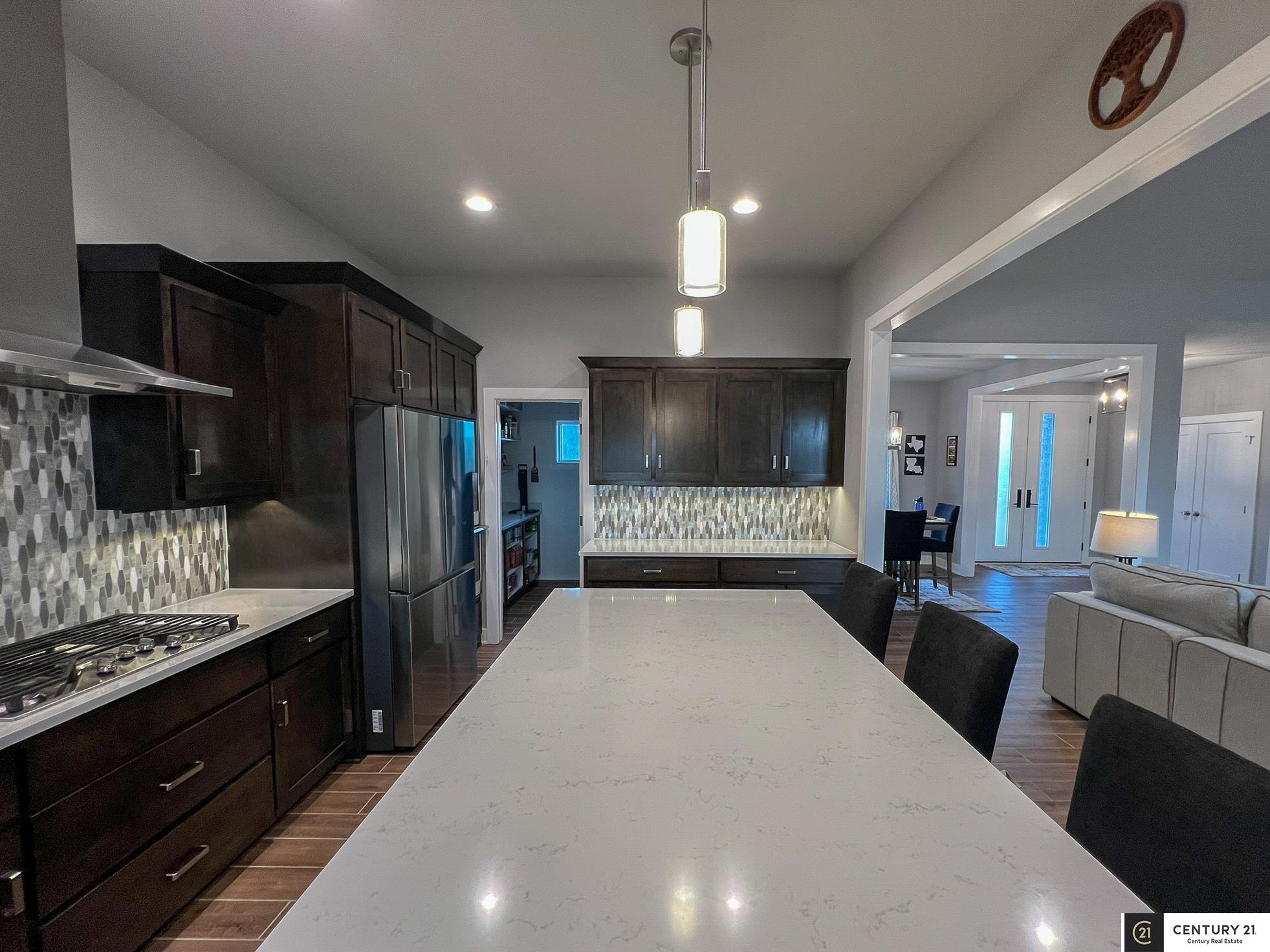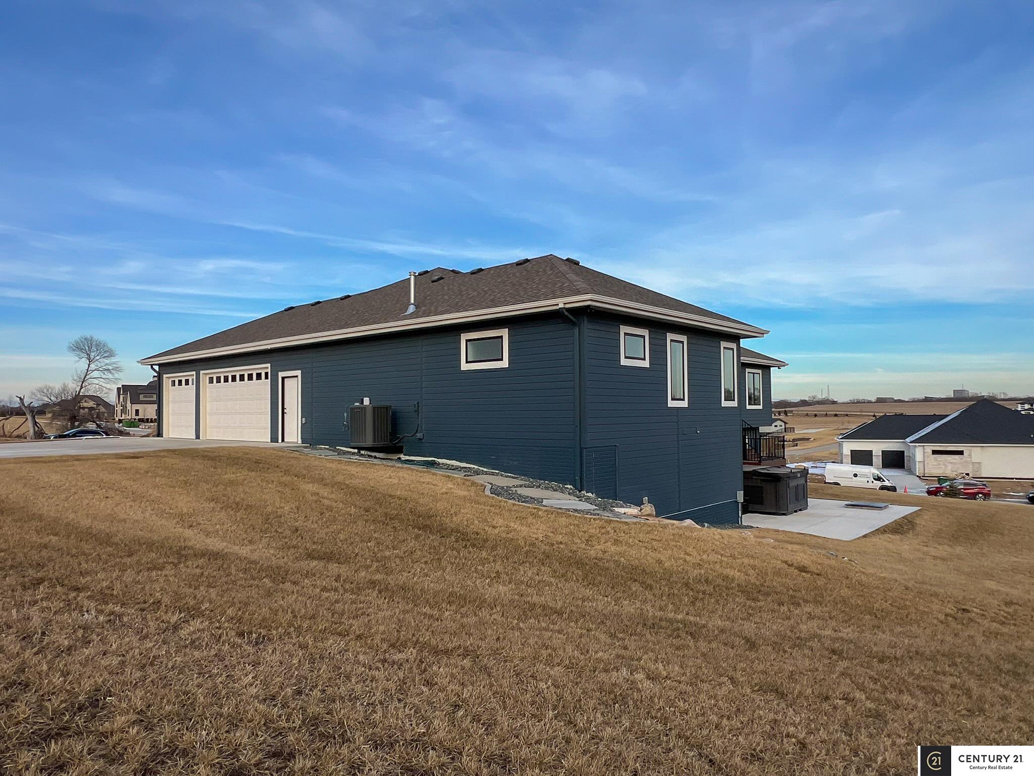 This stunning custom ranch sits on a peaceful 1.25-acre lot & backs directly to green space. Location allows choice of school district: Elkhorn or Gretna. Better than new & move-in ready! Open, airy floor plan w/high ceilings, perfect for entertaining. Kitchen at the heart of the home complete with gas range, dual electric ovens, generous counter space, & private pantry. Enormous primary suite is a true retreat, featuring heated floors, oversized walk-in closet, dual vanity sinks, & beautiful tiled walk-in shower. Every bedroom has its own private bathroom & walk-in closet! Fully finished basement includes 2 bedrooms, tons of storage, & rec area wired for surround sound - pool table stays! Permanent exterior holiday lighting, covered deck w/fireplace, ceiling fan, gas grill, beautiful patio w/swim spa, firepit & underground sprinkler. Heated 3-car garage w/shop area wired for EV, dual HVAC systems, extra outlets everywhere - this home has been thoughtfully designed!