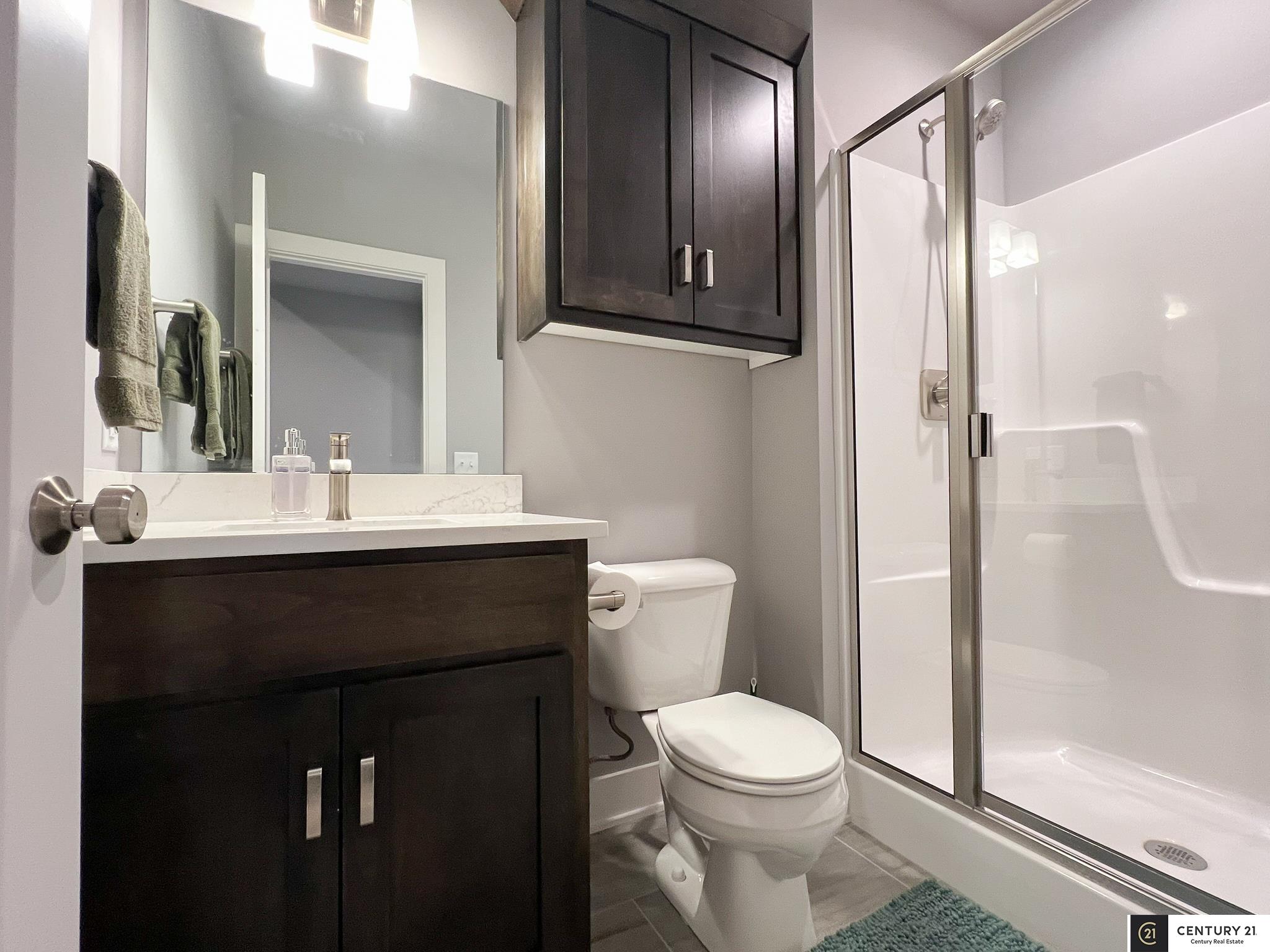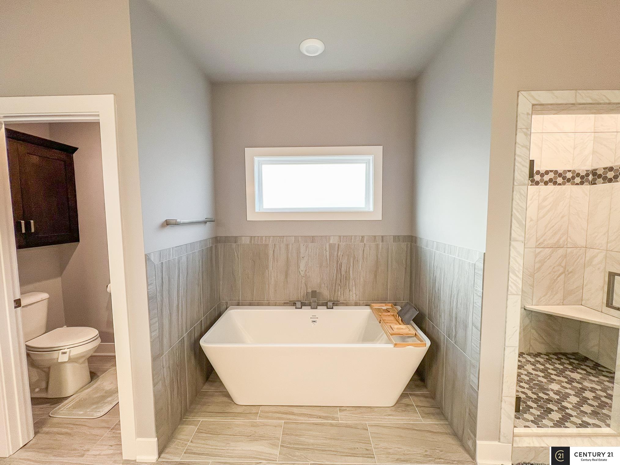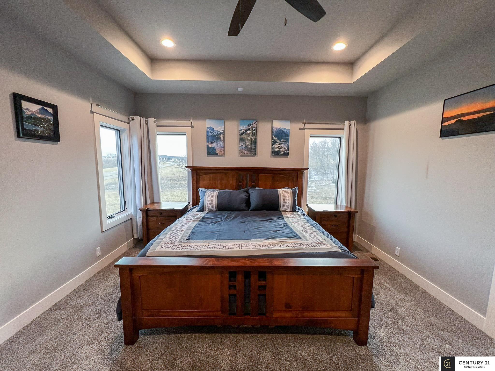 This stunning custom ranch sits on a peaceful 1.25-acre lot & backs directly to green space. Location allows choice of school district: Elkhorn or Gretna. Better than new & move-in ready! Open, airy floor plan w/high ceilings, perfect for entertaining. Kitchen at the heart of the home complete with gas range, dual electric ovens, generous counter space, & private pantry. Enormous primary suite is a true retreat, featuring heated floors, oversized walk-in closet, dual vanity sinks, & beautiful tiled walk-in shower. Every bedroom has its own private bathroom & walk-in closet! Fully finished basement includes 2 bedrooms, tons of storage, & rec area wired for surround sound - pool table stays! Permanent exterior holiday lighting, covered deck w/fireplace, ceiling fan, gas grill, beautiful patio w/swim spa, firepit & underground sprinkler. Heated 3-car garage w/shop area wired for EV, dual HVAC systems, extra outlets everywhere - this home has been thoughtfully designed!