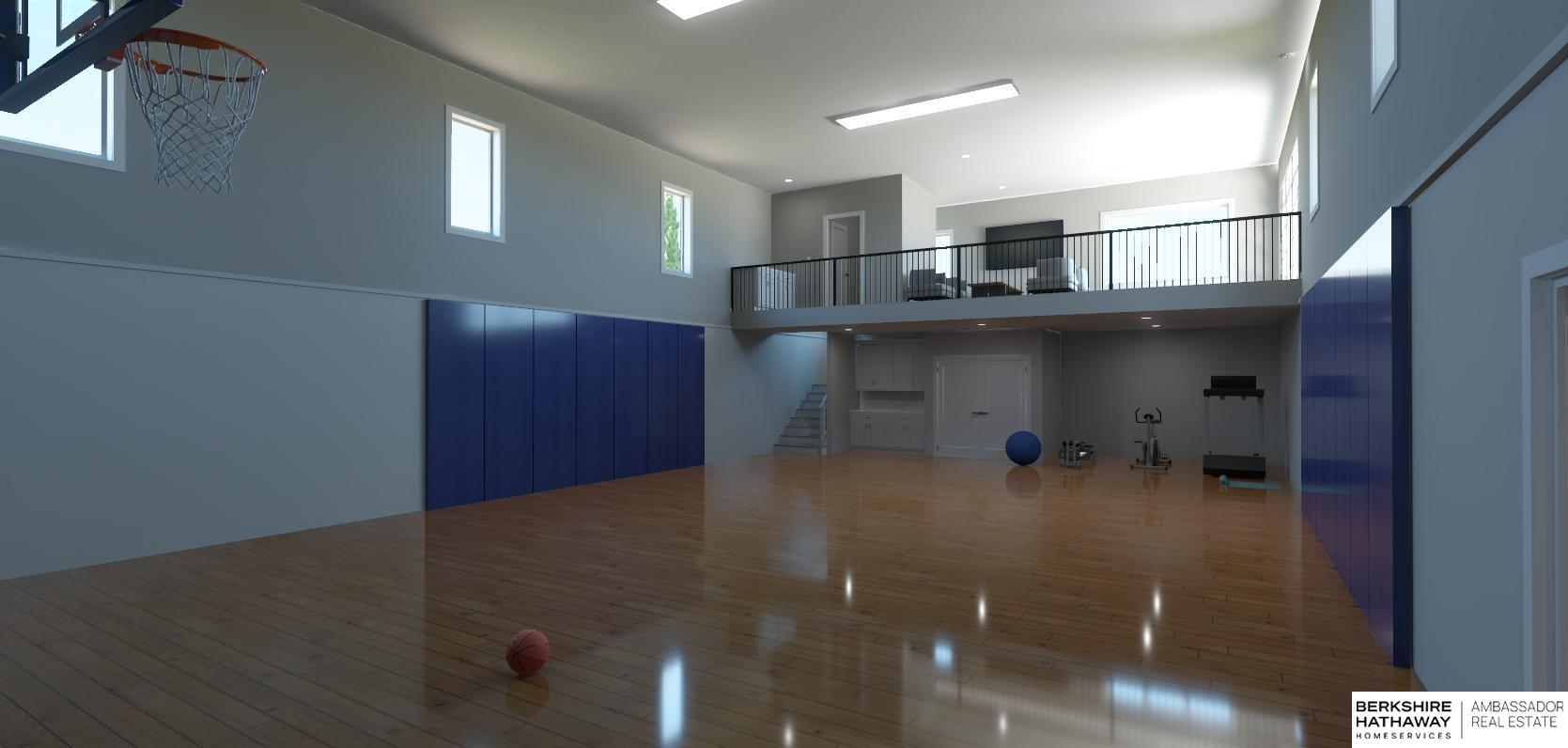 Completion Date is 1/5/2026! Professional photos coming soon. iCON Homes presents its most popular 1.5-story floor plan w/a sports court added for an active & fun family lifestyle. Space abounds w/a main floor that features an open kitchen w/ a gorgeous quartz island & a great room w/ a remarkable floor-to-ceiling 2-story stone fireplace. The primary suite has a huge closet connecting to the 1st laundry room, & a steam shower w/freestanding tub in the bathroom. Your main floor office, pantry, & drop-zone have tons of storage & custom built-ins to keep your home organized. Head upstairs to 3 more beds, 2 baths, a 2nd laundry, & a huge bonus room. Let's talk about this custom sports court! A 2-story design w/plenty of space for activities plus a balcony that overlooks the court, has an area to entertain, & exits out to your dreamy backyard. This home is on a super private lot backing not only to the Elkhorn River, but also common space & plenty of nature.