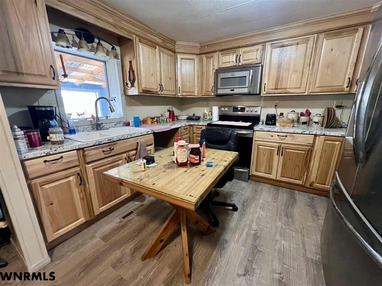 Looking for a small acreage South of Gering! This property is one of a kind, this area has great views of the Hills. This home had many updates in 2021 including, all new windows, flooring, new kitchen, HVAC, water heater, enclosed sun porch, and bathroom. Two bedrooms, one bath, walk in closet and laundry room. Take a look today.