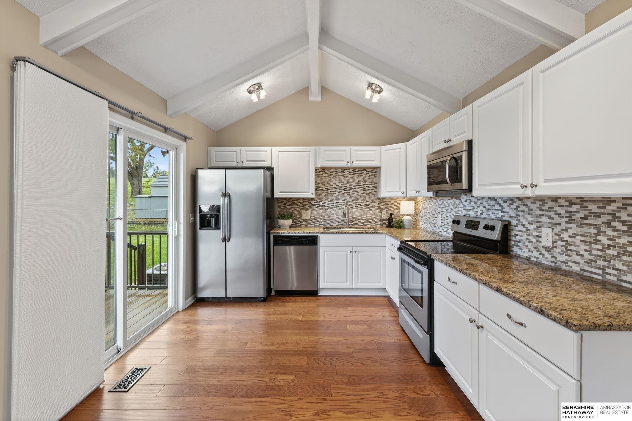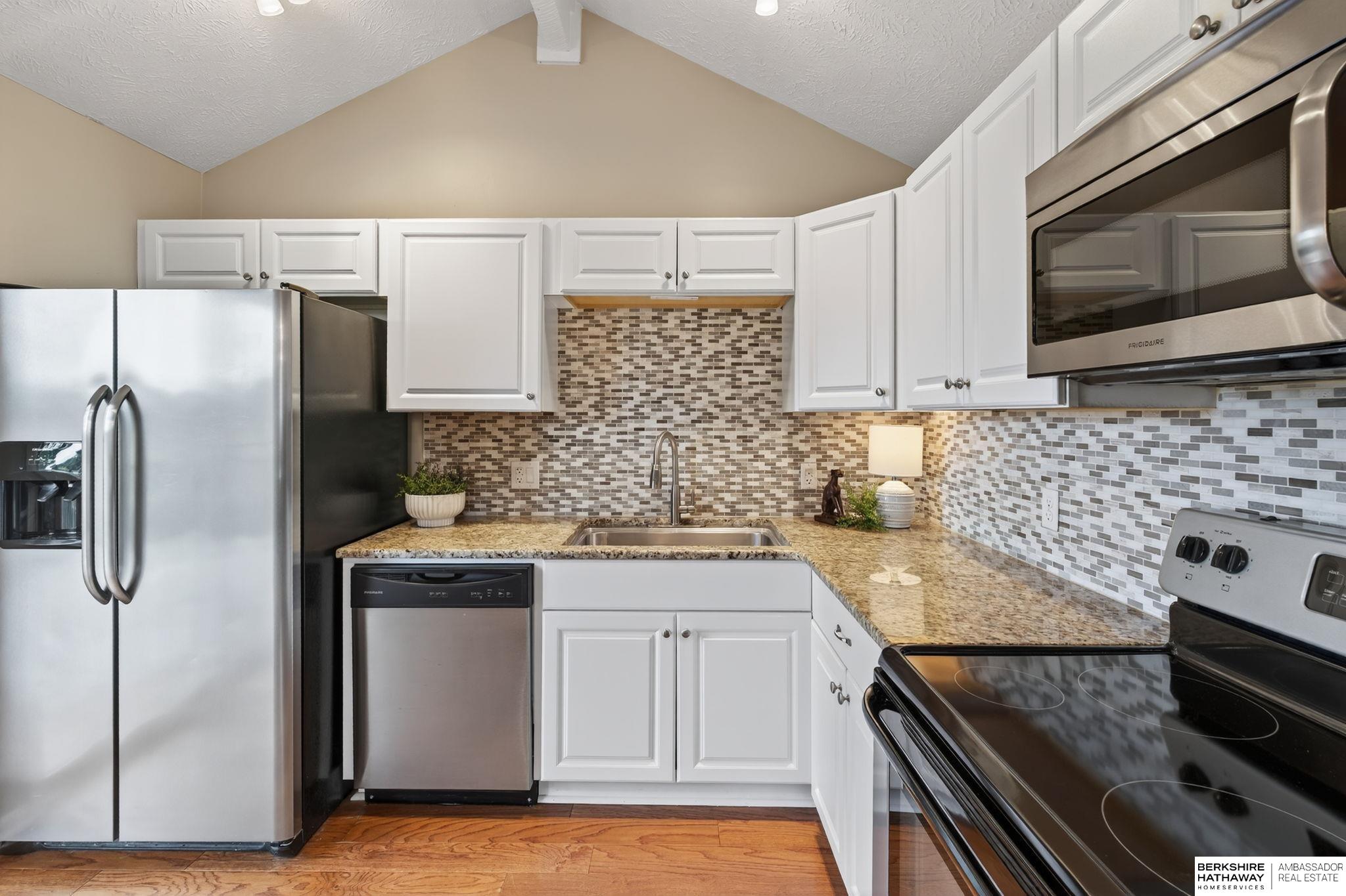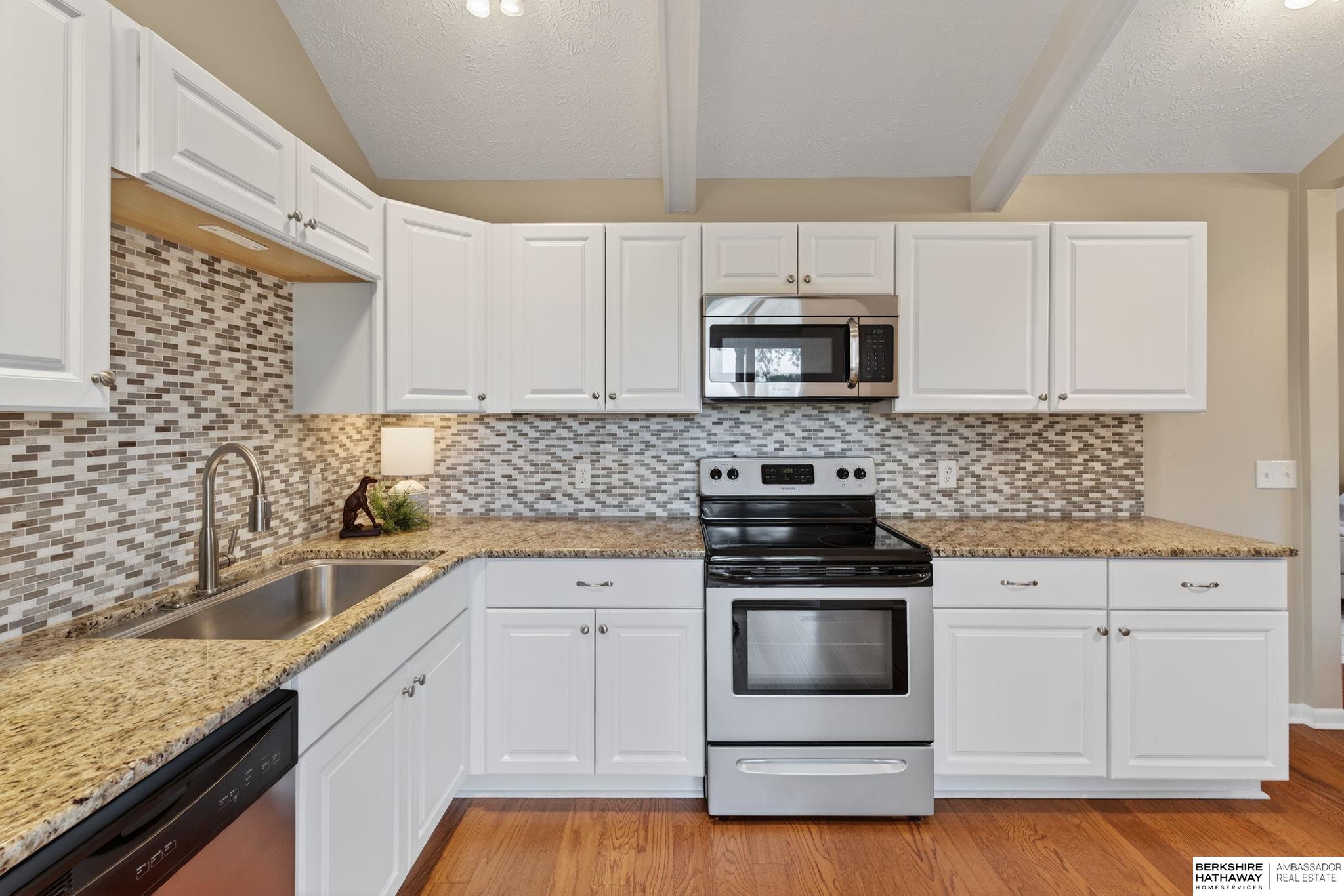 No Rear Neighbors! Beautifully updated and backs to one of two neighborhood parks. Light and bright with larger kitchen and high cathedral ceilings. Substantial fenced backyard. 3 bedrooms, 2 bathrooms, with all kitchen appliances and washer & dryer included. Convenient to shopping, dining, schools, and Dodge expressway. Quaint neighborhood and property is on a cul-de-sac.