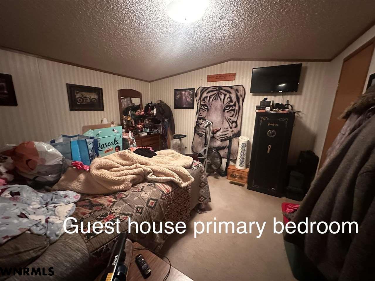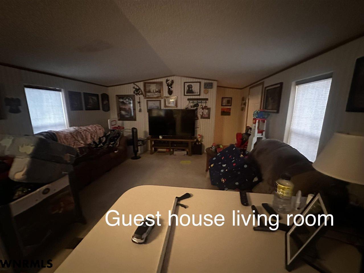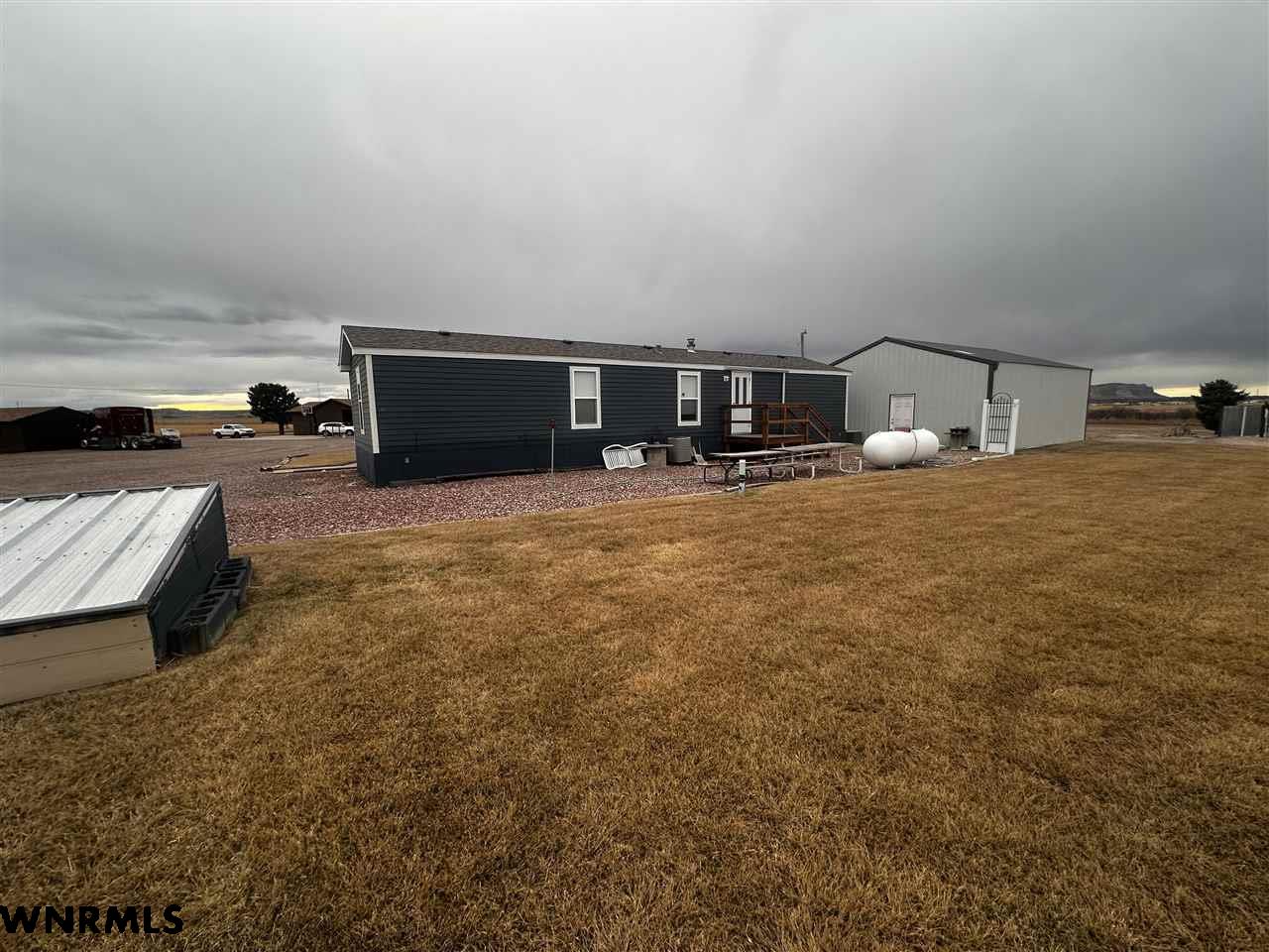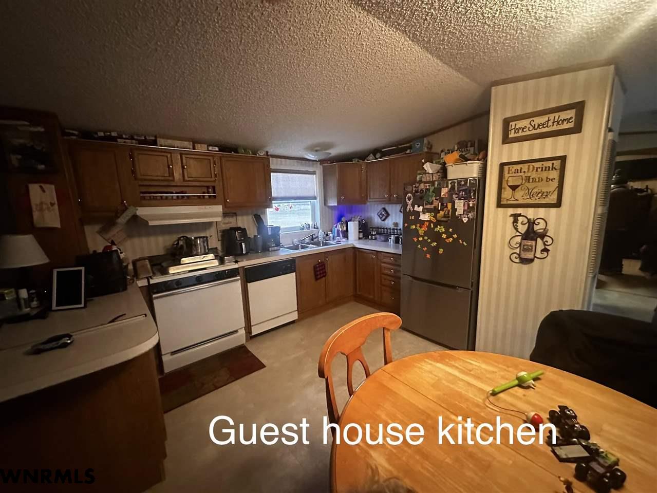Welcome to 230842 County Road R, just minutes from Gering. This one-owner, all-brick home sits on 3.99 acres backing to the bluffs, offering wide-open views, privacy, and room to spread out. The setting is the true highlight—peaceful, scenic, and hard to replicate. The property features an attached 2-car garage, an additional oversized 2-car garage with guest house and storage shed,, a 984 SF shop, two other small storage buildings, a one car detached garage, a shipping container and a separate 2-bedroom mobile home (guest house) —well-suited for multigenerational living, guest space, or income potential. The guest house has a second well and septic system not attached to the main house. The home offers a solid footprint and is ready for your personal touch and updates. The shop has been used for working on semis, and there is ample space for RV parking, trucks, and trailers. A rare opportunity to own acreage with views and versatility. Motivated sellers—bring offers.