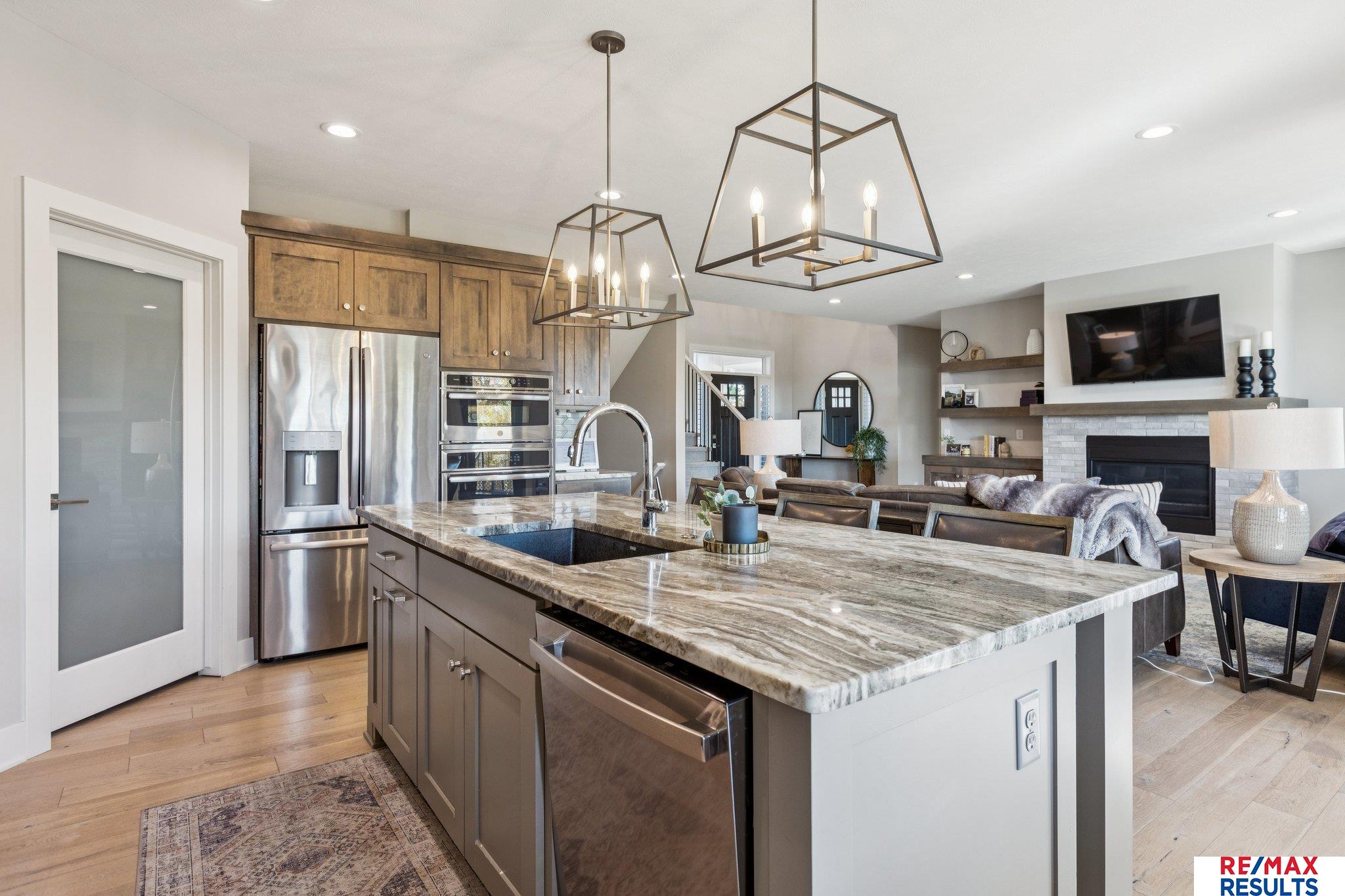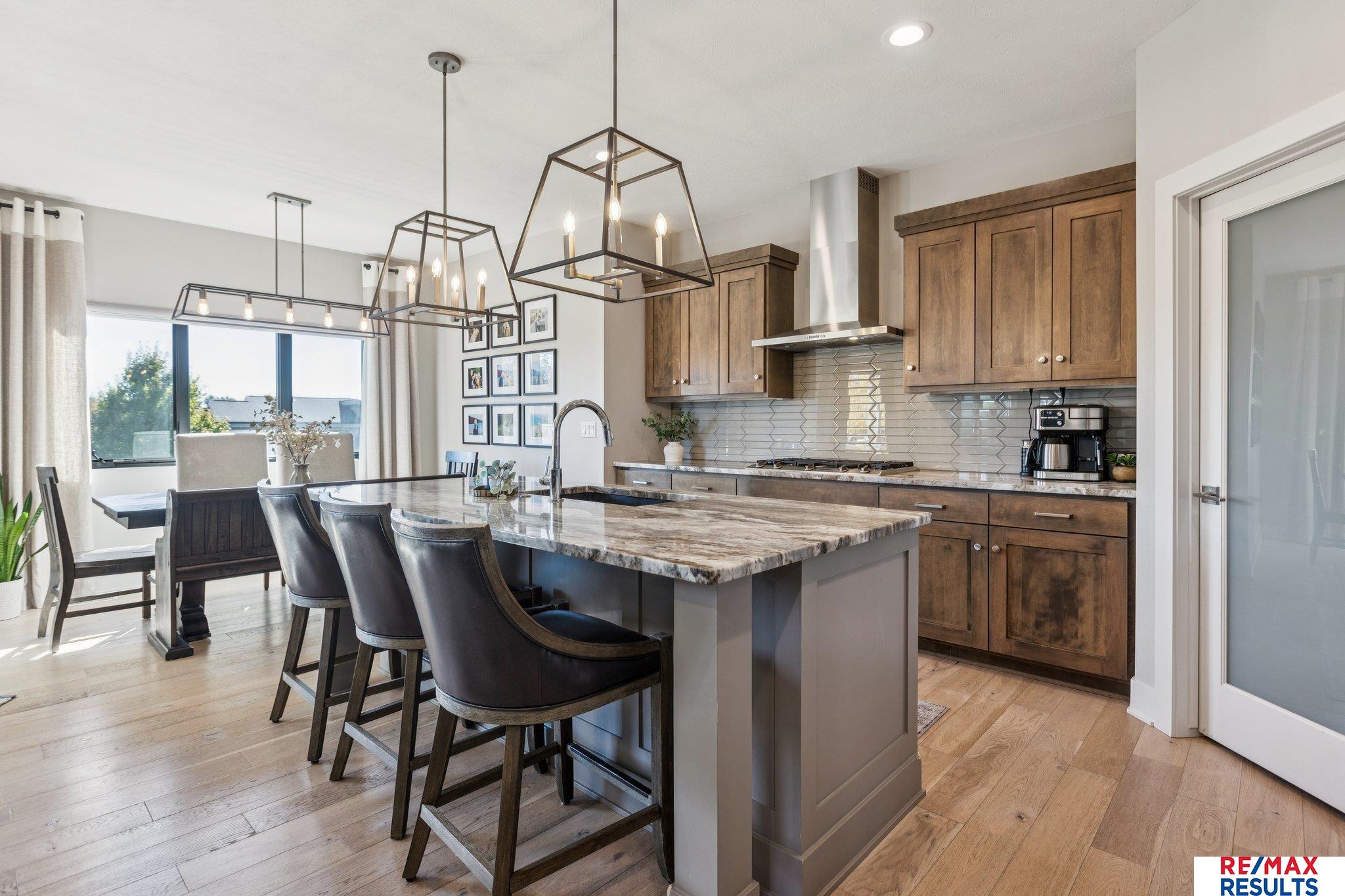 A rare opportunity to own a thoughtfully designed, move-in ready home offering exceptional quality and value in The Prairies. Tucked on a quiet cul-de-sac walkout lot in the highly sought-after Elkhorn South District, this light-filled home features fresh paint and elevated finishes throughout. The open main floor is ideal for everyday living and entertaining with a warm great room, gourmet kitchen, oversized walk-in pantry, and a versatile main-floor flex room that can serve as a bedroom, private office, or playroom—designed to suit your needs. The primary suite is a true retreat w a spa-like bath and large walk-in closet. Two bedrooms share a Jack-and-Jill bath, while a fourth enjoys a private en-suite. The newly finished walkout lower level offers a spacious living area, custom bar, additional bedroom, & bath. Step outside to a fully fenced yard featuring a new fire pit area and hot tub, ideal for relaxing! Enjoy the walking trails, new playground, private pool & clubhouse.